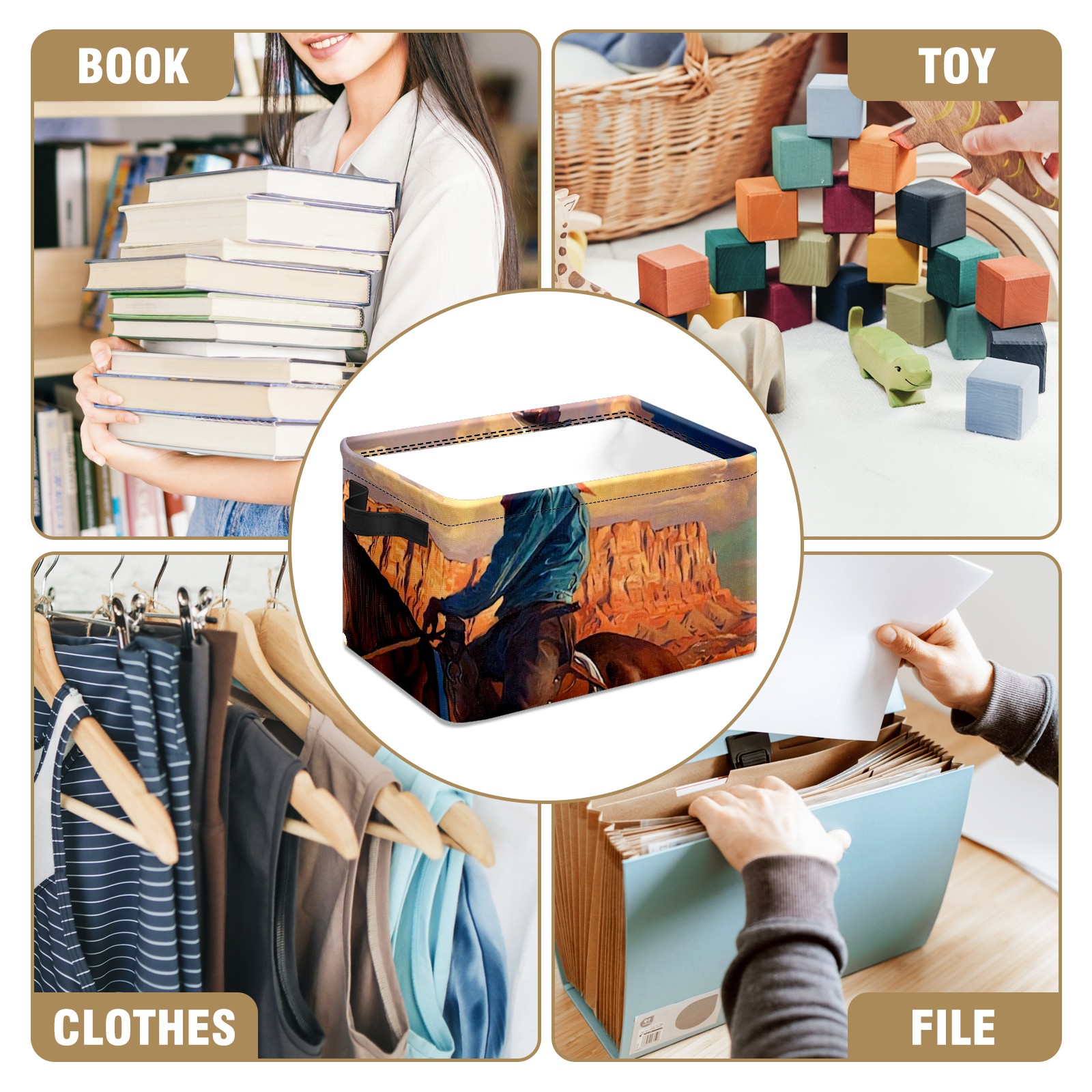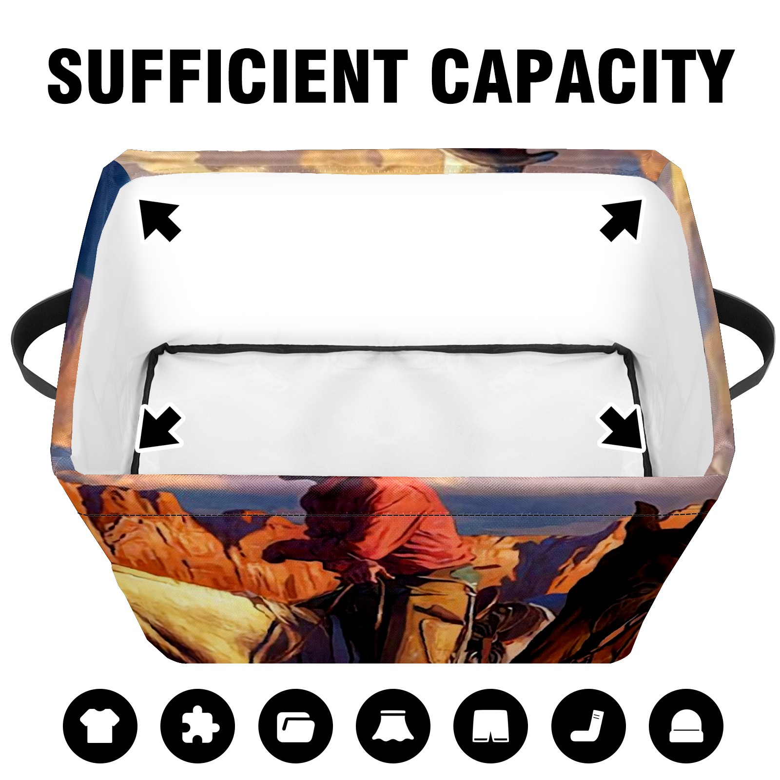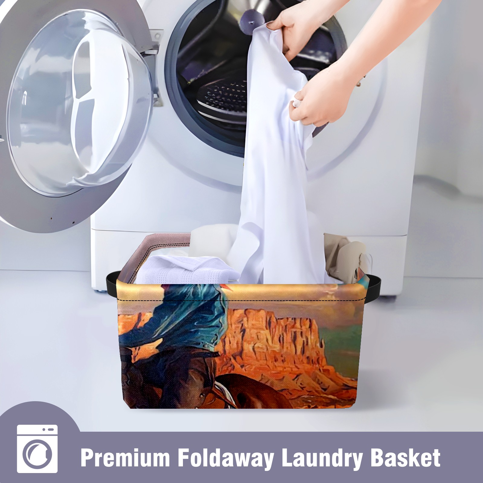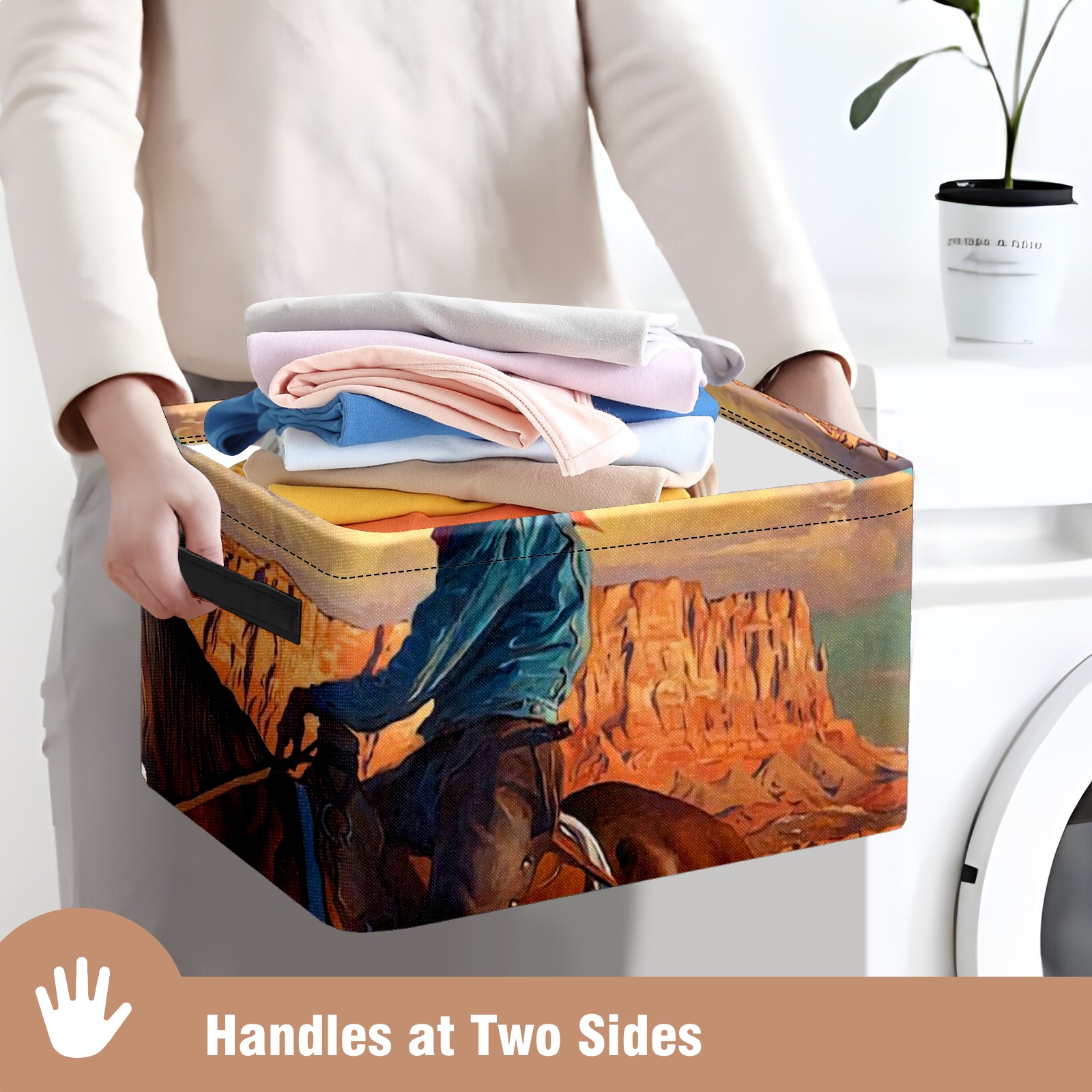 Collapsible 600D Oxford Storage Basket with Cowboy And American Western Landscape - Metal Frame 10"x14"x8" Reinforced Handles, Multi-Purpose Organizer