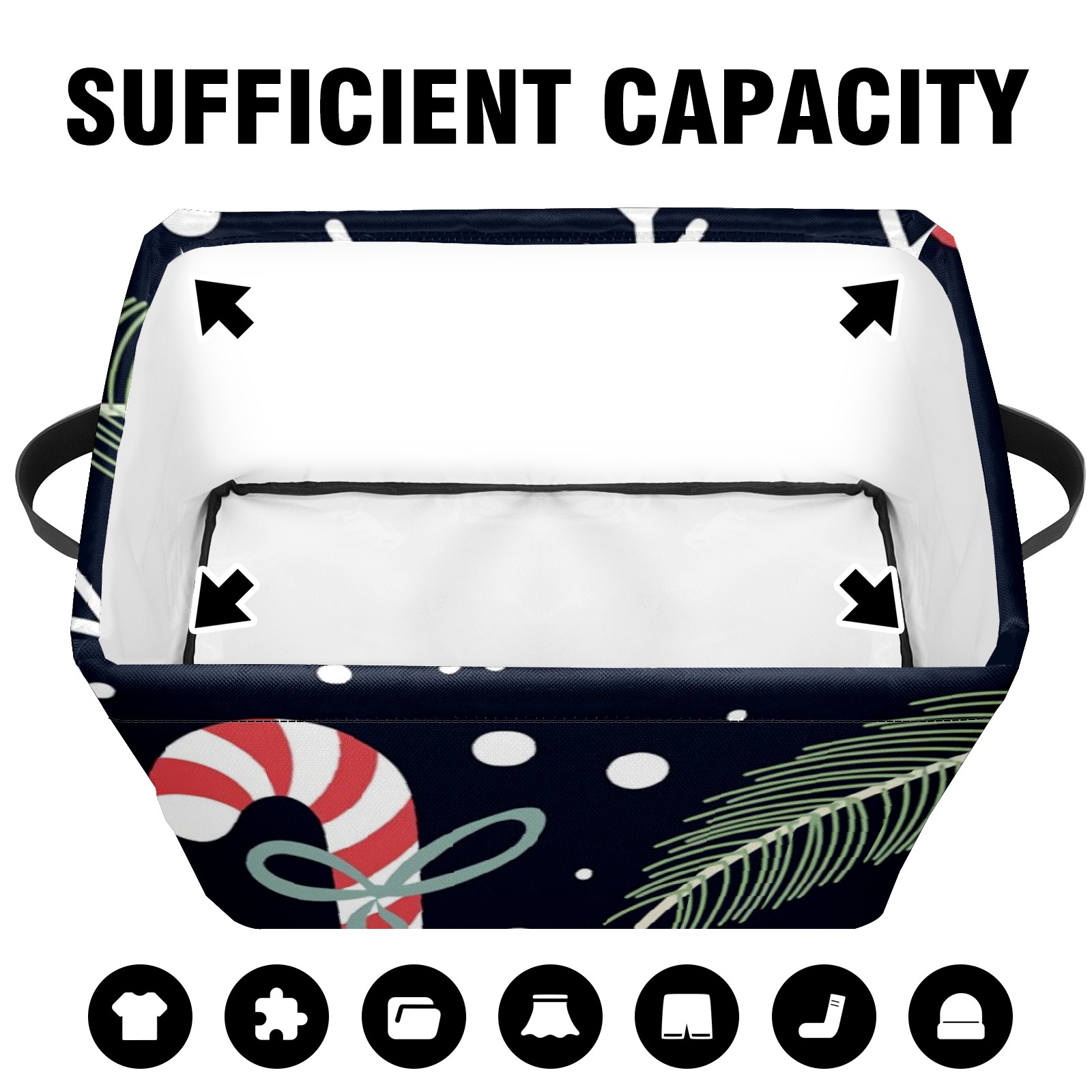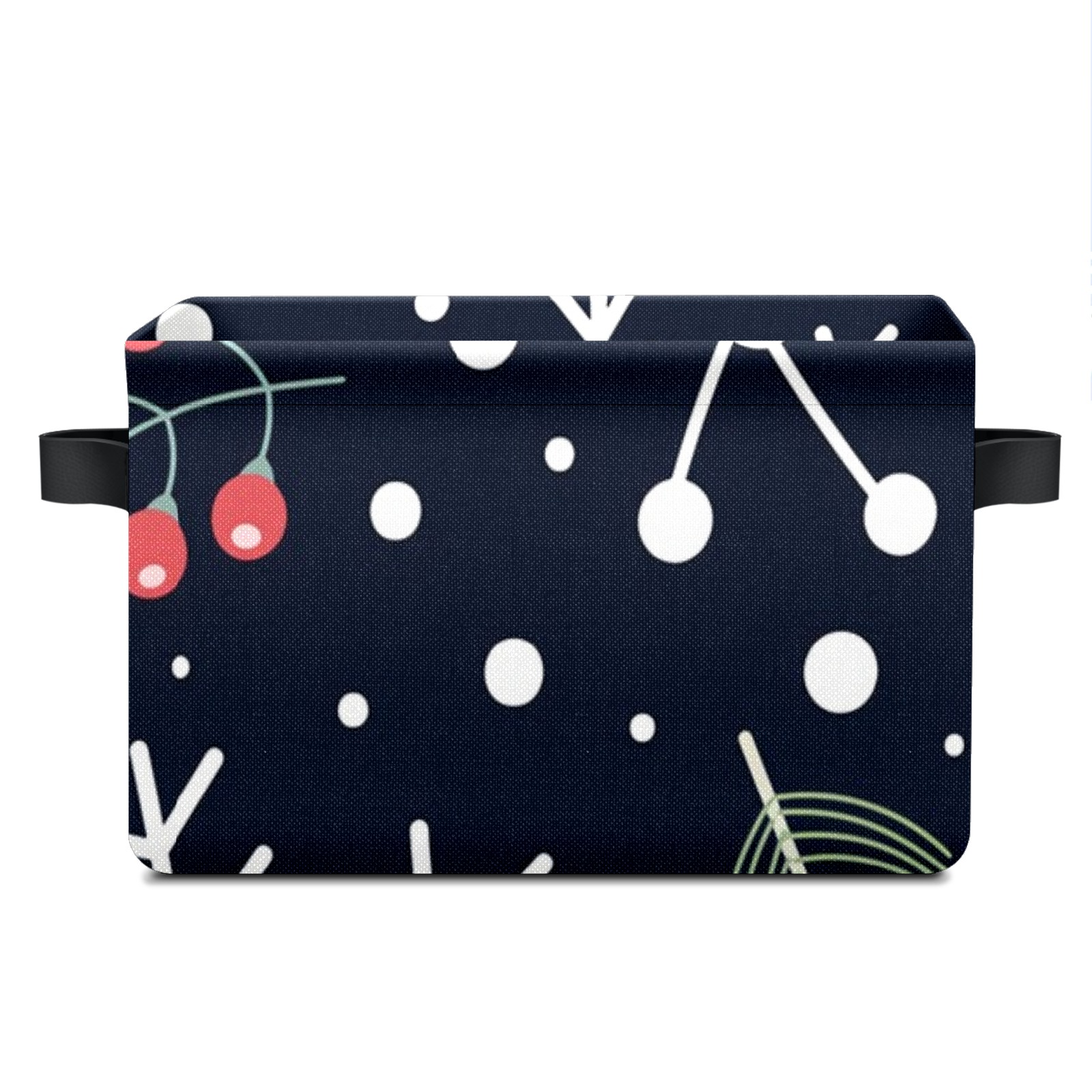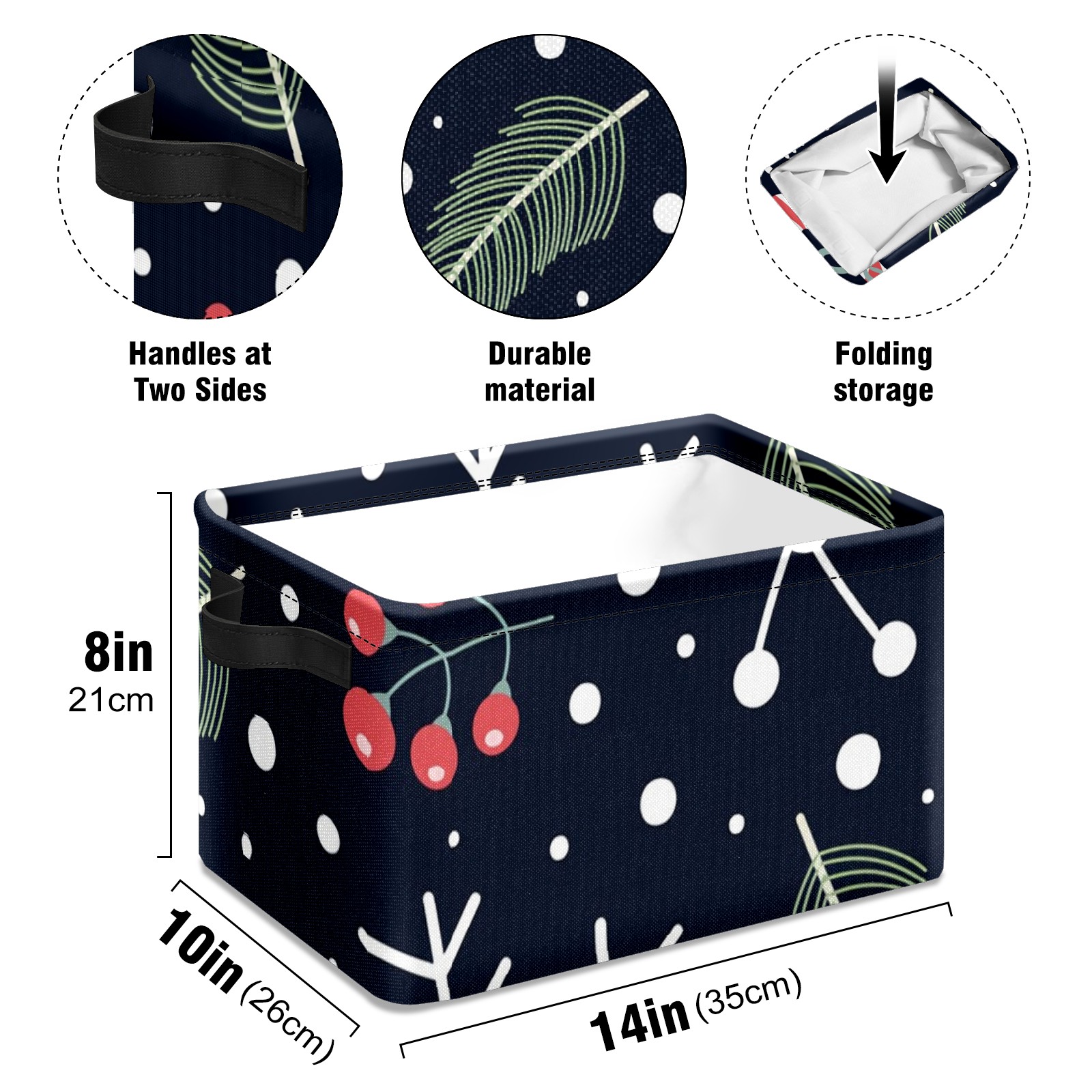Collapsible 600D Oxford Storage Basket with Christmas Element Print - Metal Frame 10"x14"x8" Reinforced Handles, Multi-Purpose Organizer
