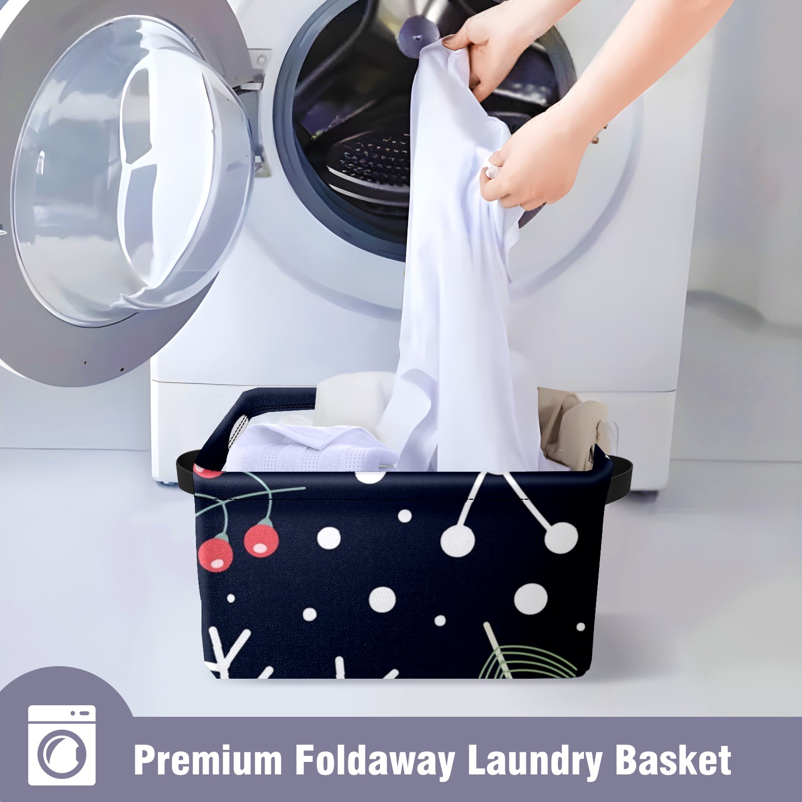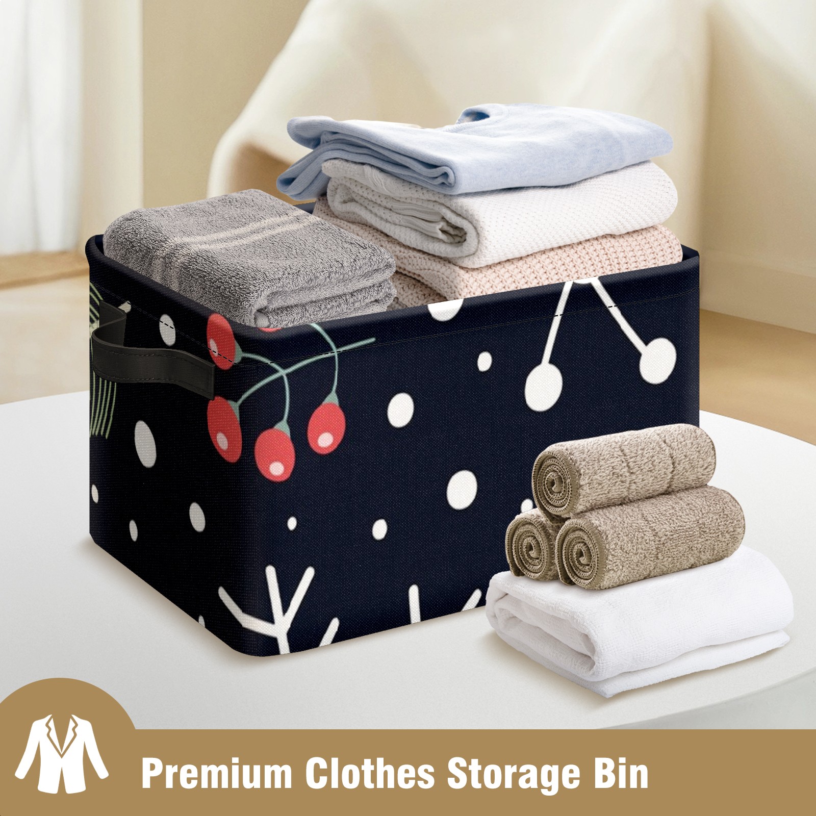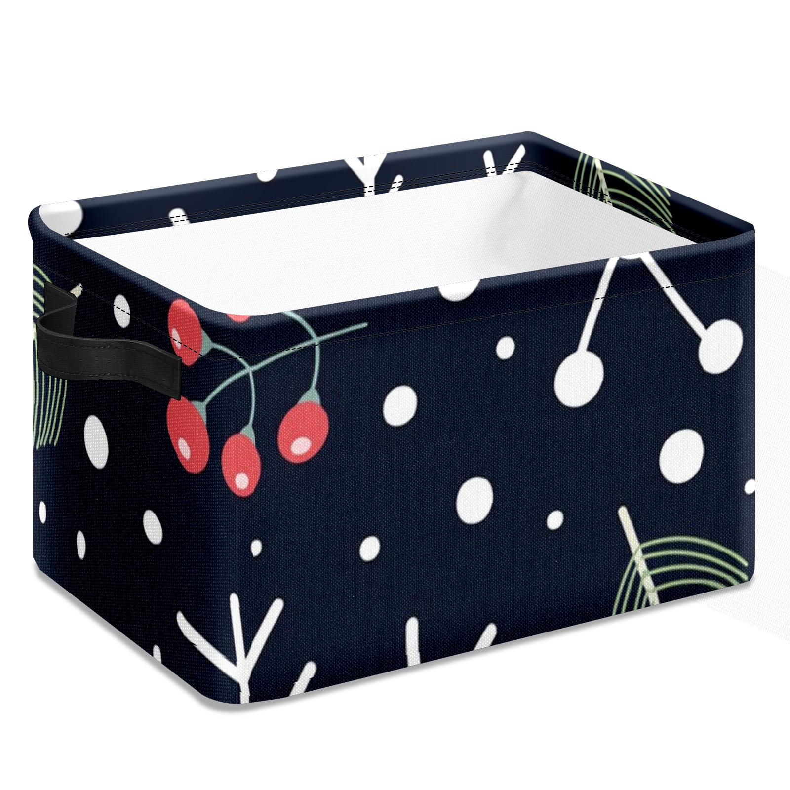 Collapsible 600D Oxford Storage Basket with Christmas Element Print - Metal Frame 10"x14"x8" Reinforced Handles, Multi-Purpose Organizer