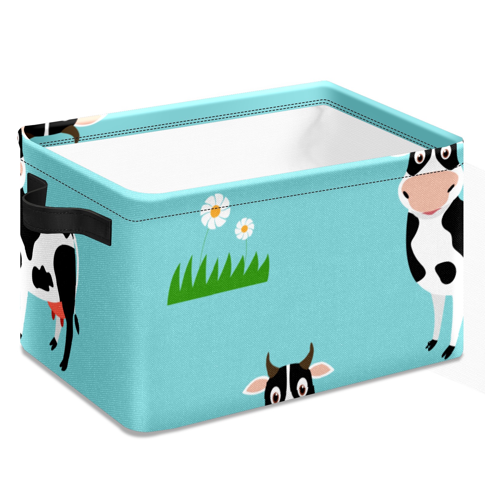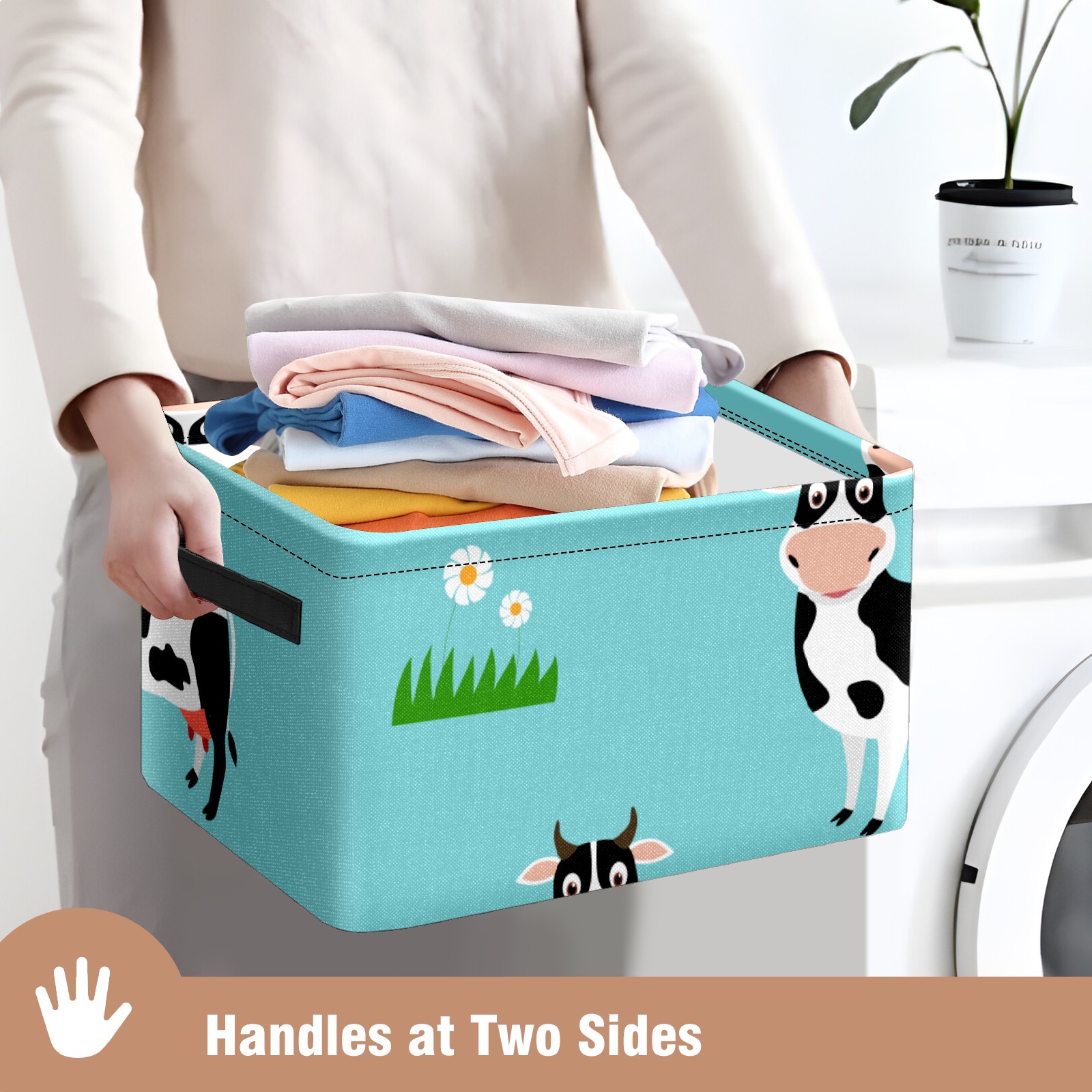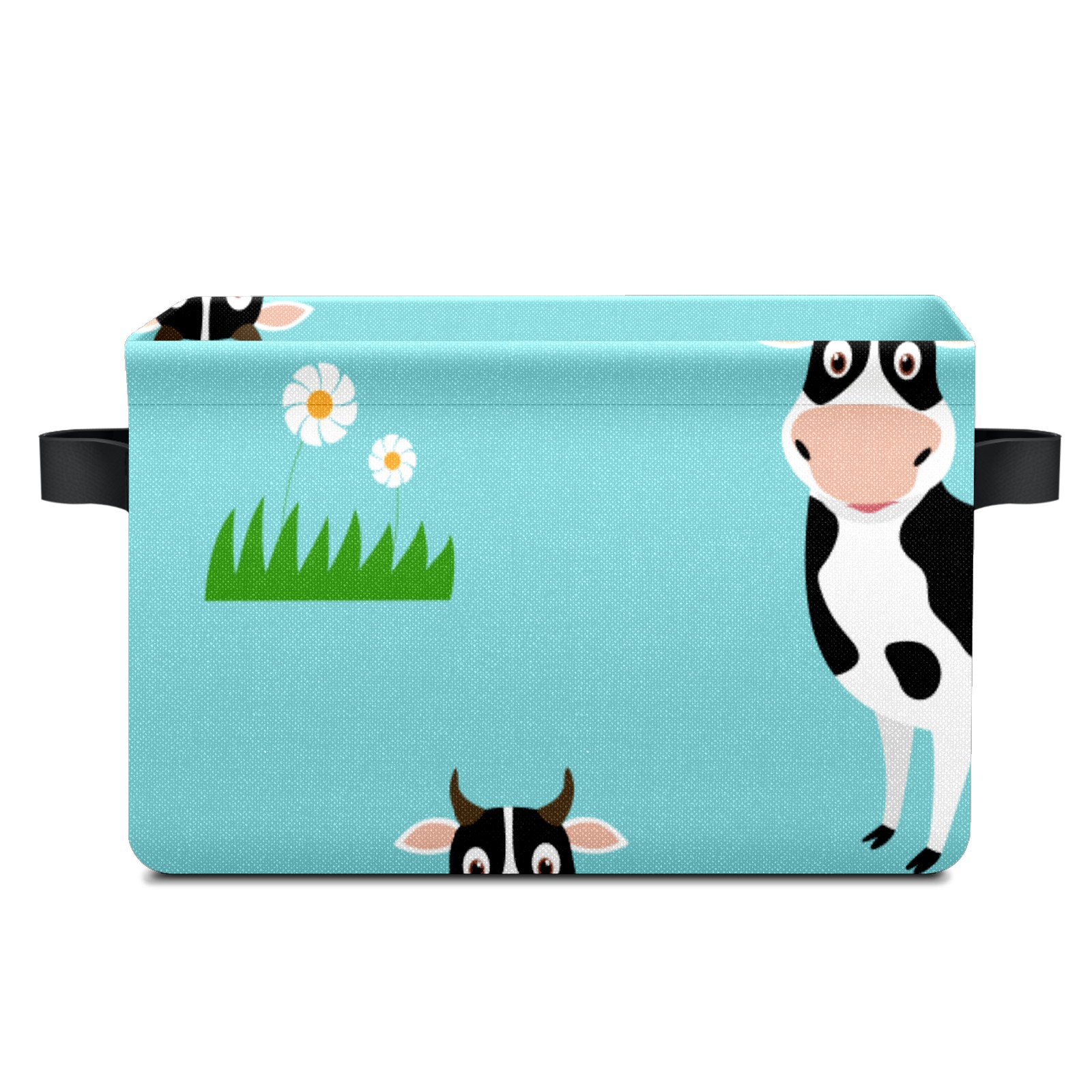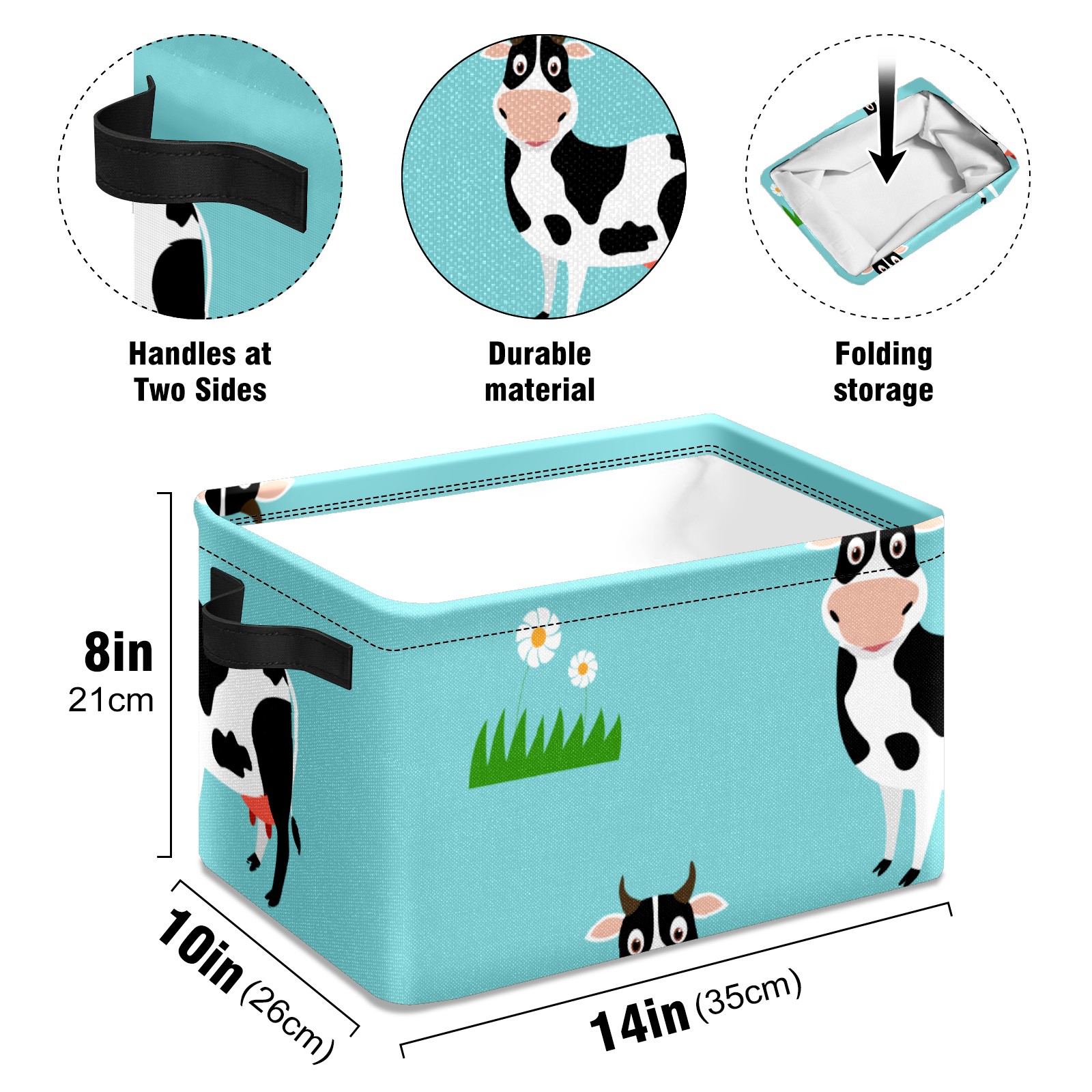 Collapsible 600D Oxford Storage Basket with Cute Cow - Metal Frame 10"x14"x8" Reinforced Handles, Multi-Purpose Organizer