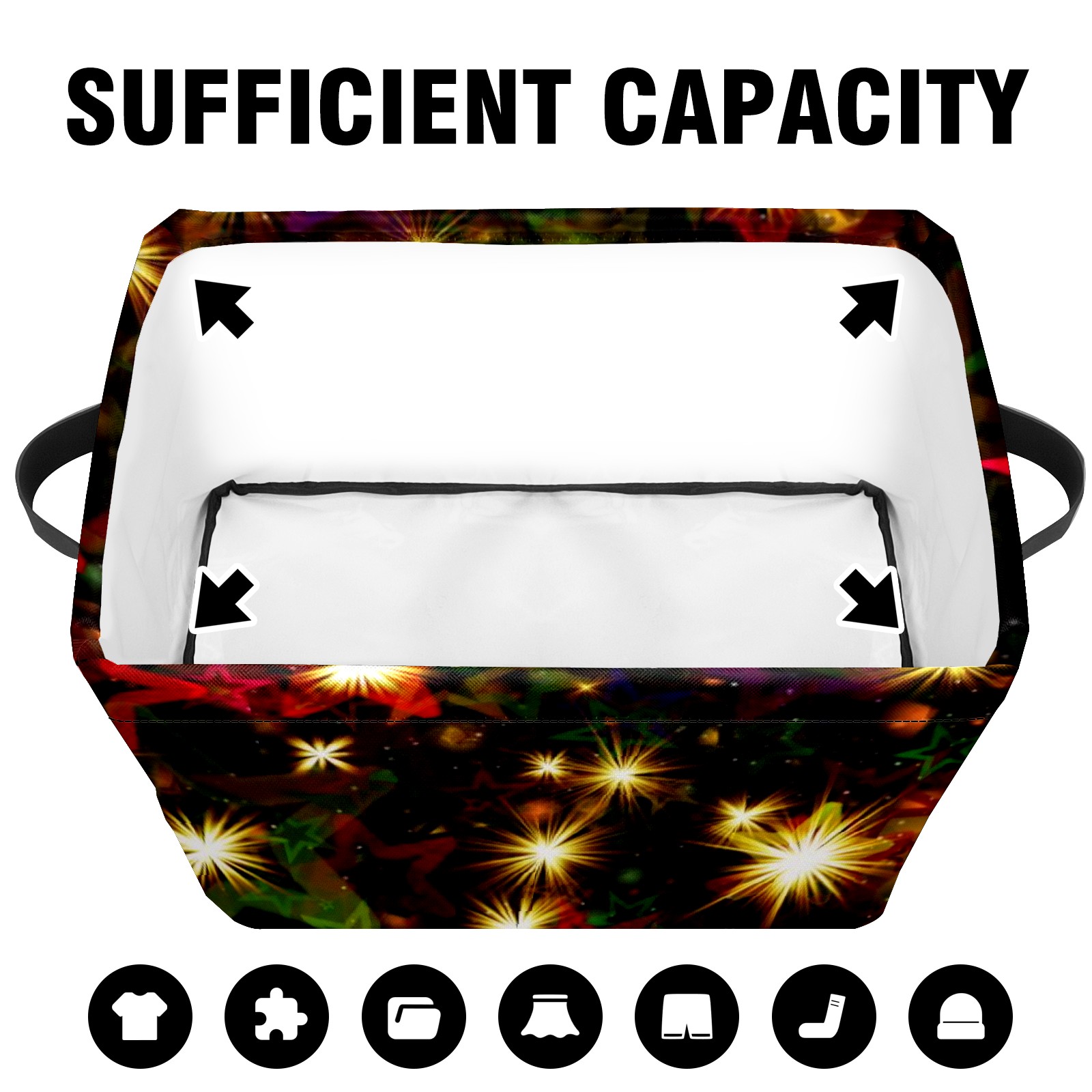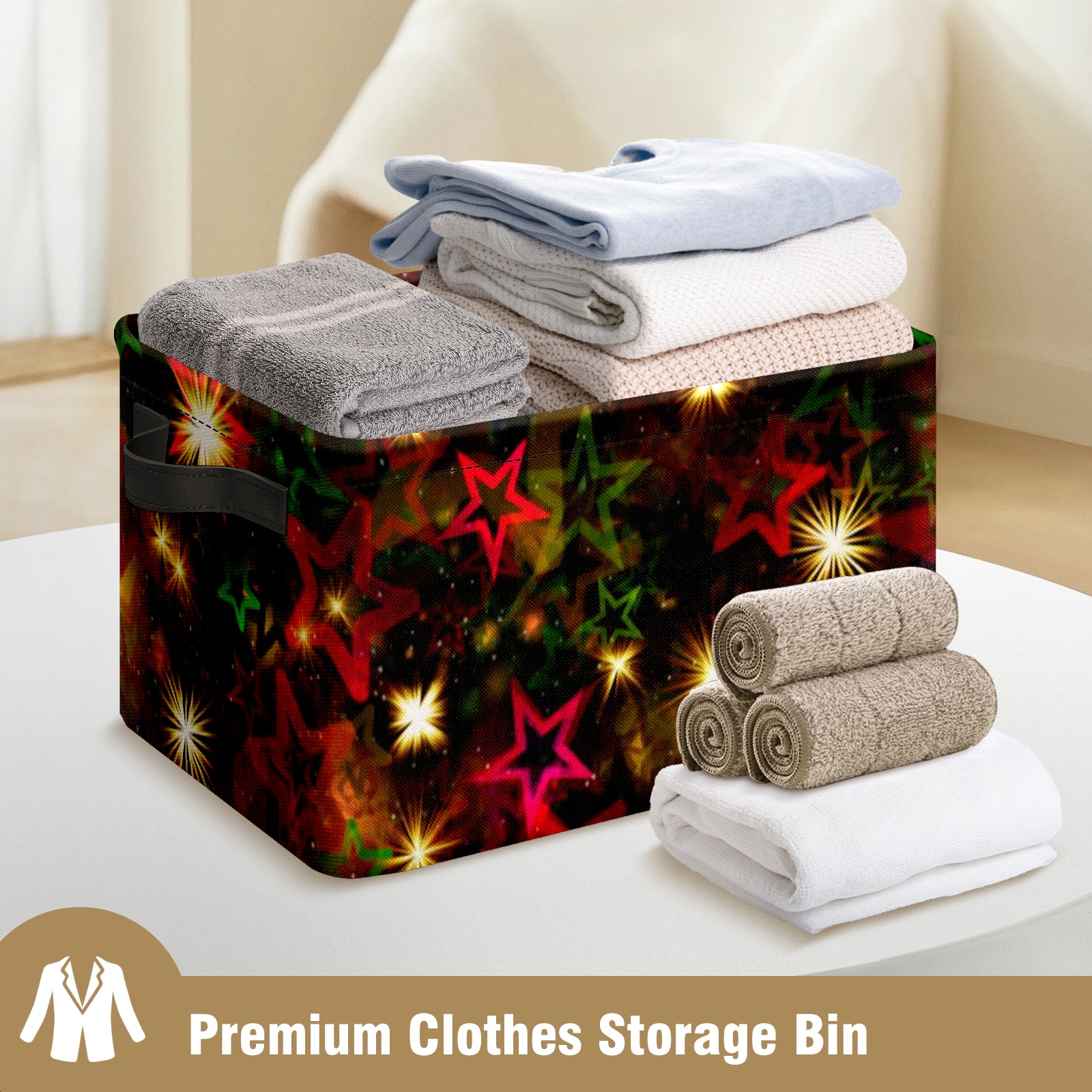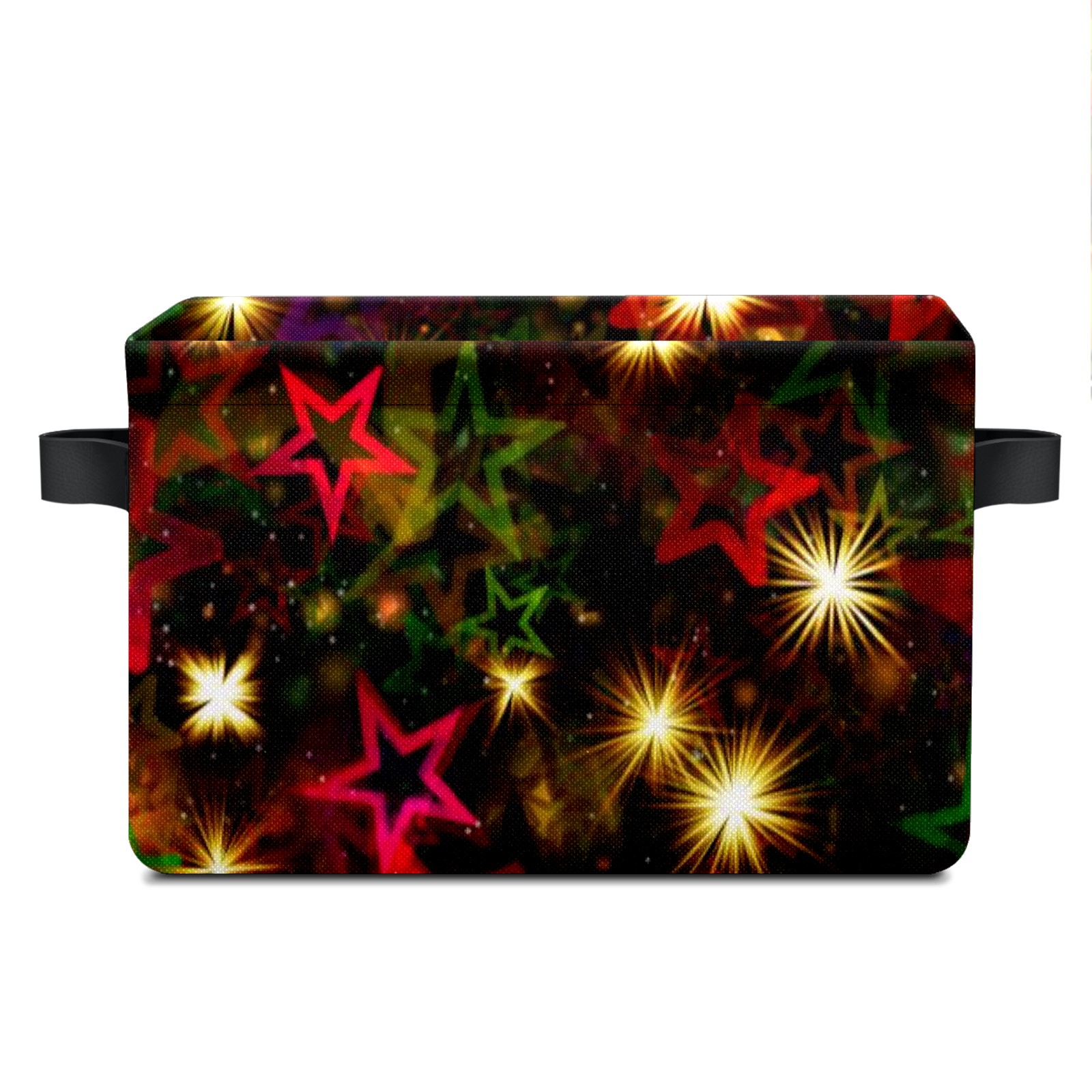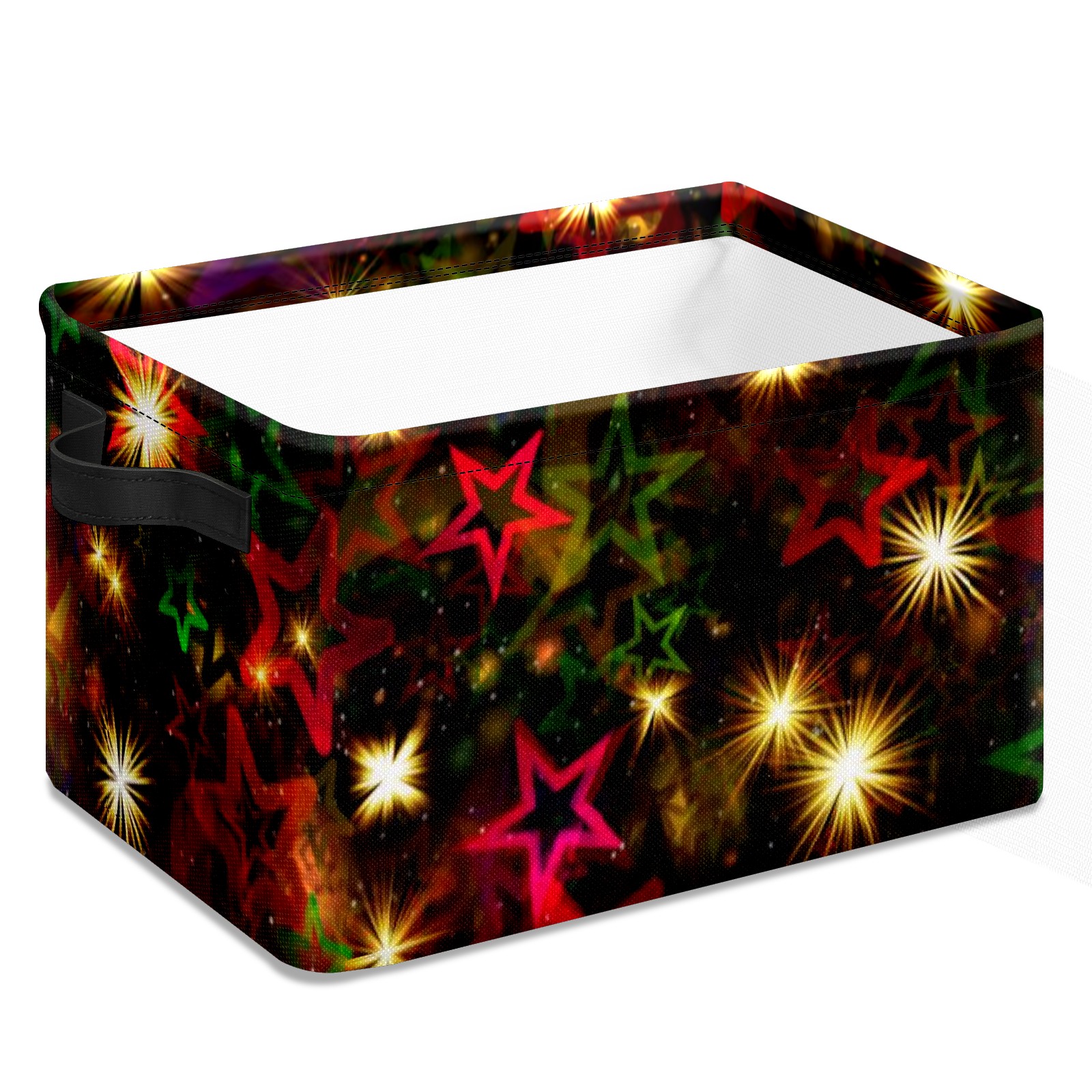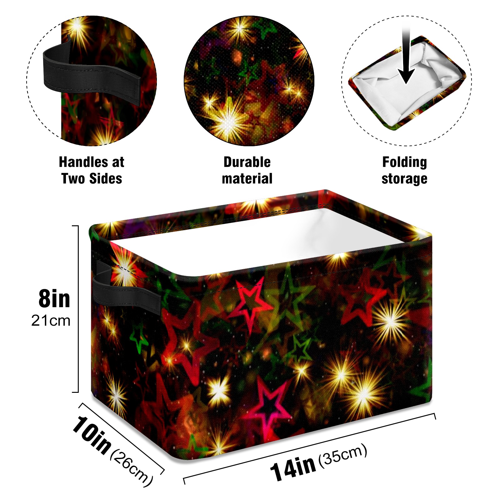 Collapsible 600D Oxford Storage Basket with Christmas Stars - Metal Frame 10"x14"x8" Reinforced Handles, Multi-Purpose Organizer