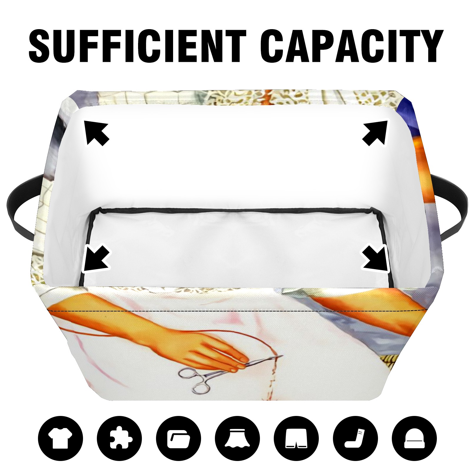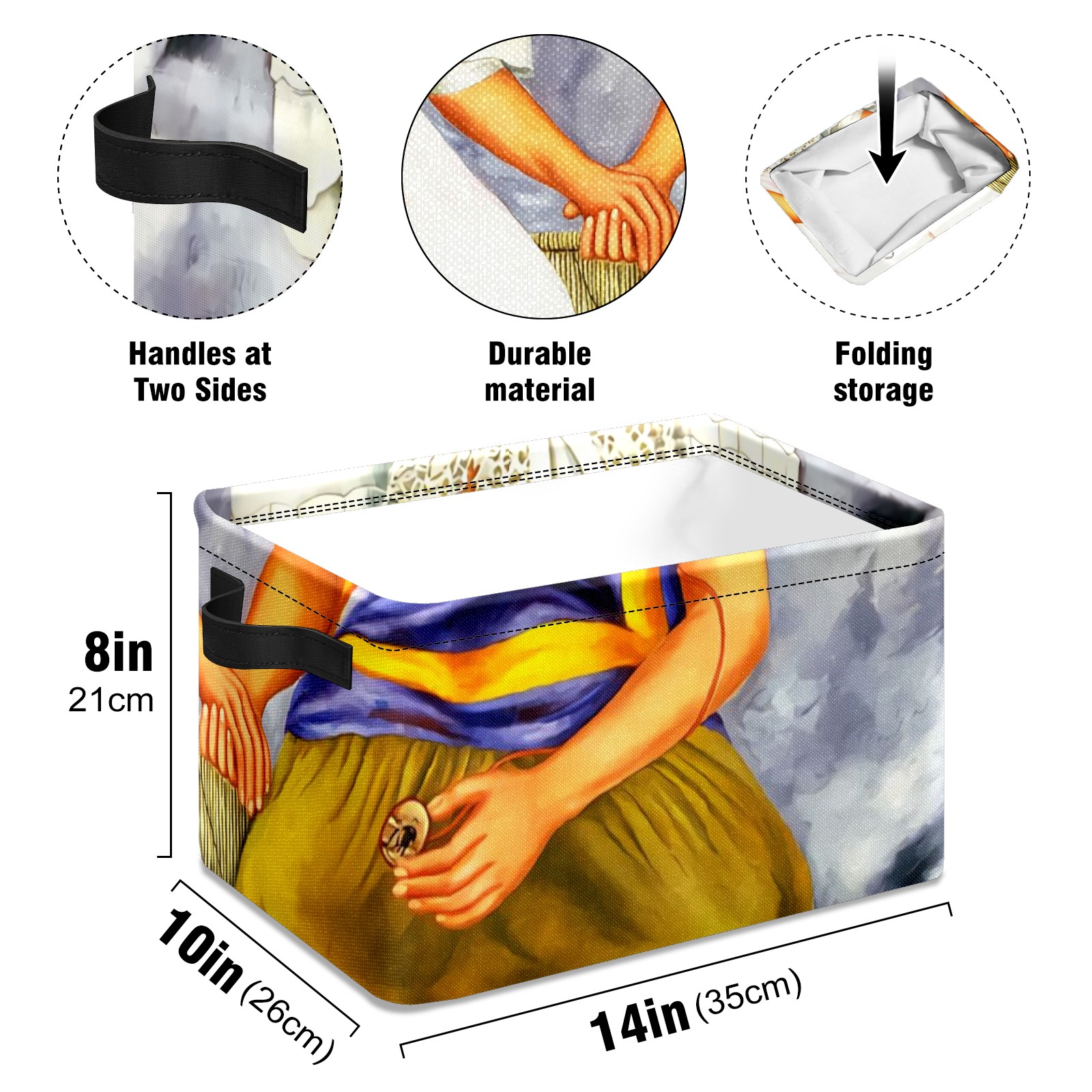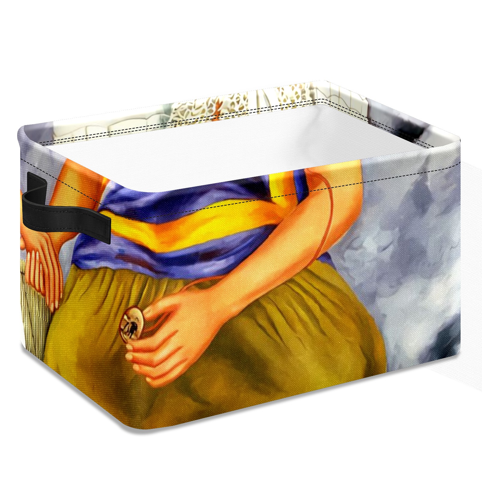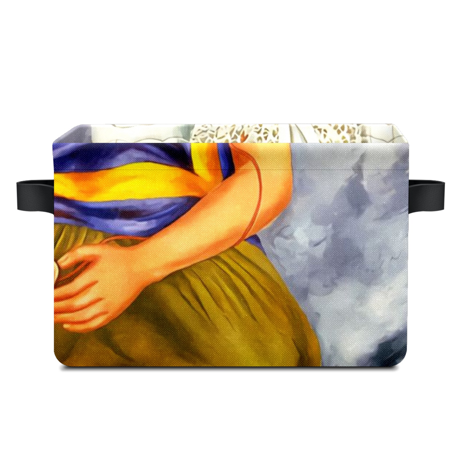Collapsible 600D Oxford Storage Basket with Mexico Woman - Metal Frame 10"x14"x8" Reinforced Handles, Multi-Purpose Organizer