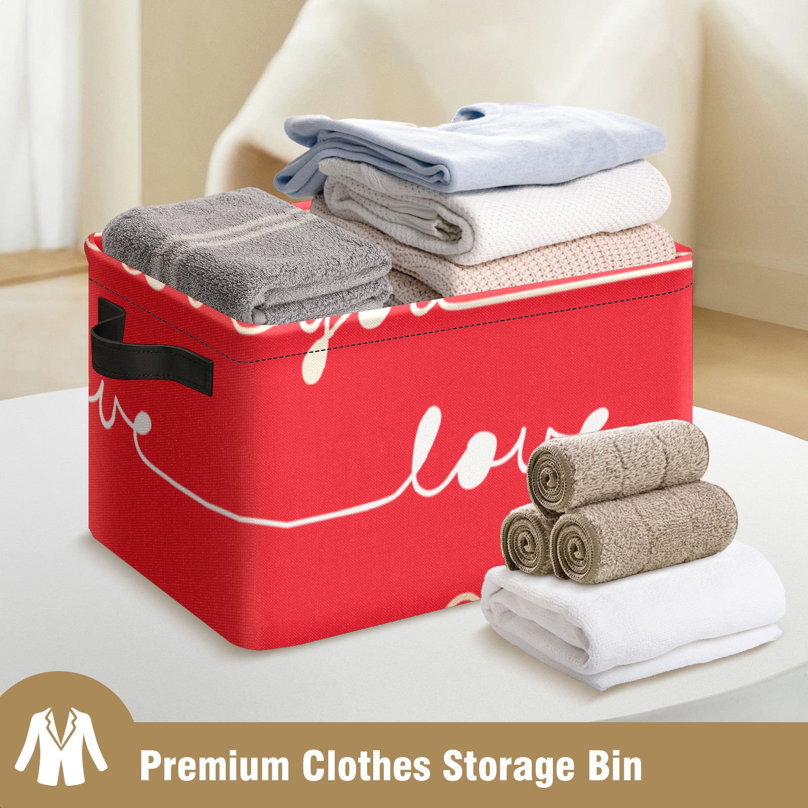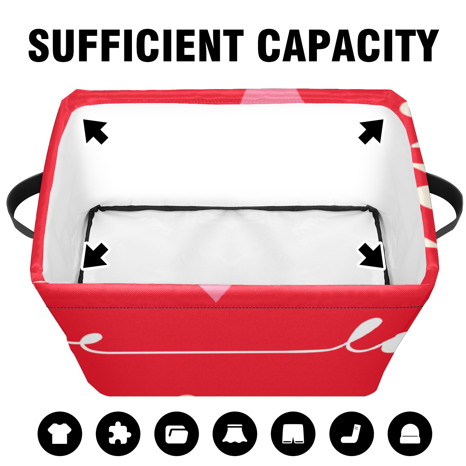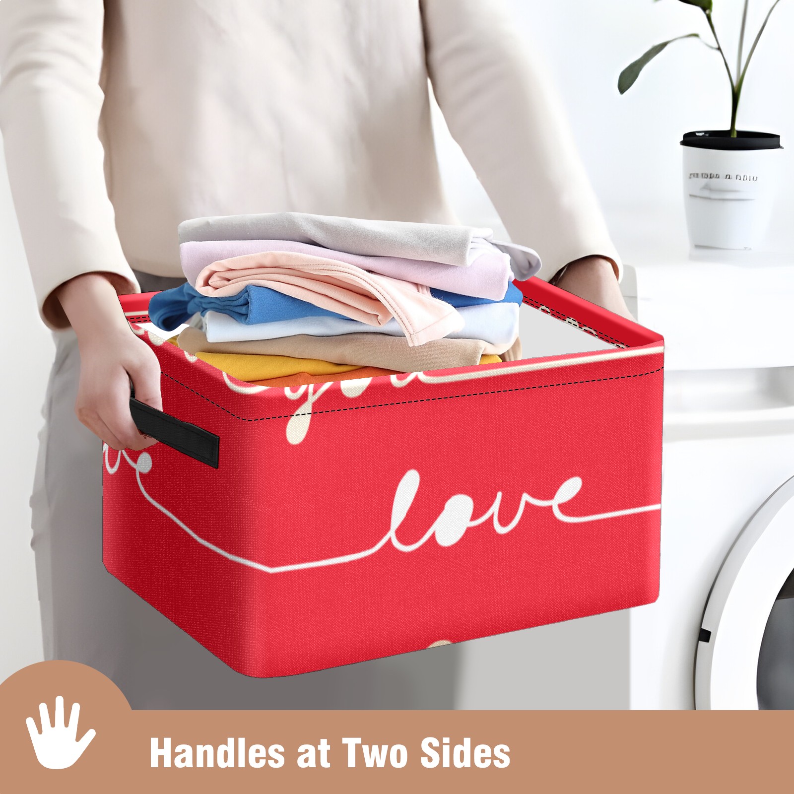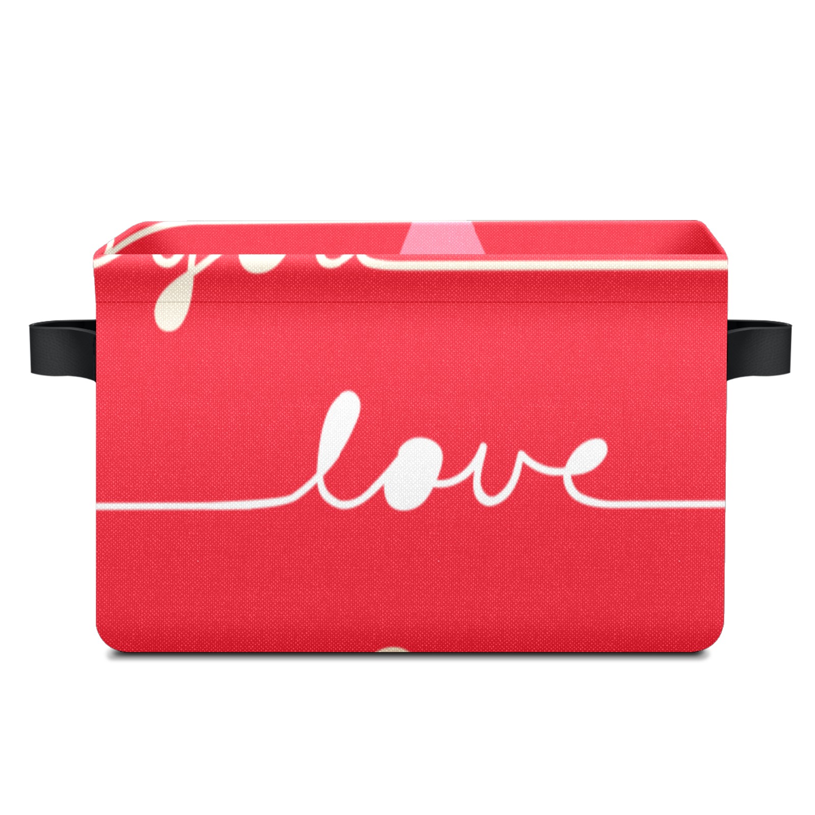 Collapsible 600D Oxford Storage Basket with Love Valentine Card - Metal Frame 10"x14"x8" Reinforced Handles, Multi-Purpose Organizer