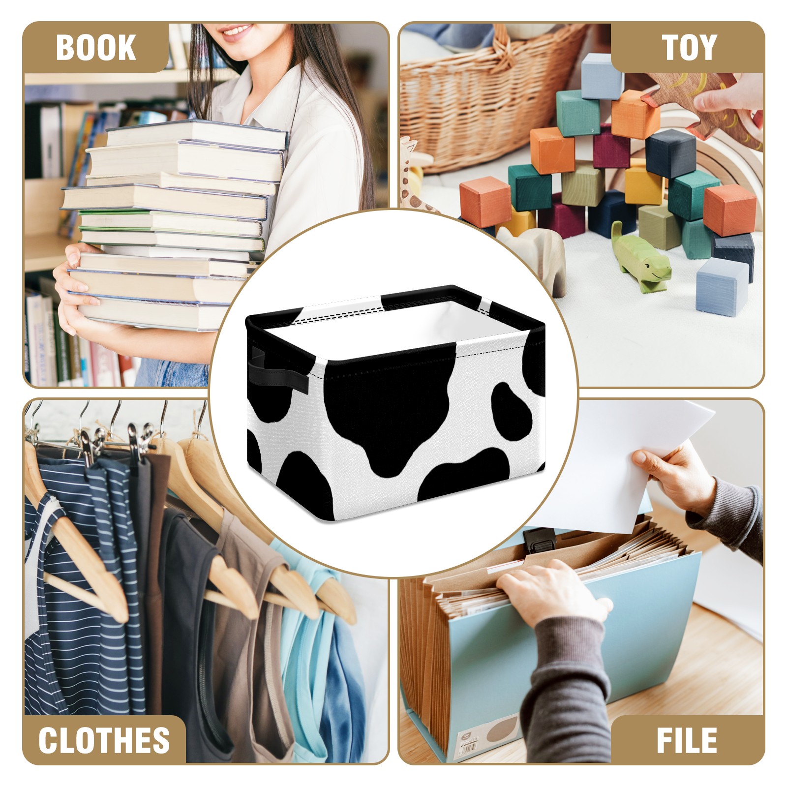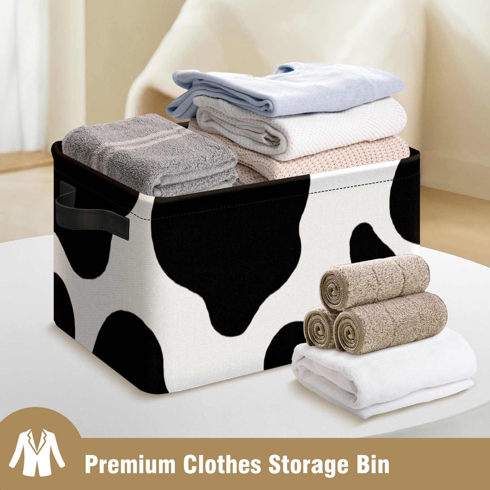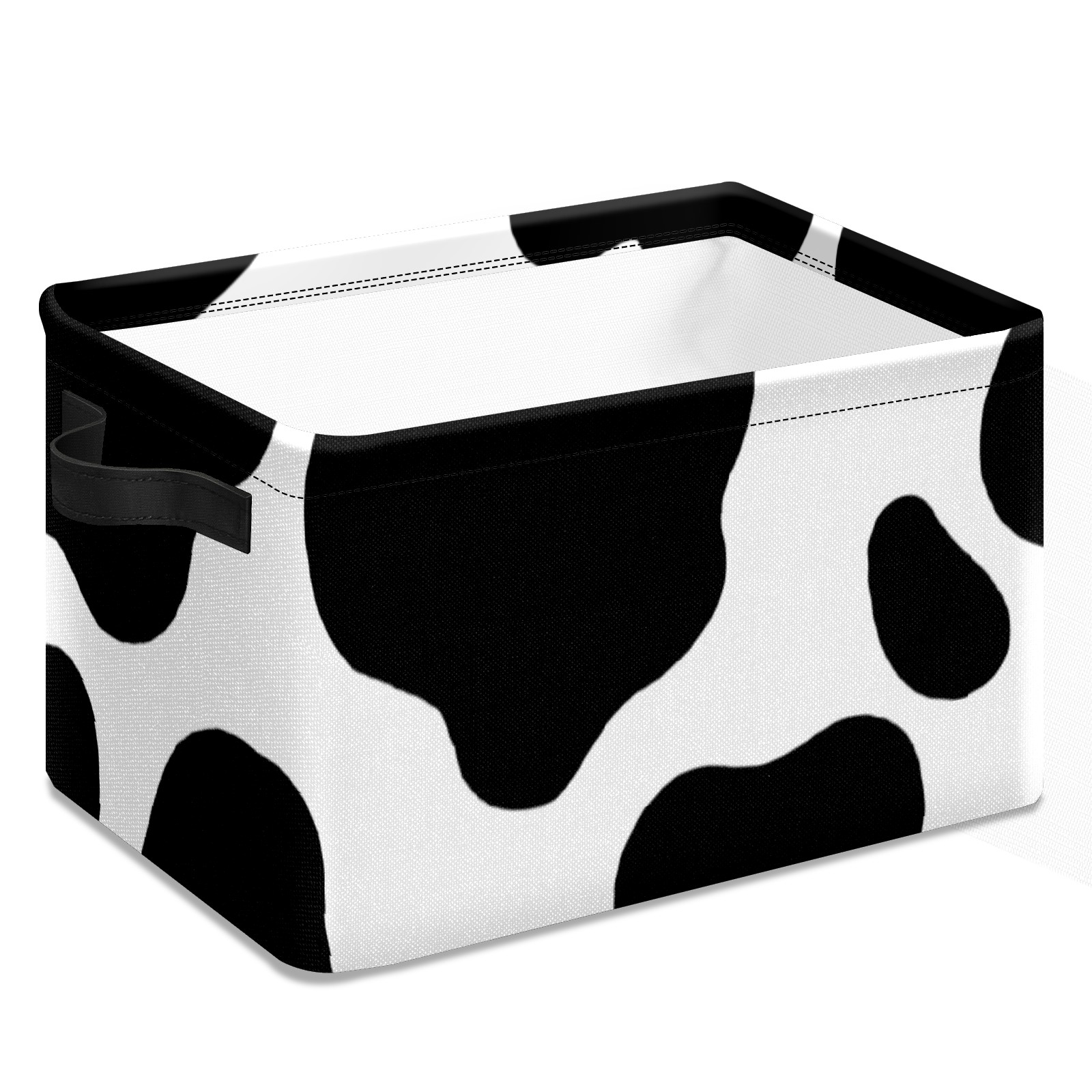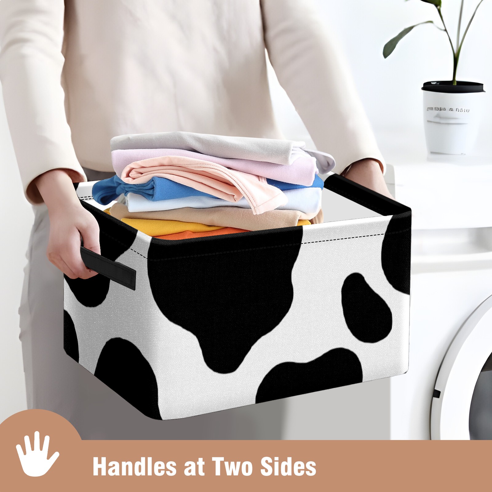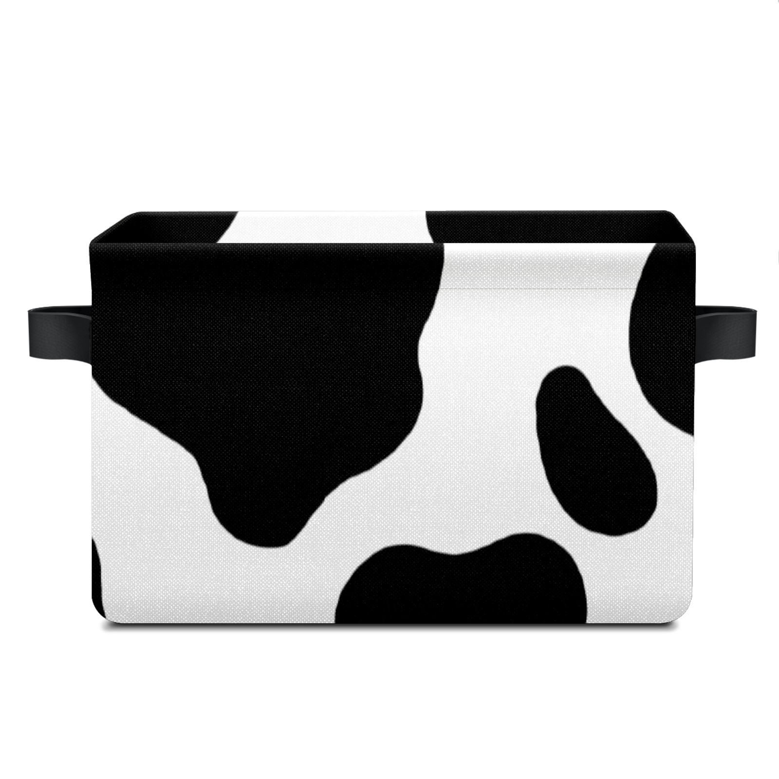 Collapsible 600D Oxford Storage Basket with Milk Cow Print - Metal Frame 10"x14"x8" Reinforced Handles, Multi-Purpose Organizer