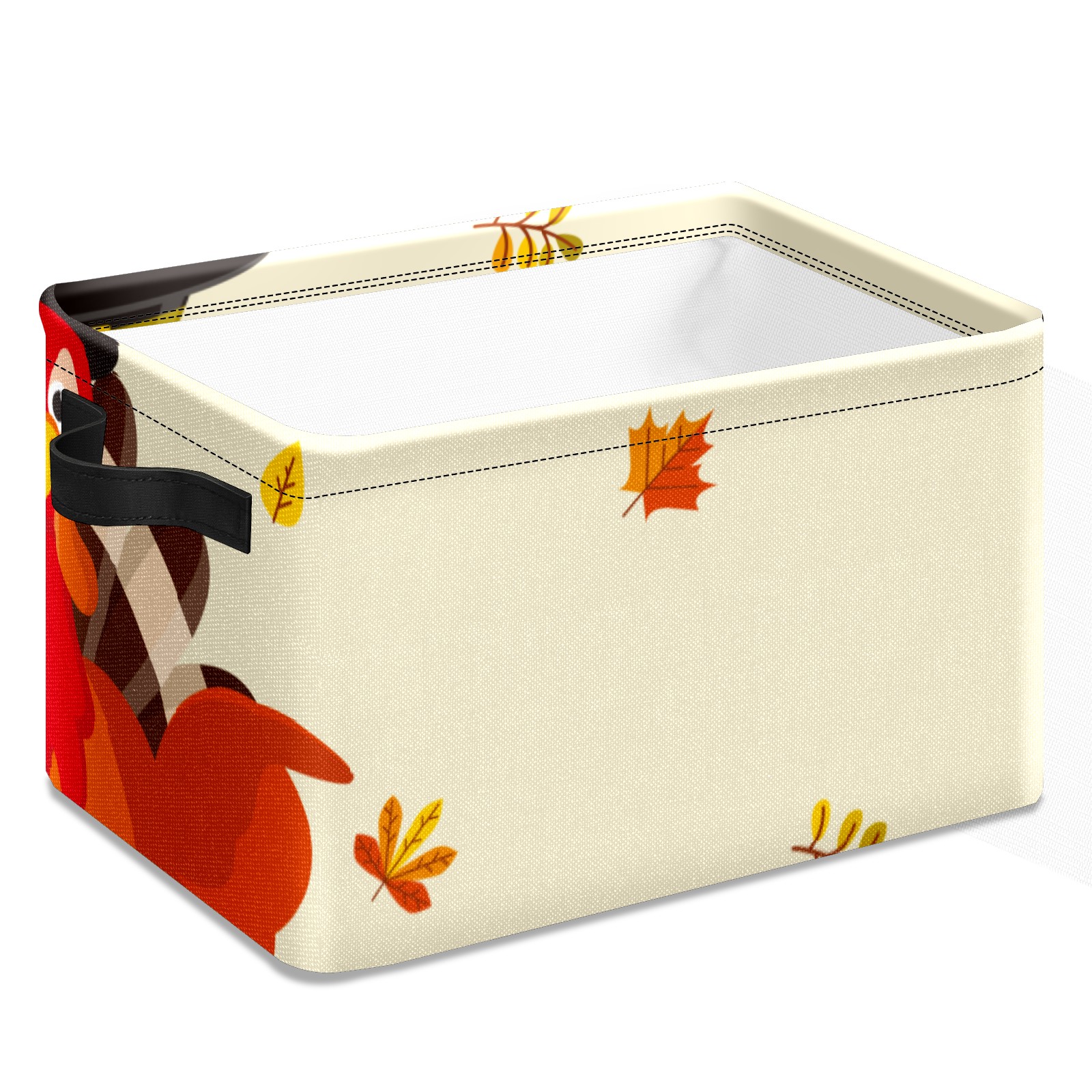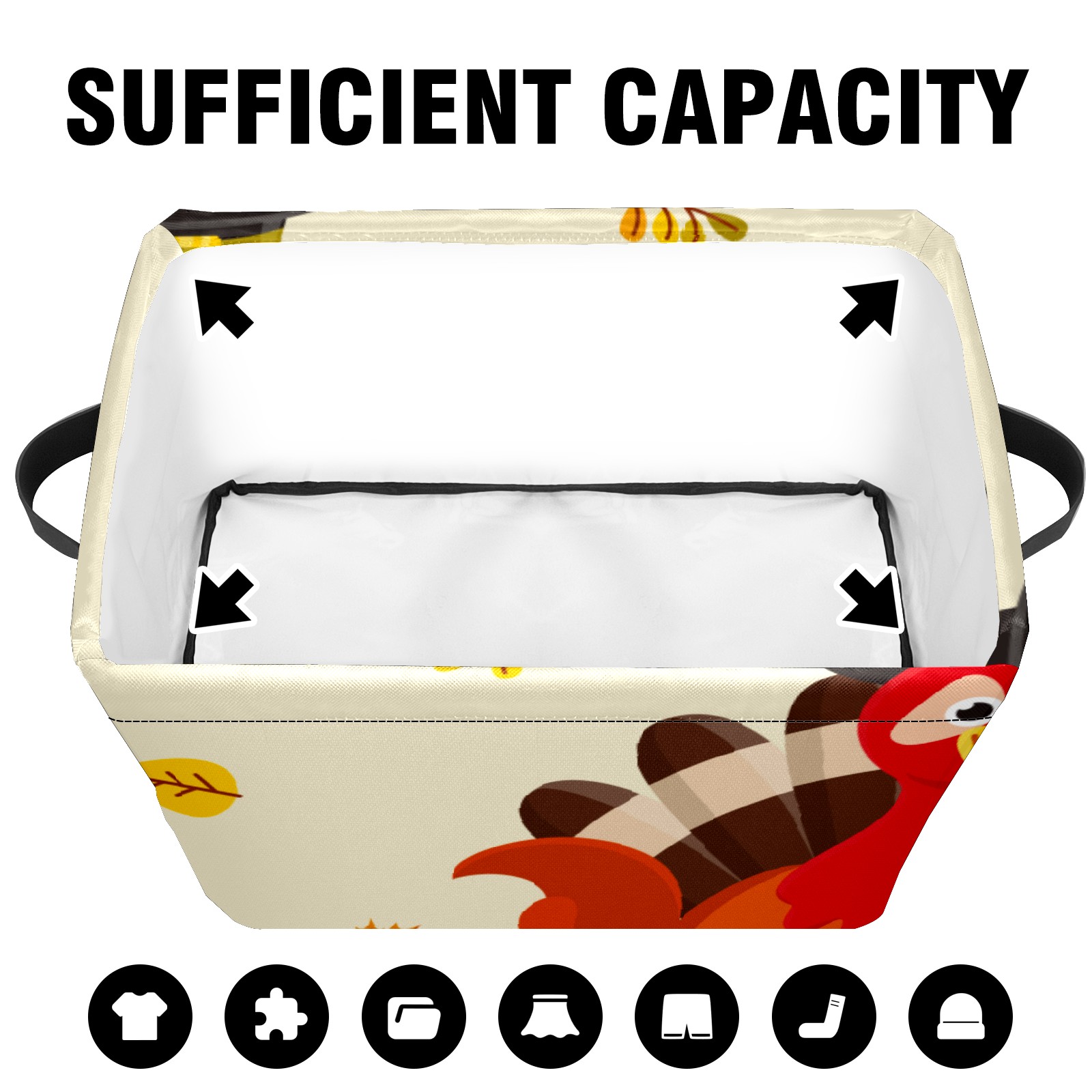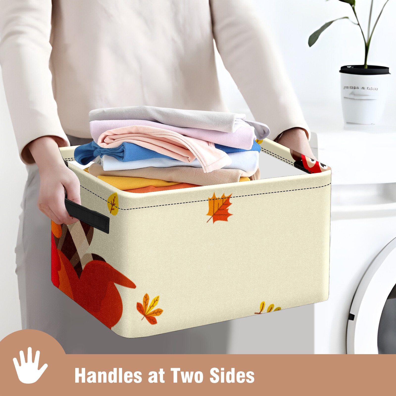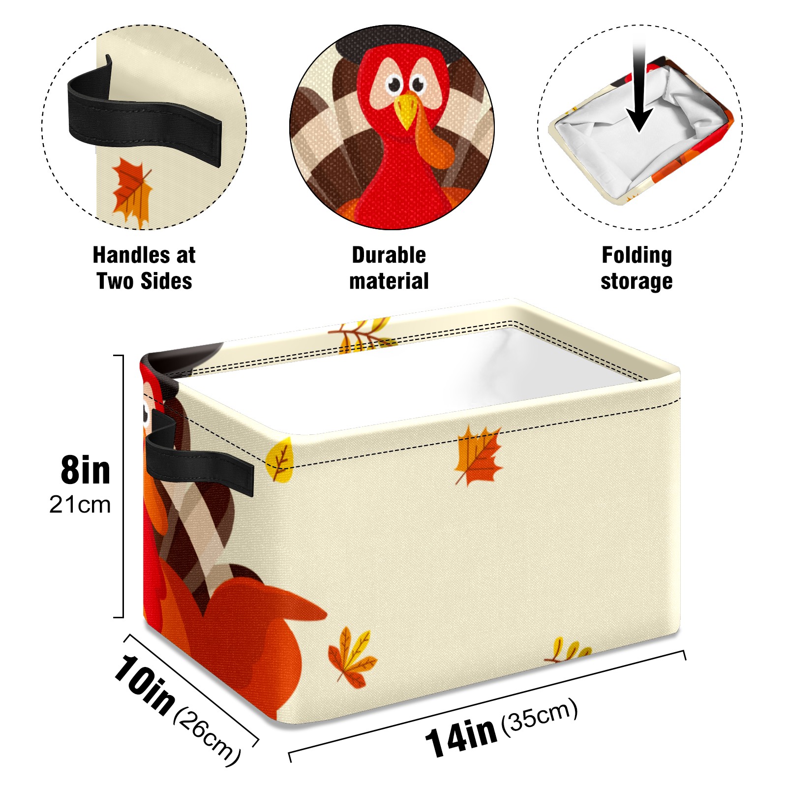 Collapsible 600D Oxford Storage Basket with Thanksgiving Turkey Maple Leaf Fall Pumpkin - Metal Frame 10"x14"x8" Reinforced Handles, Multi-Purpose Organizer