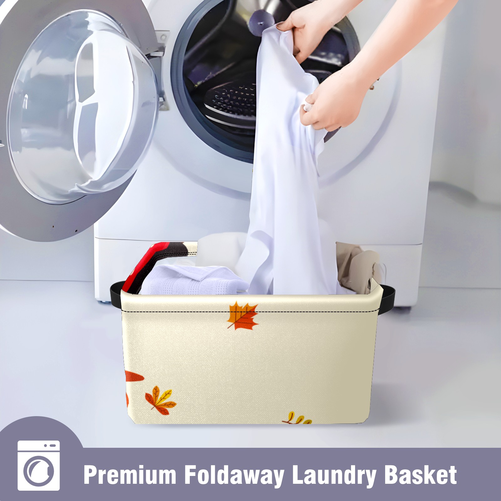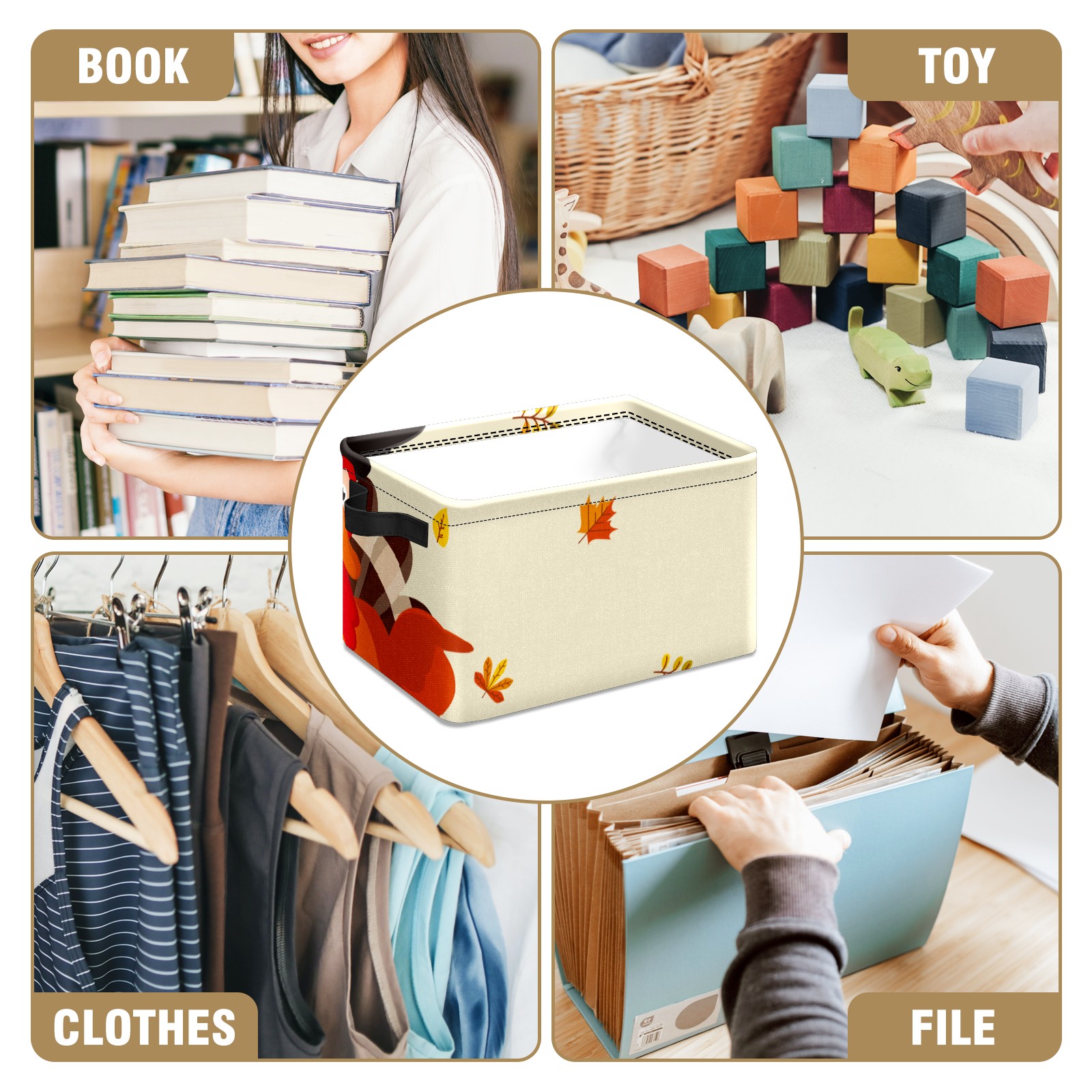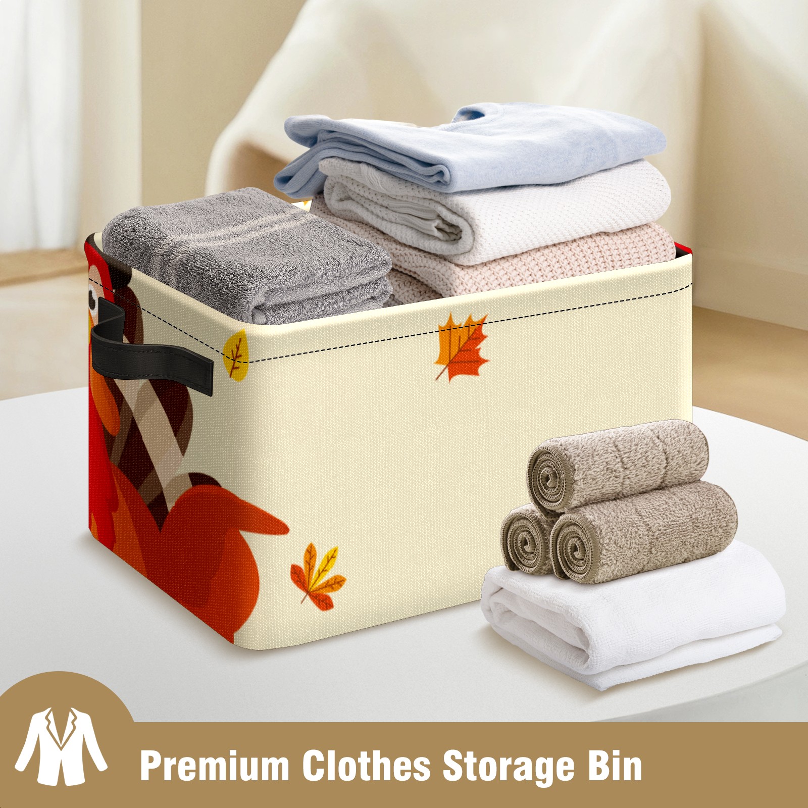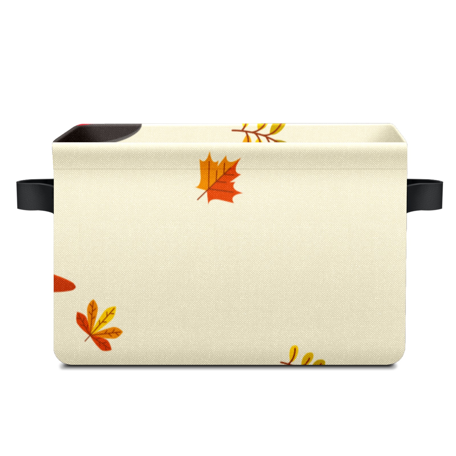 Collapsible 600D Oxford Storage Basket with Thanksgiving Turkey Maple Leaf Fall Pumpkin - Metal Frame 10"x14"x8" Reinforced Handles, Multi-Purpose Organizer