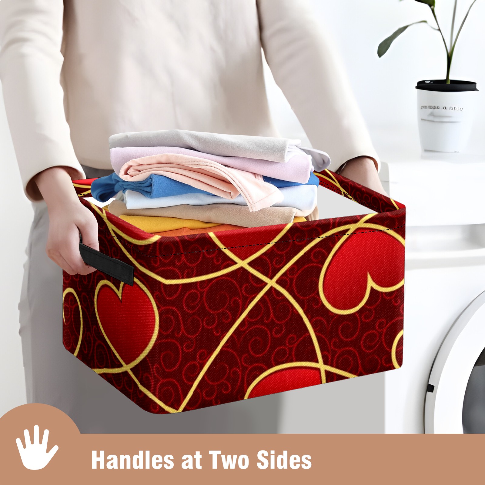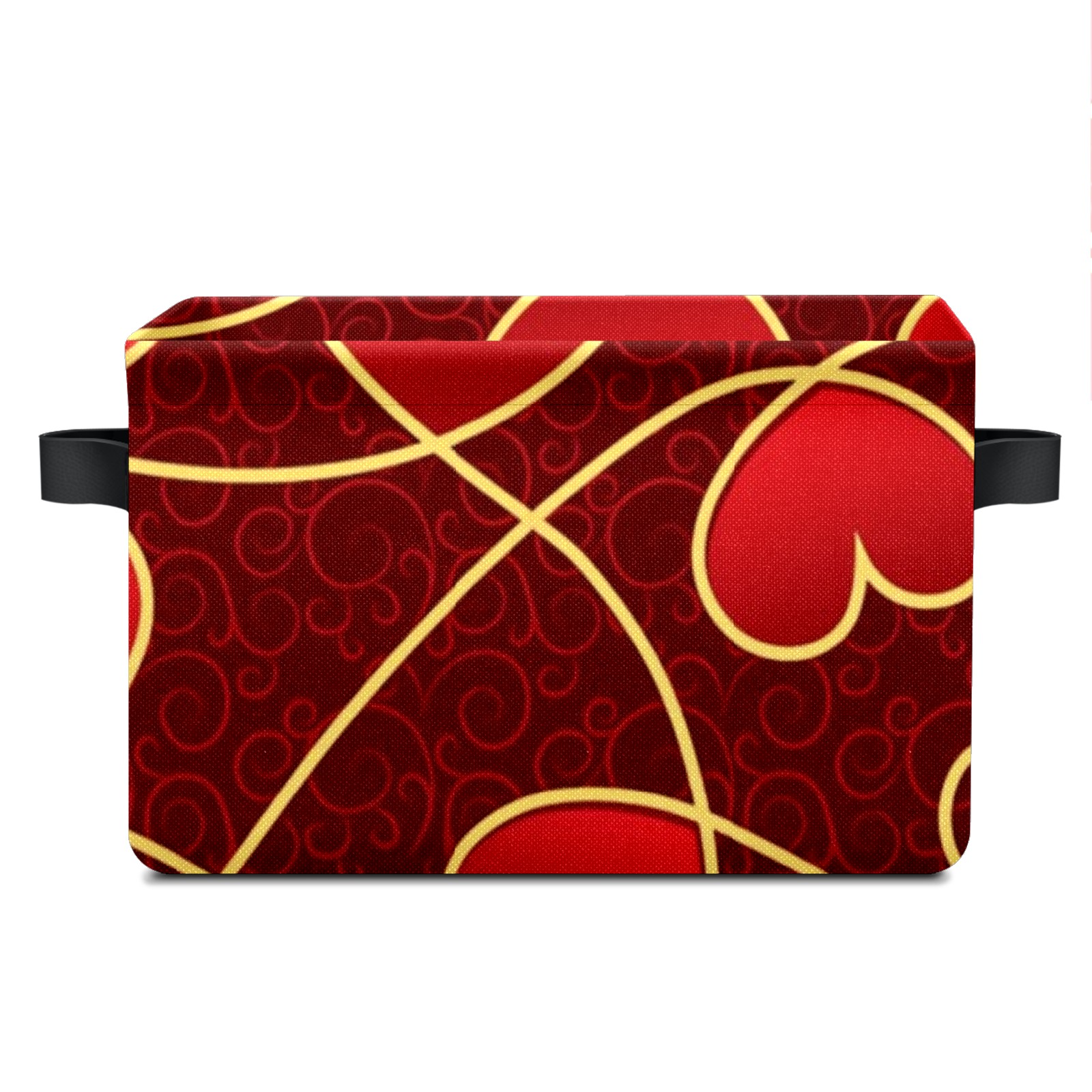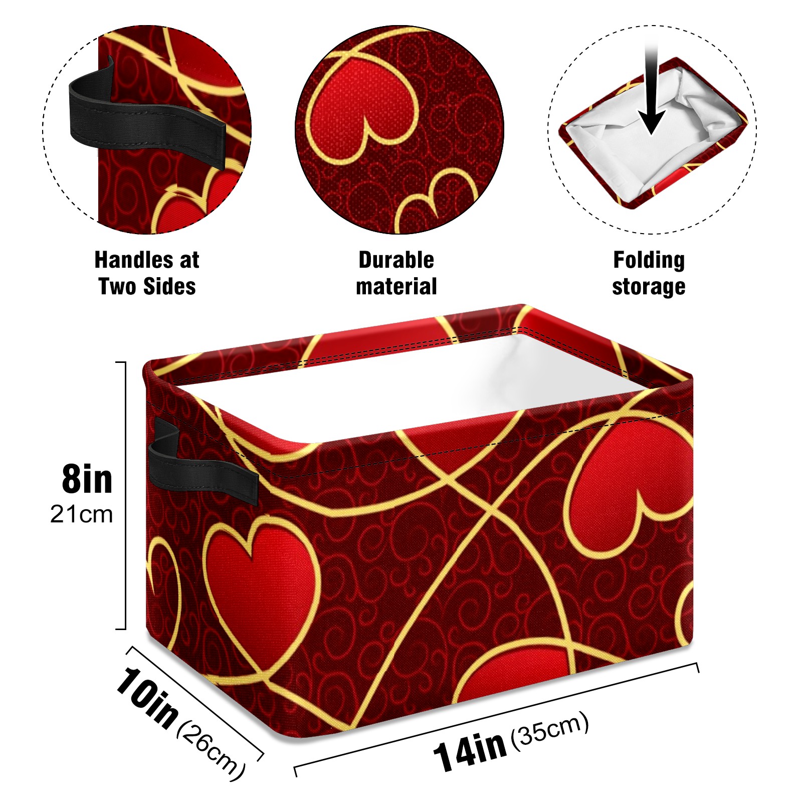 Collapsible 600D Oxford Storage Basket with Valentine Red Hearts - Metal Frame 10"x14"x8" Reinforced Handles, Multi-Purpose Organizer
