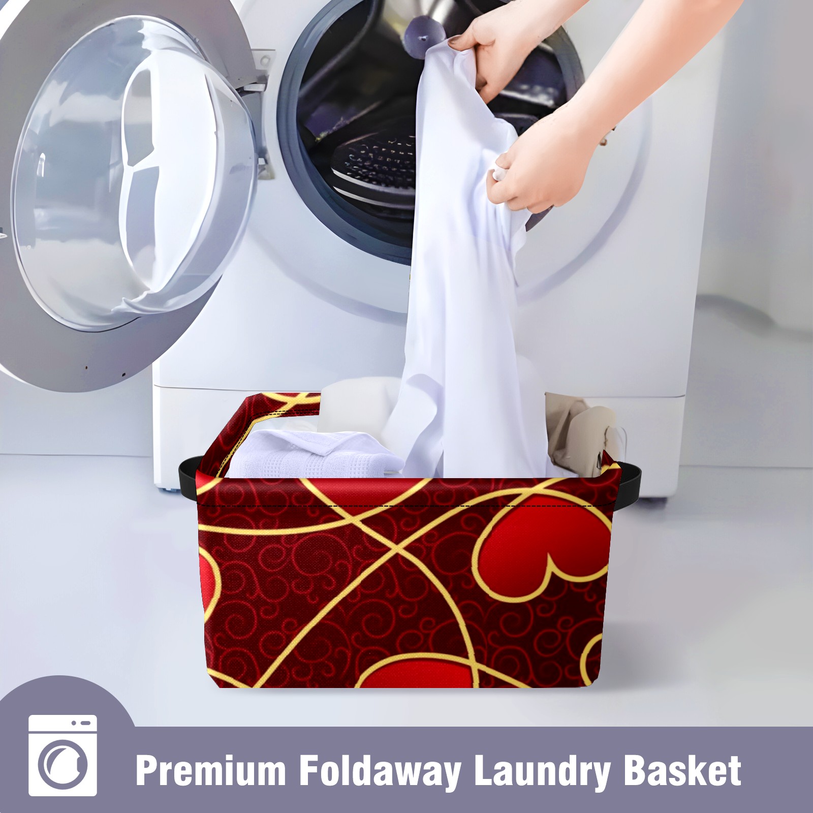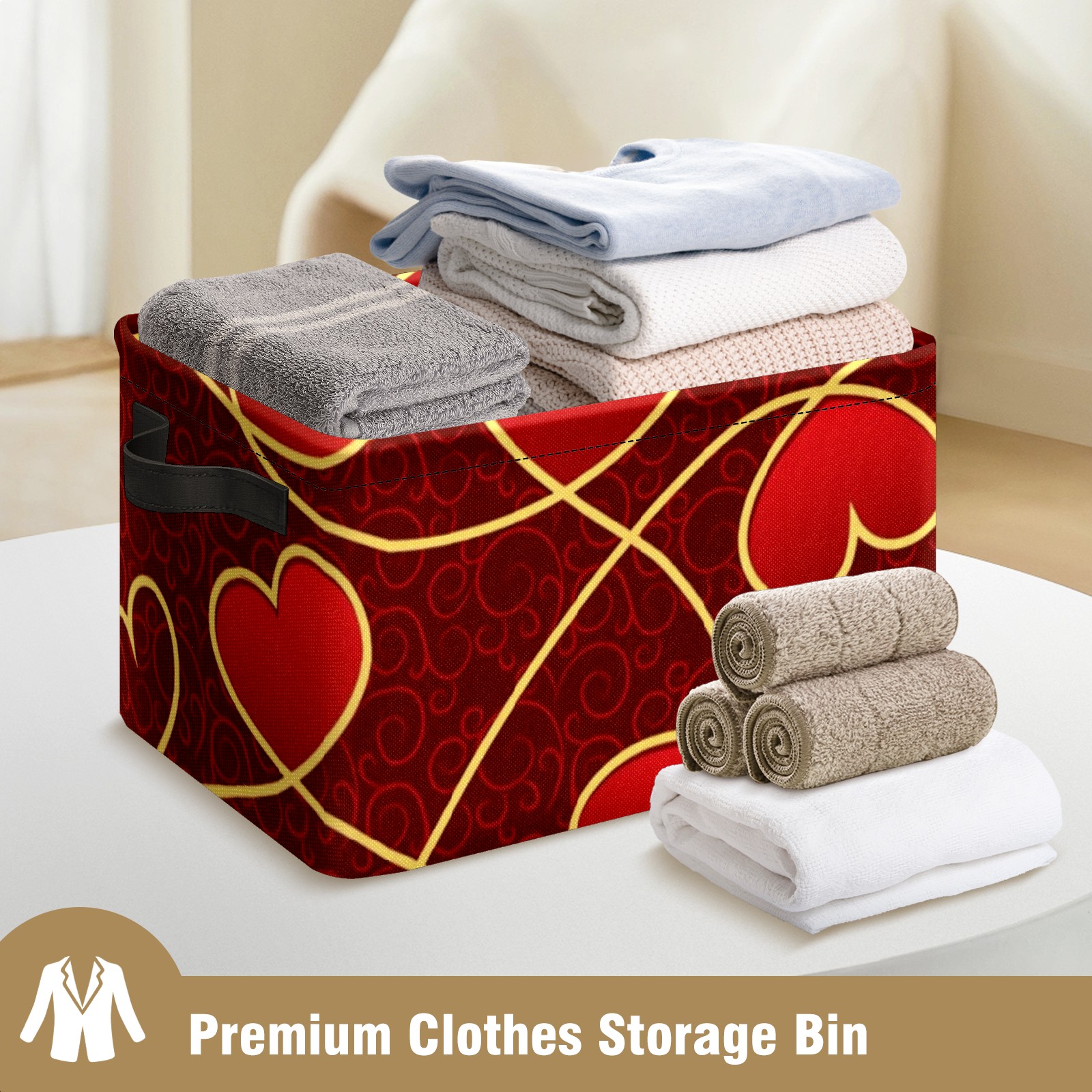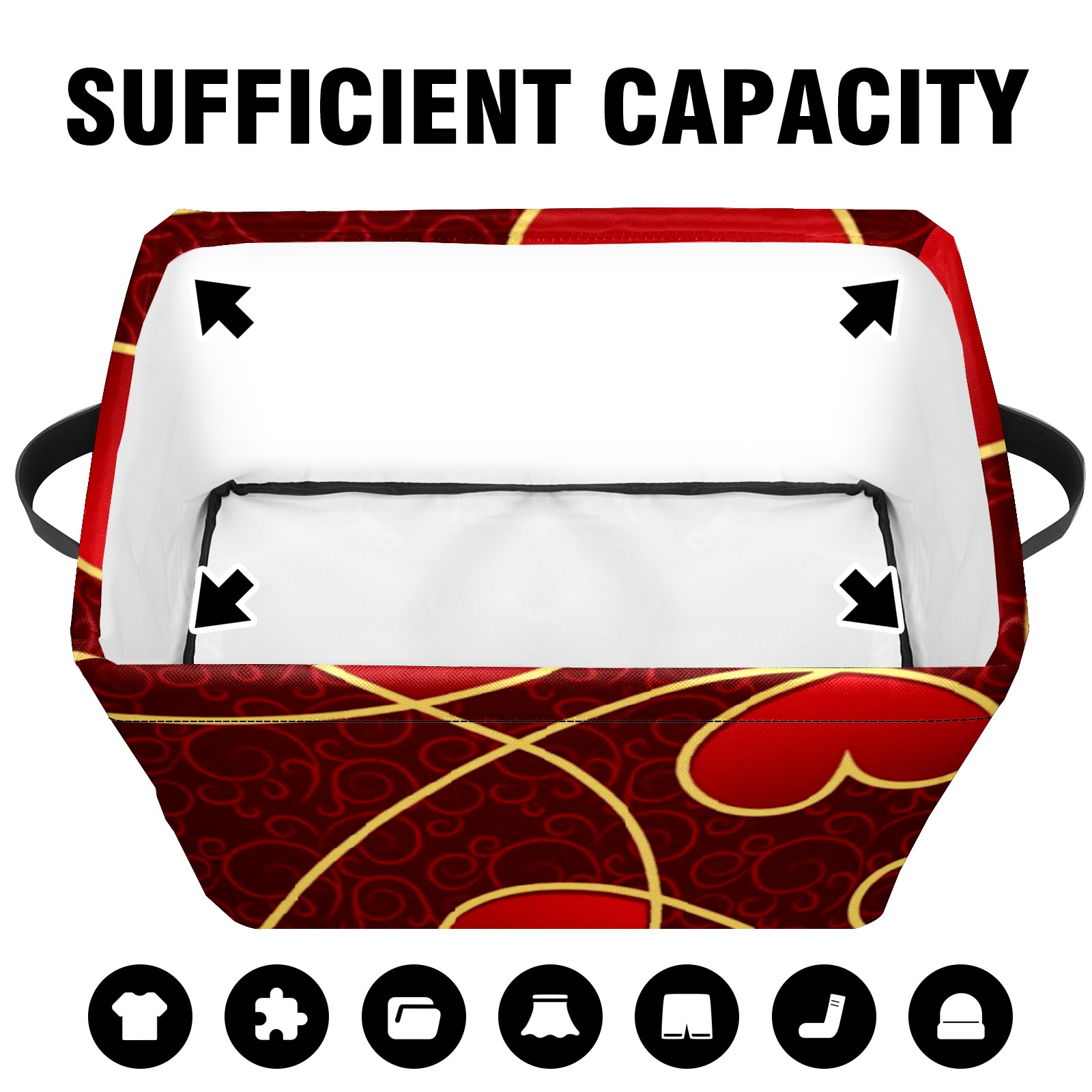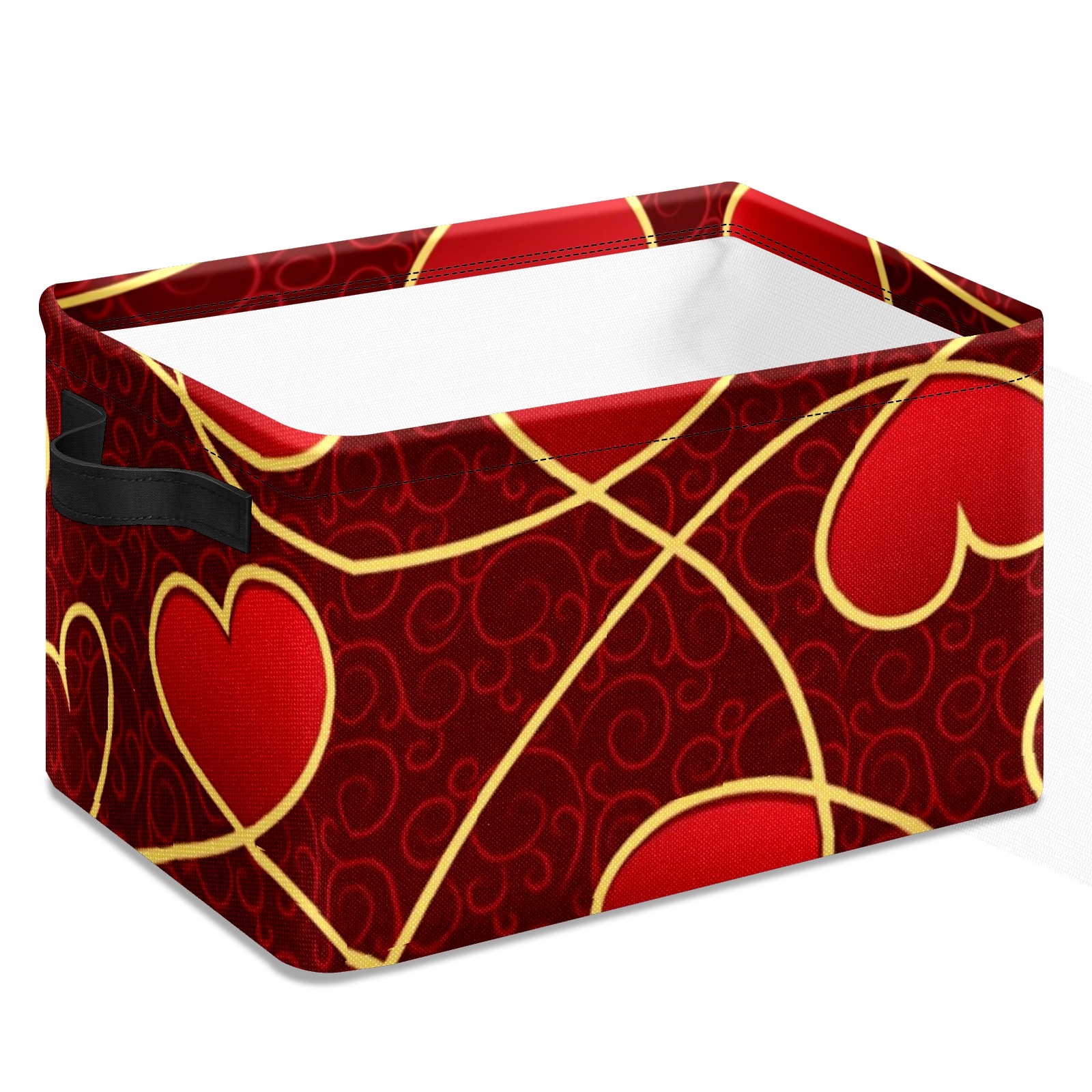 Collapsible 600D Oxford Storage Basket with Valentine Red Hearts - Metal Frame 10"x14"x8" Reinforced Handles, Multi-Purpose Organizer