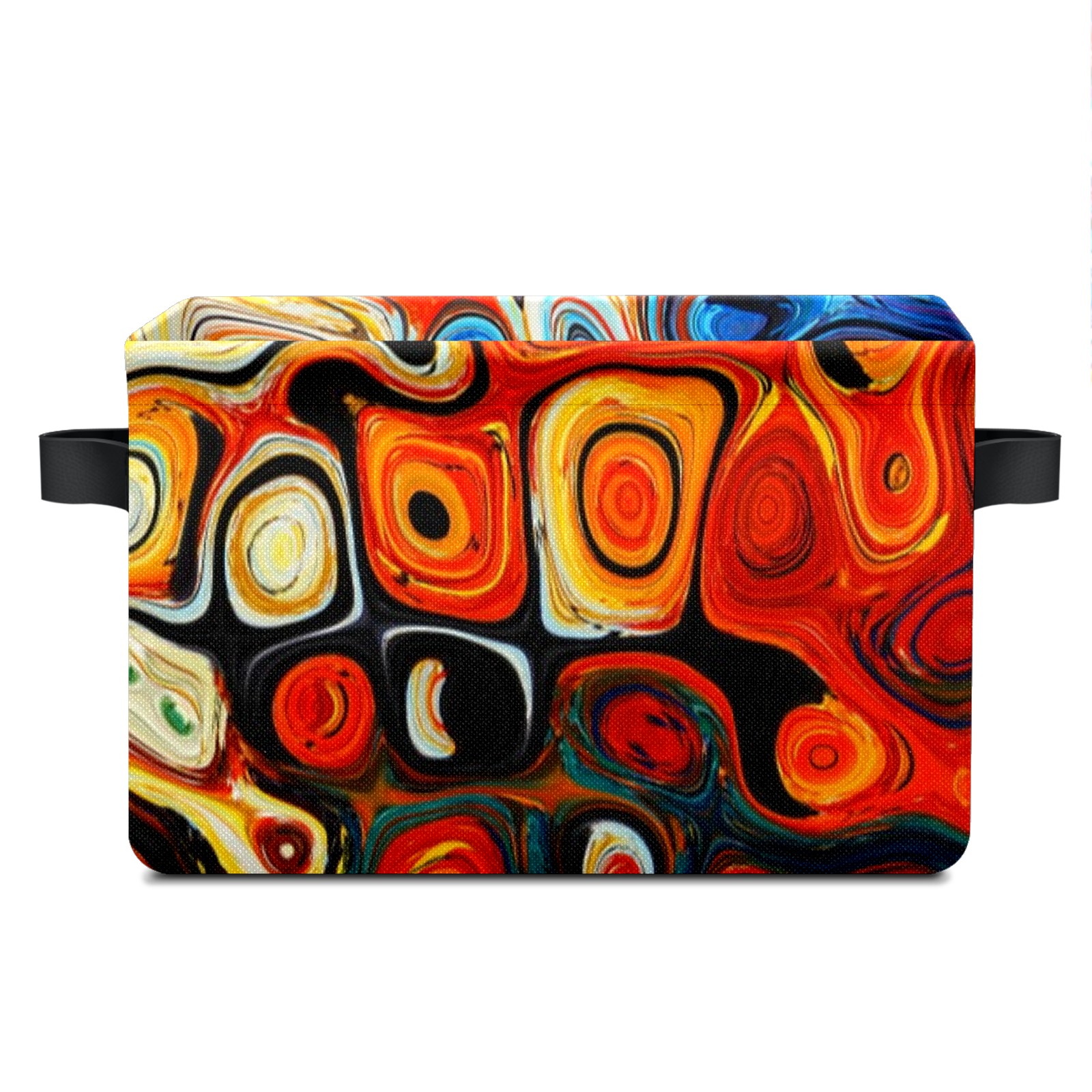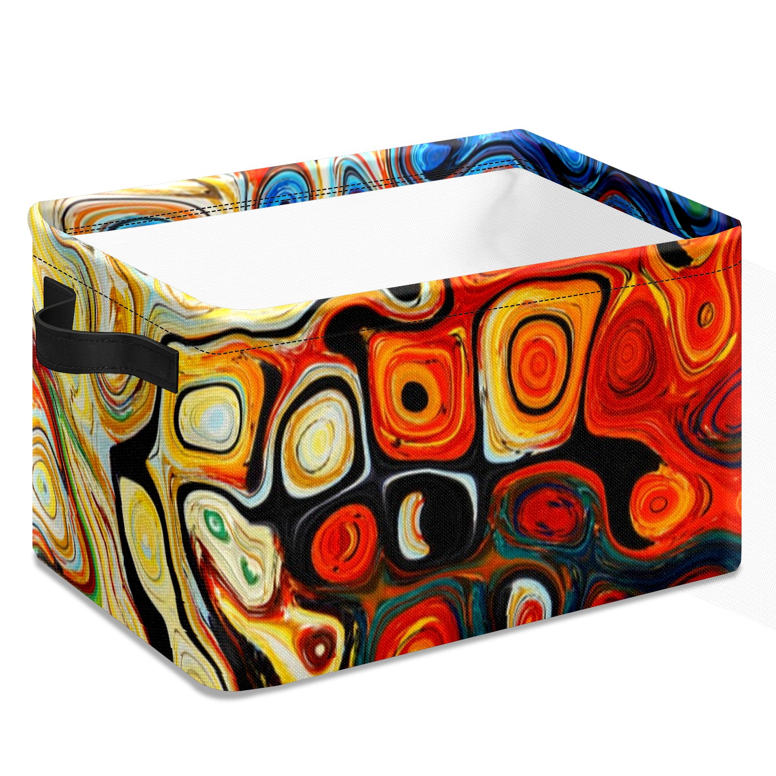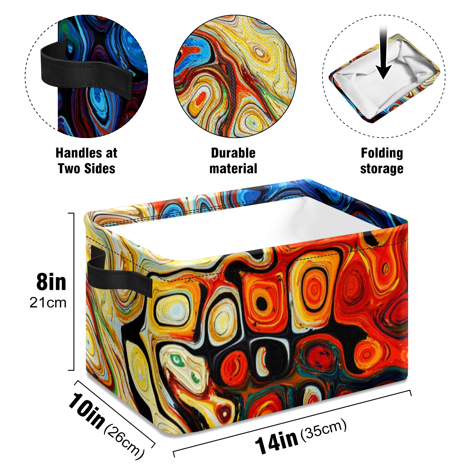 Collapsible 600D Oxford Storage Basket with Abstract Colorful Geometric Painting - Metal Frame 10"x14"x8" Reinforced Handles, Multi-Purpose Organizer