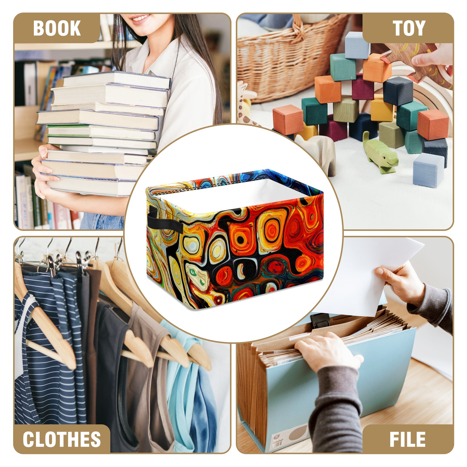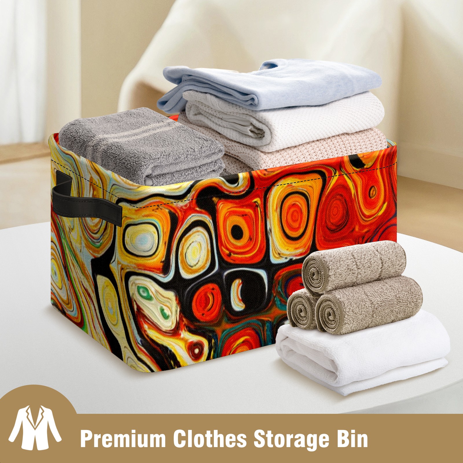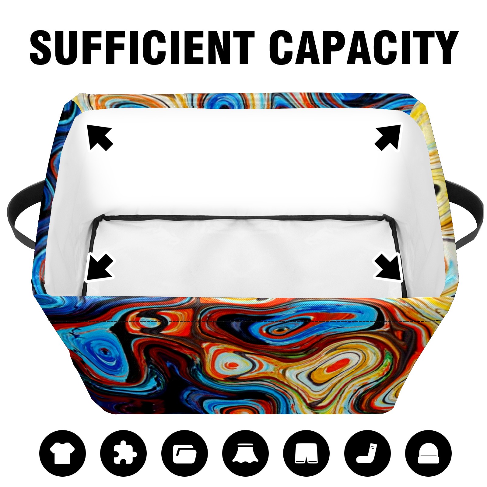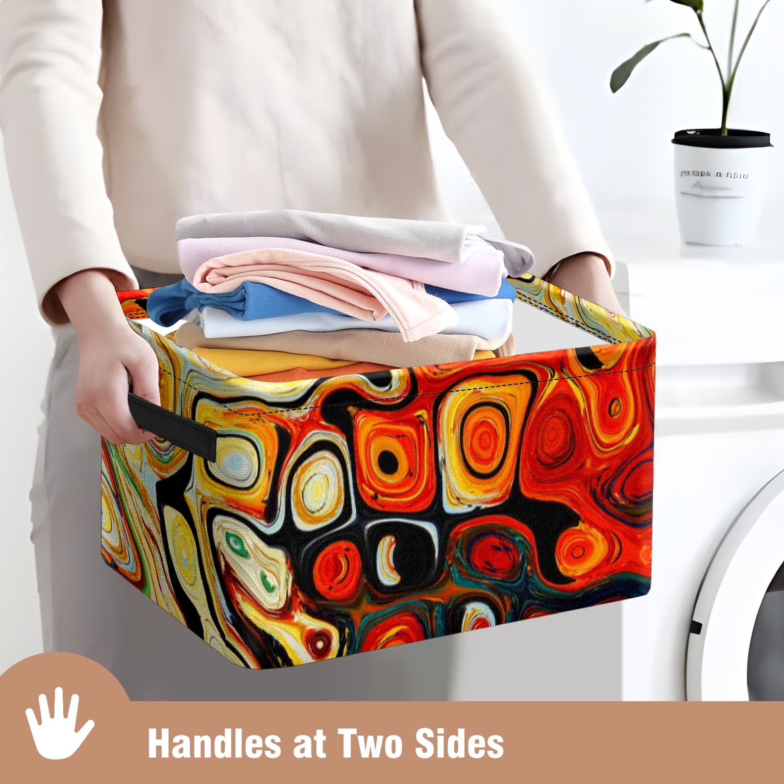 Collapsible 600D Oxford Storage Basket with Abstract Colorful Geometric Painting - Metal Frame 10"x14"x8" Reinforced Handles, Multi-Purpose Organizer