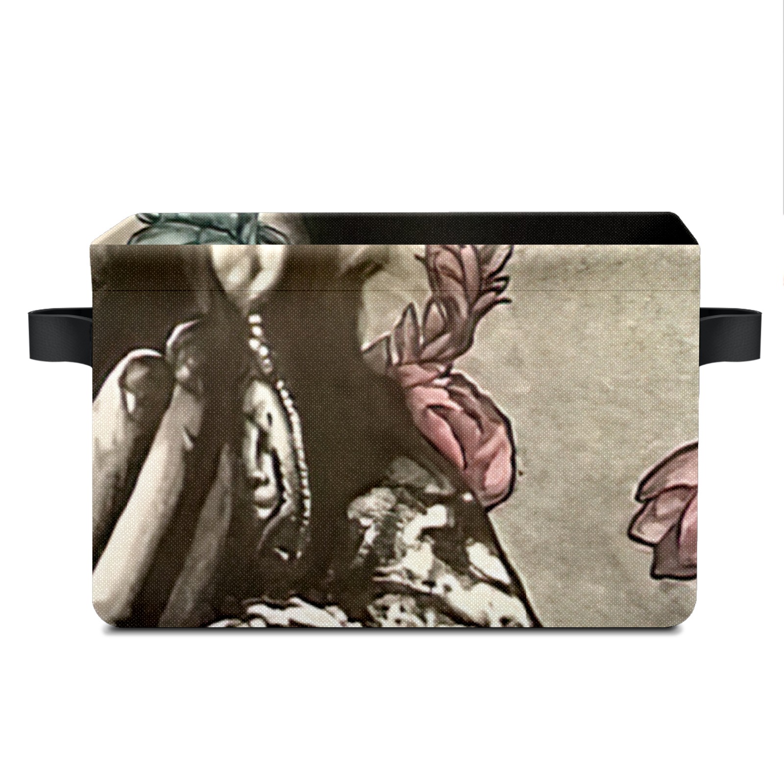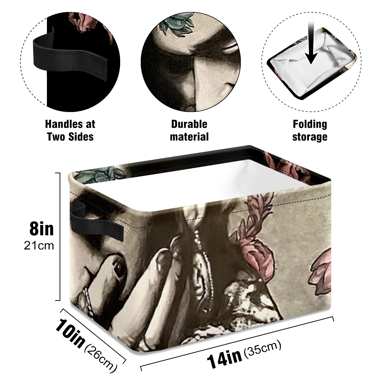 Collapsible 600D Oxford Storage Basket with Mexico Woman With Flowers - Metal Frame 10"x14"x8" Reinforced Handles, Multi-Purpose Organizer