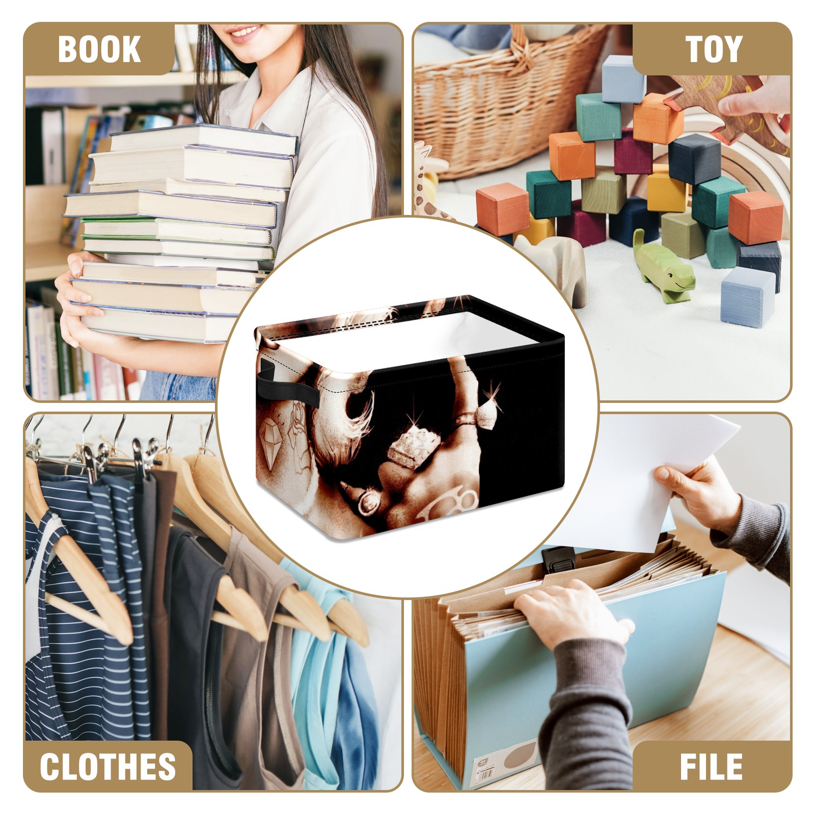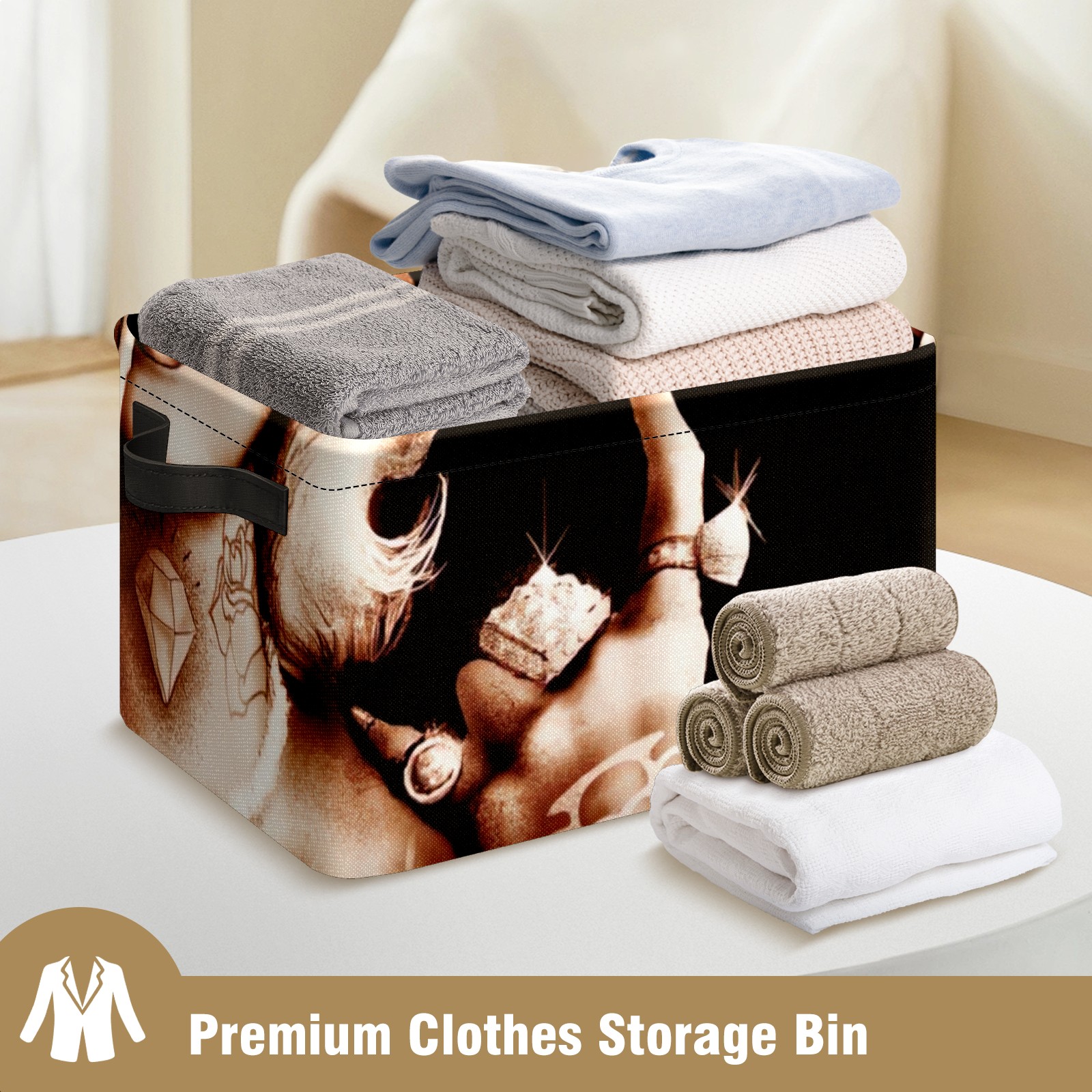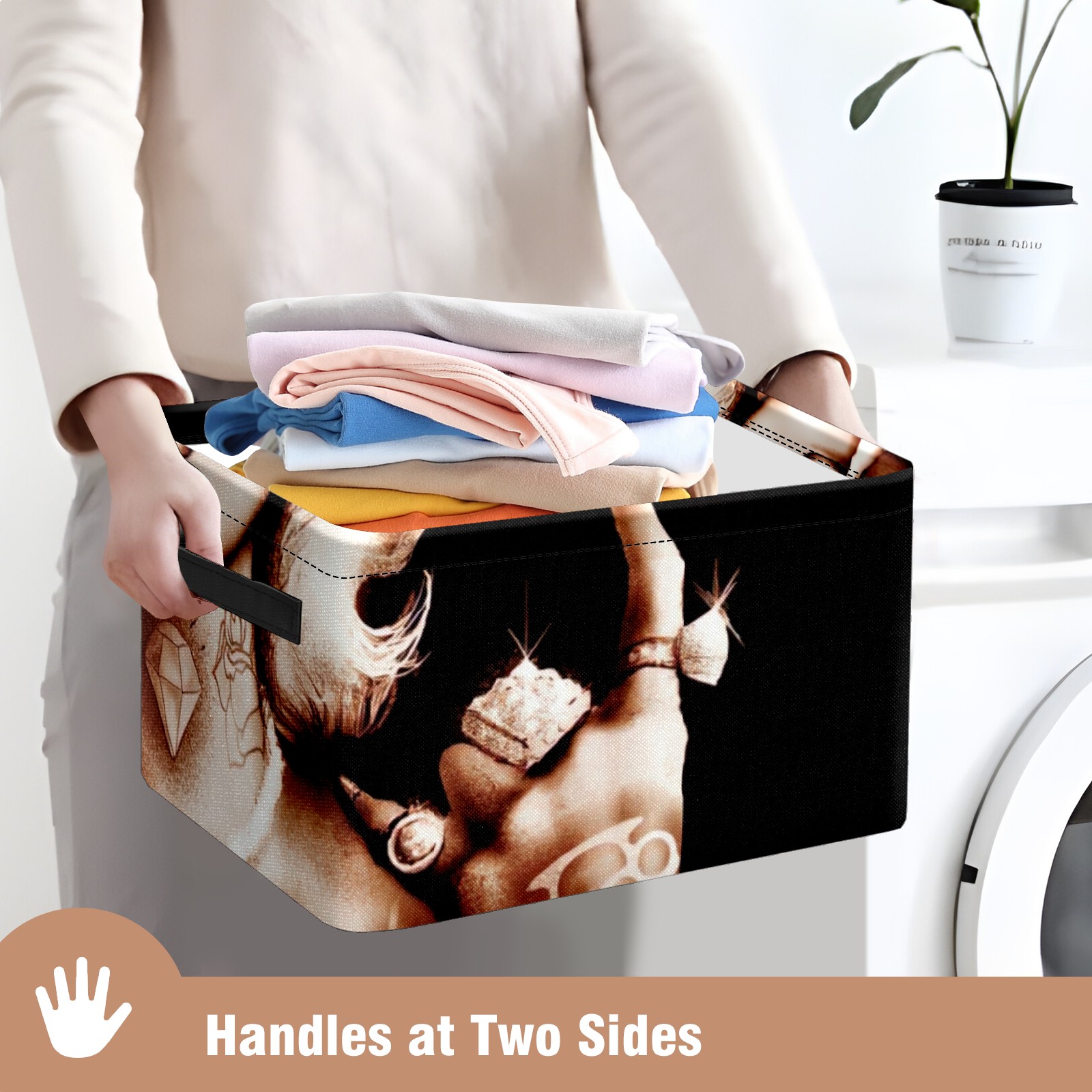 Collapsible 600D Oxford Storage Basket with Marilyn Monroe - Metal Frame 10"x14"x8" Reinforced Handles, Multi-Purpose Organizer