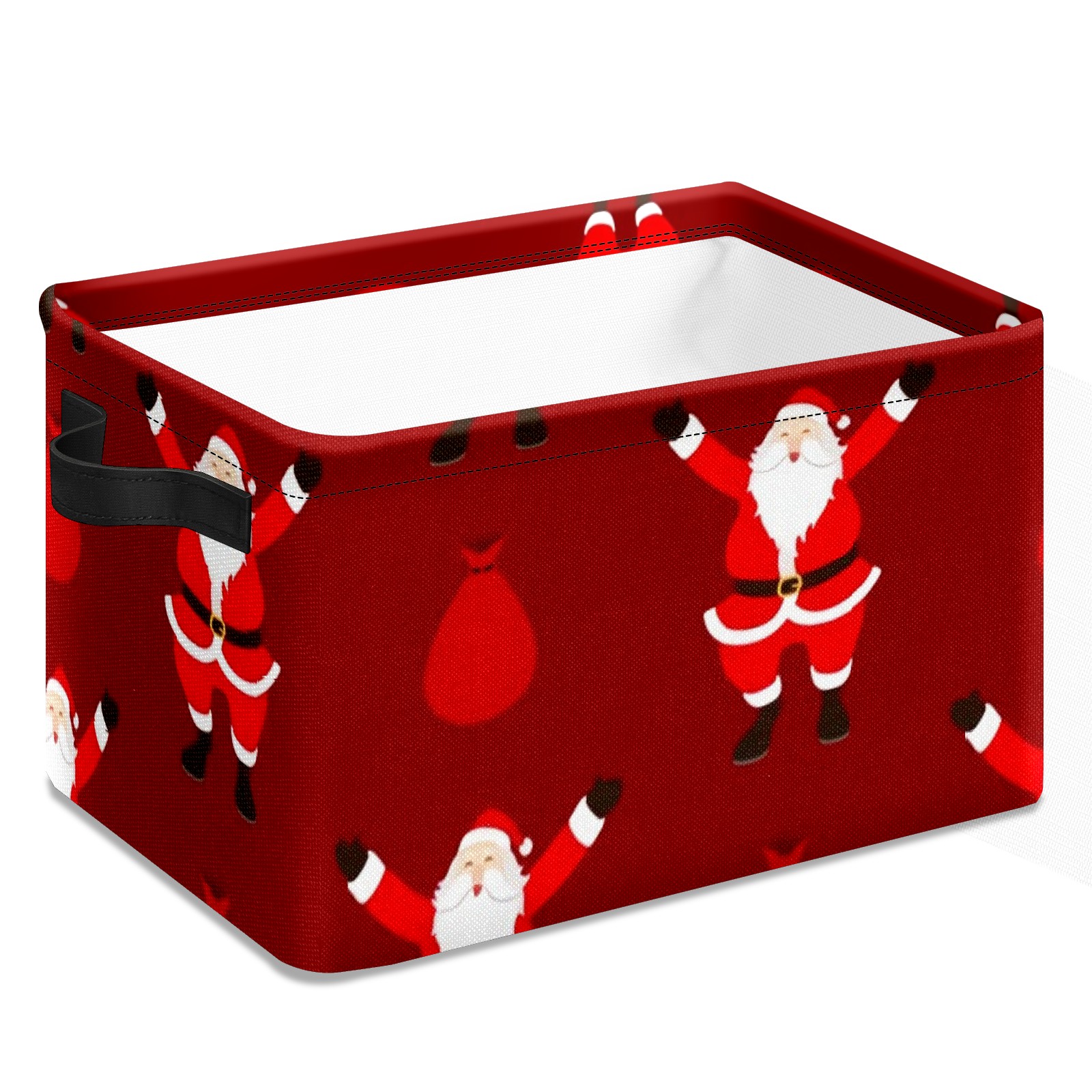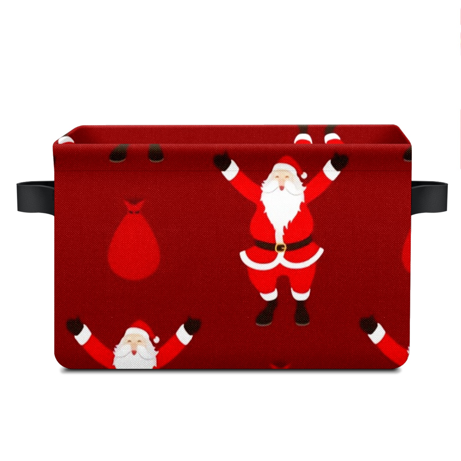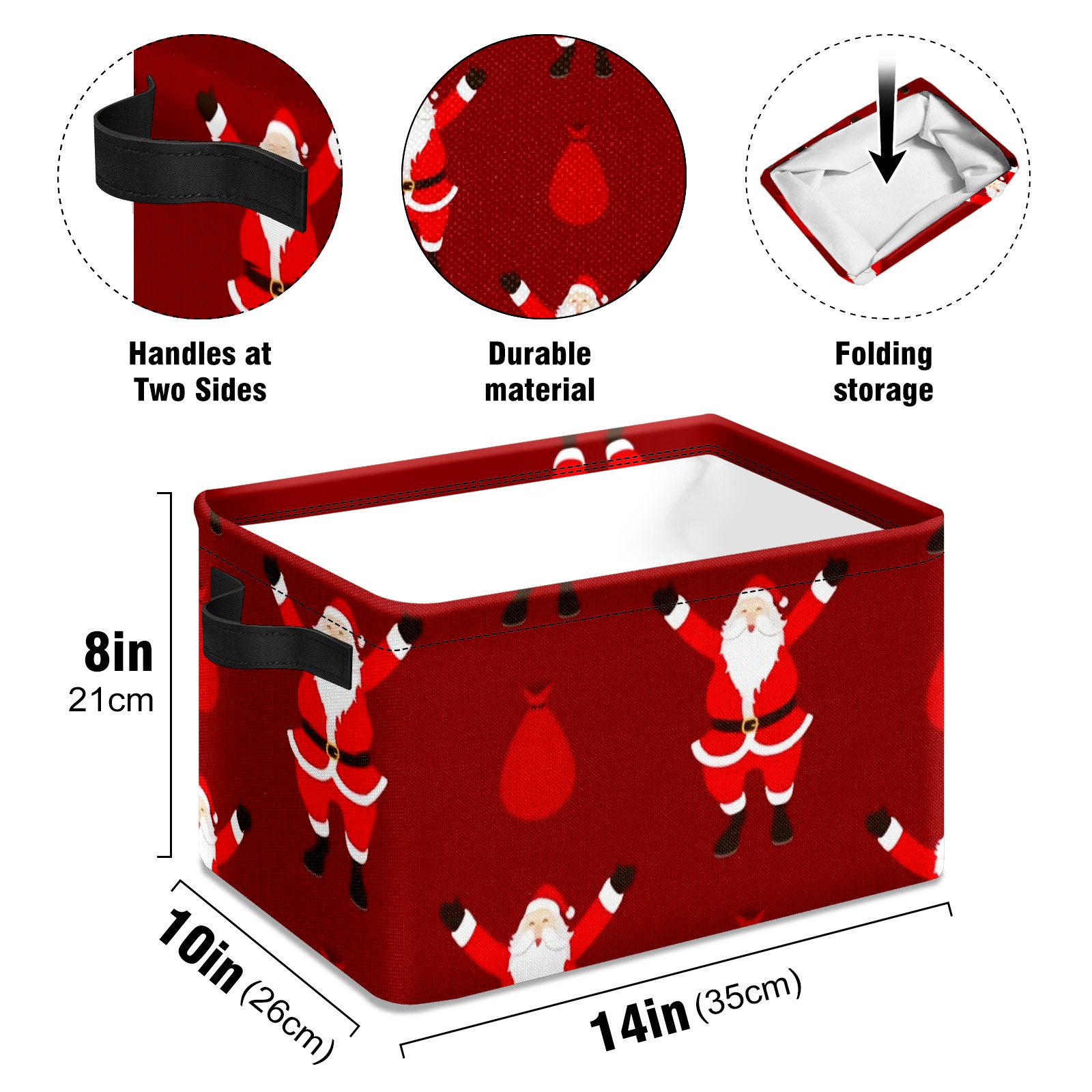 Collapsible 600D Oxford Storage Basket with Santa Claus Pattern - Metal Frame 10"x14"x8" Reinforced Handles, Multi-Purpose Organizer