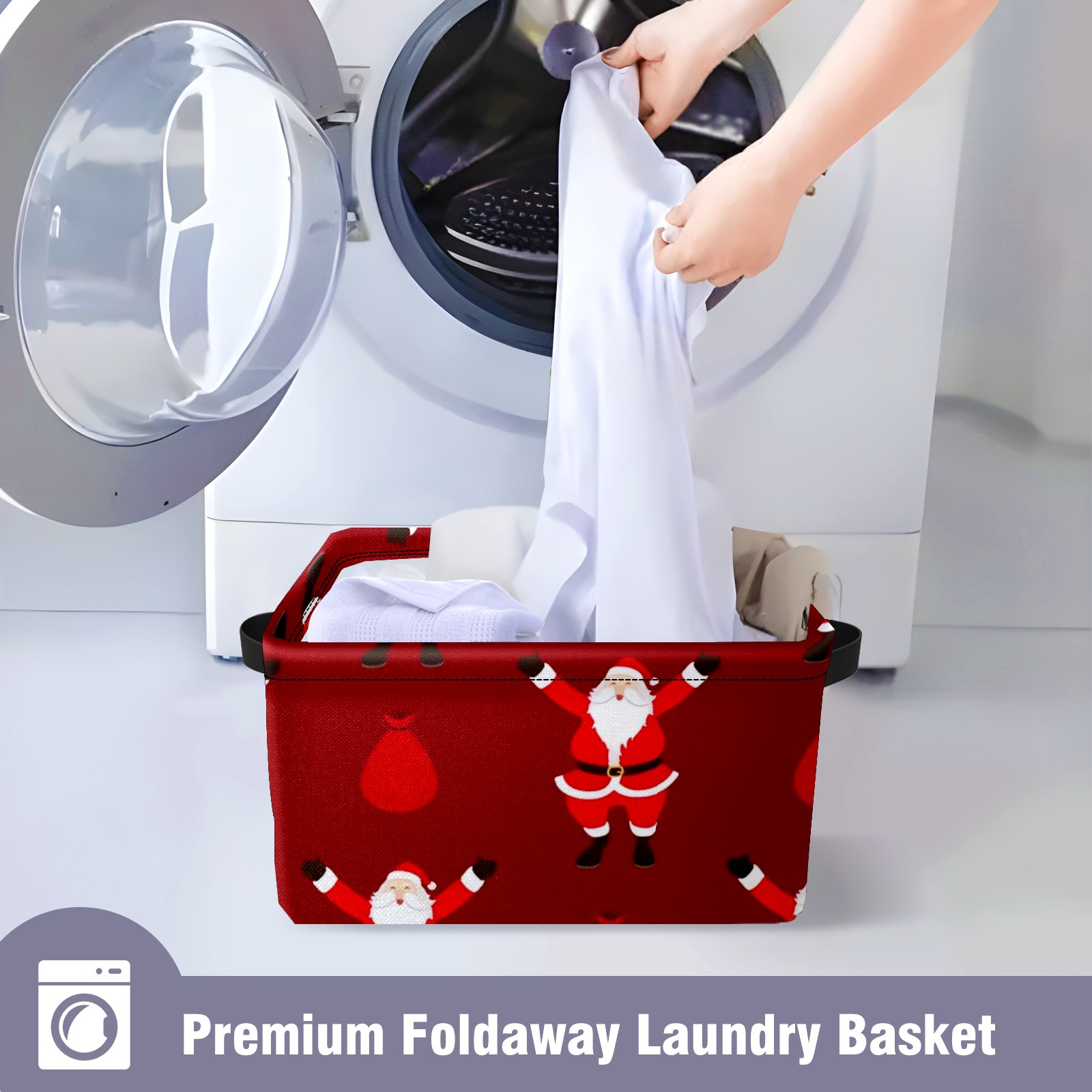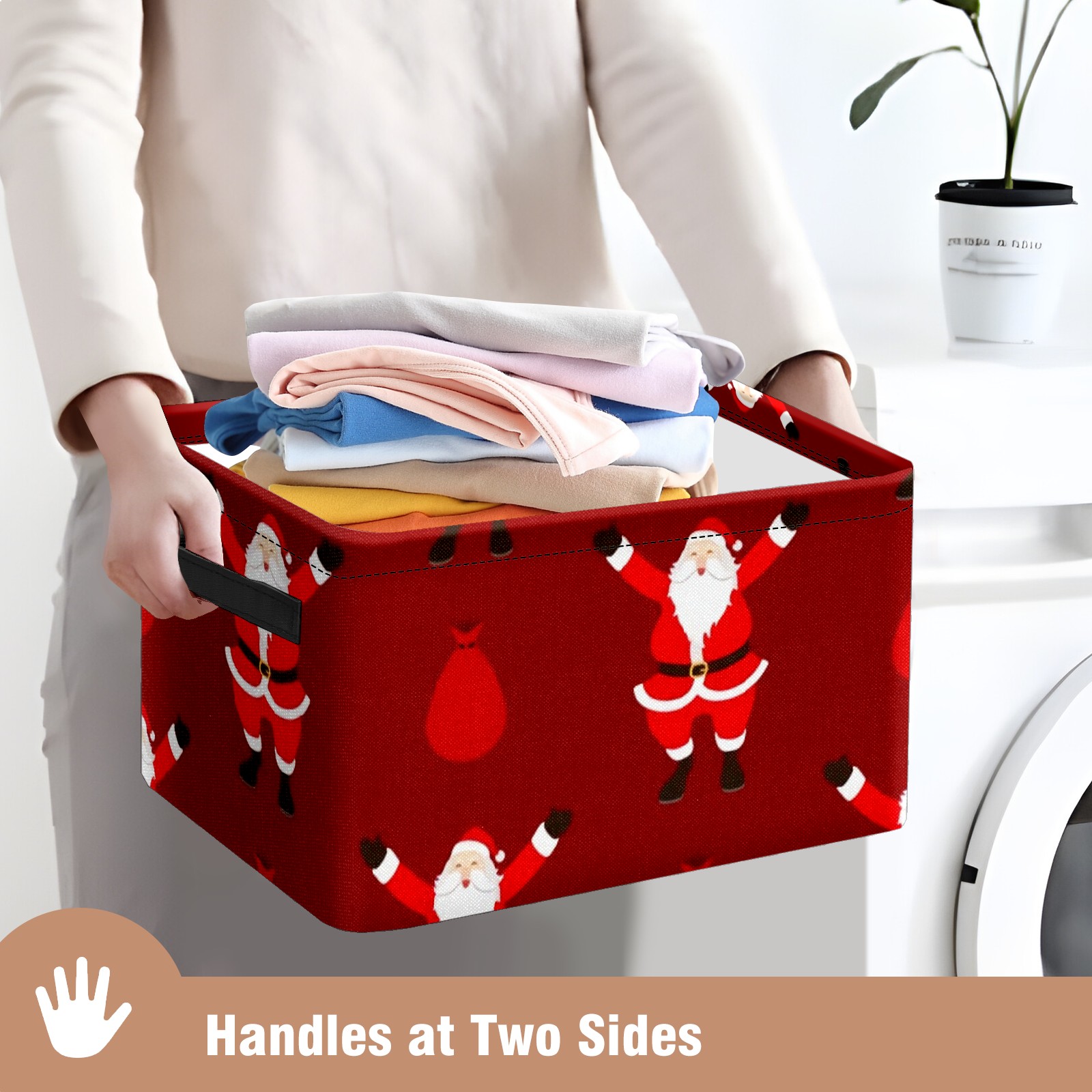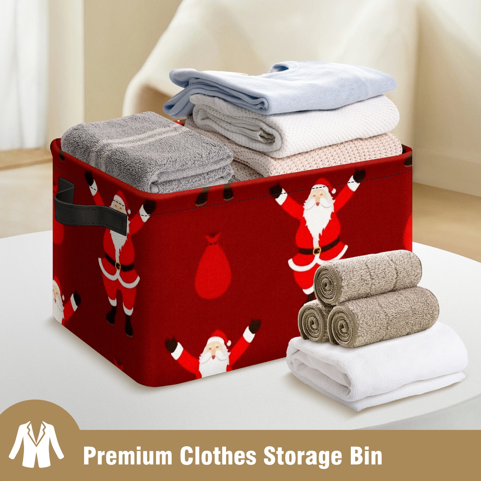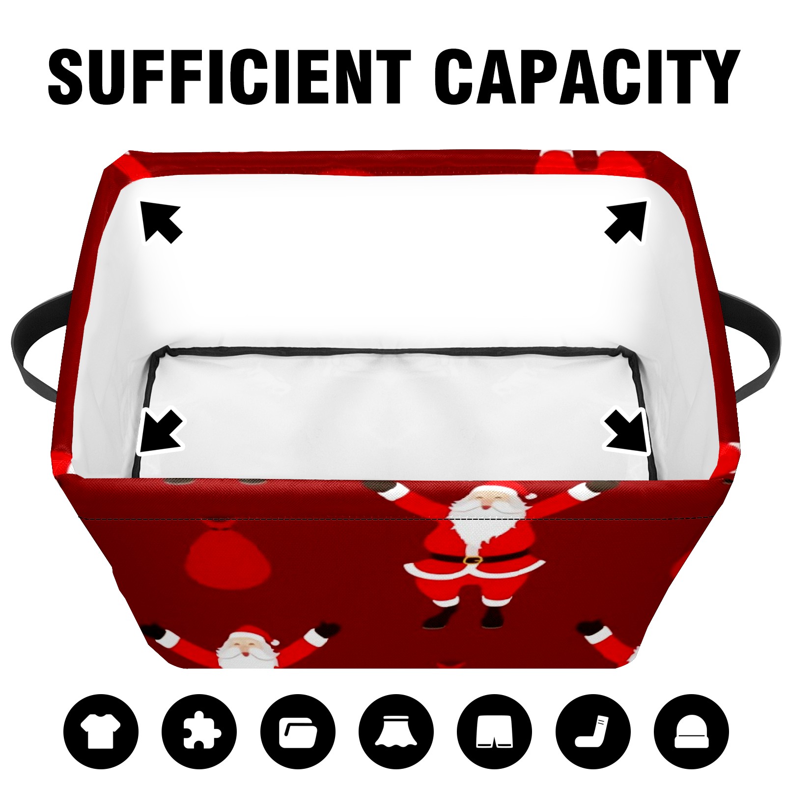 Collapsible 600D Oxford Storage Basket with Santa Claus Pattern - Metal Frame 10"x14"x8" Reinforced Handles, Multi-Purpose Organizer
