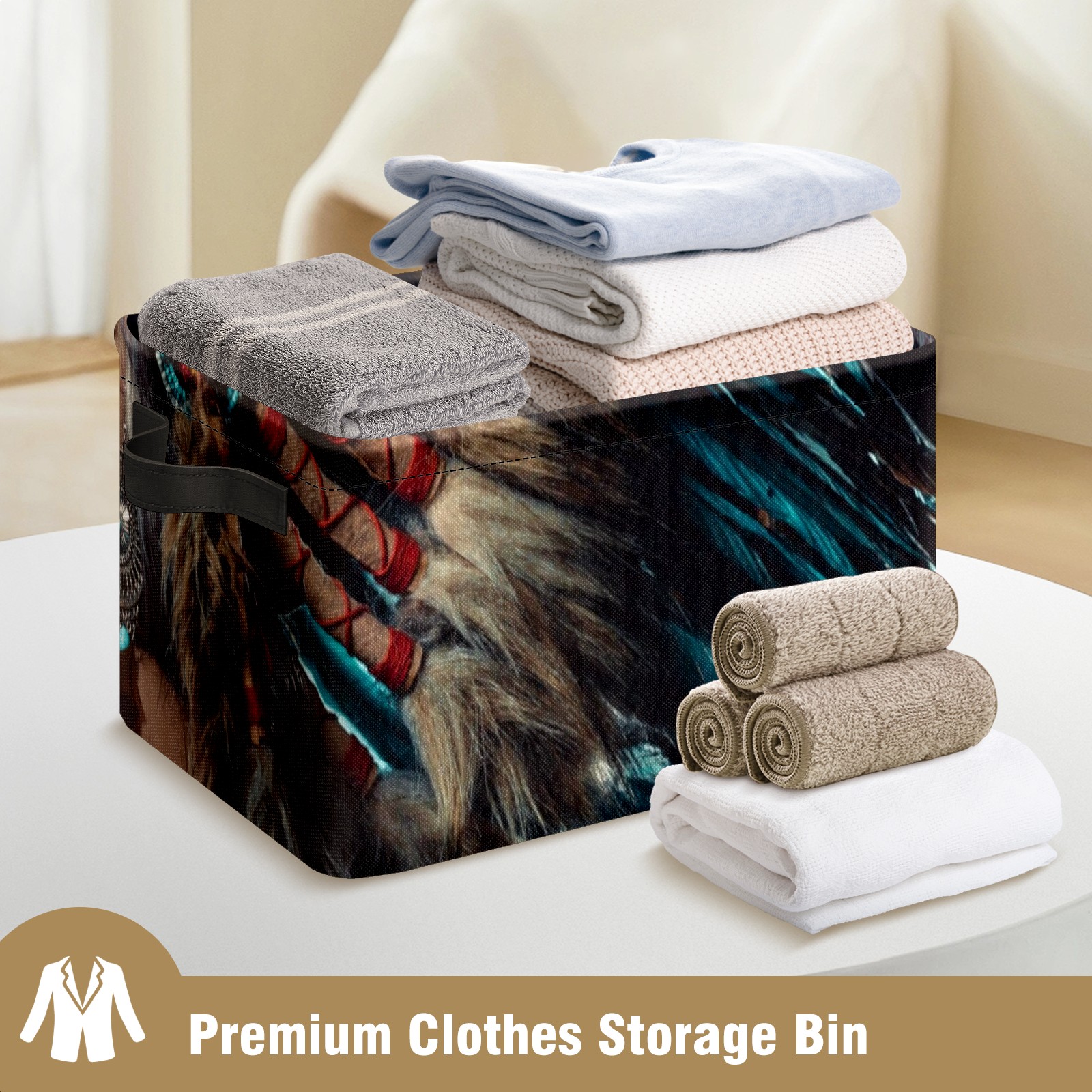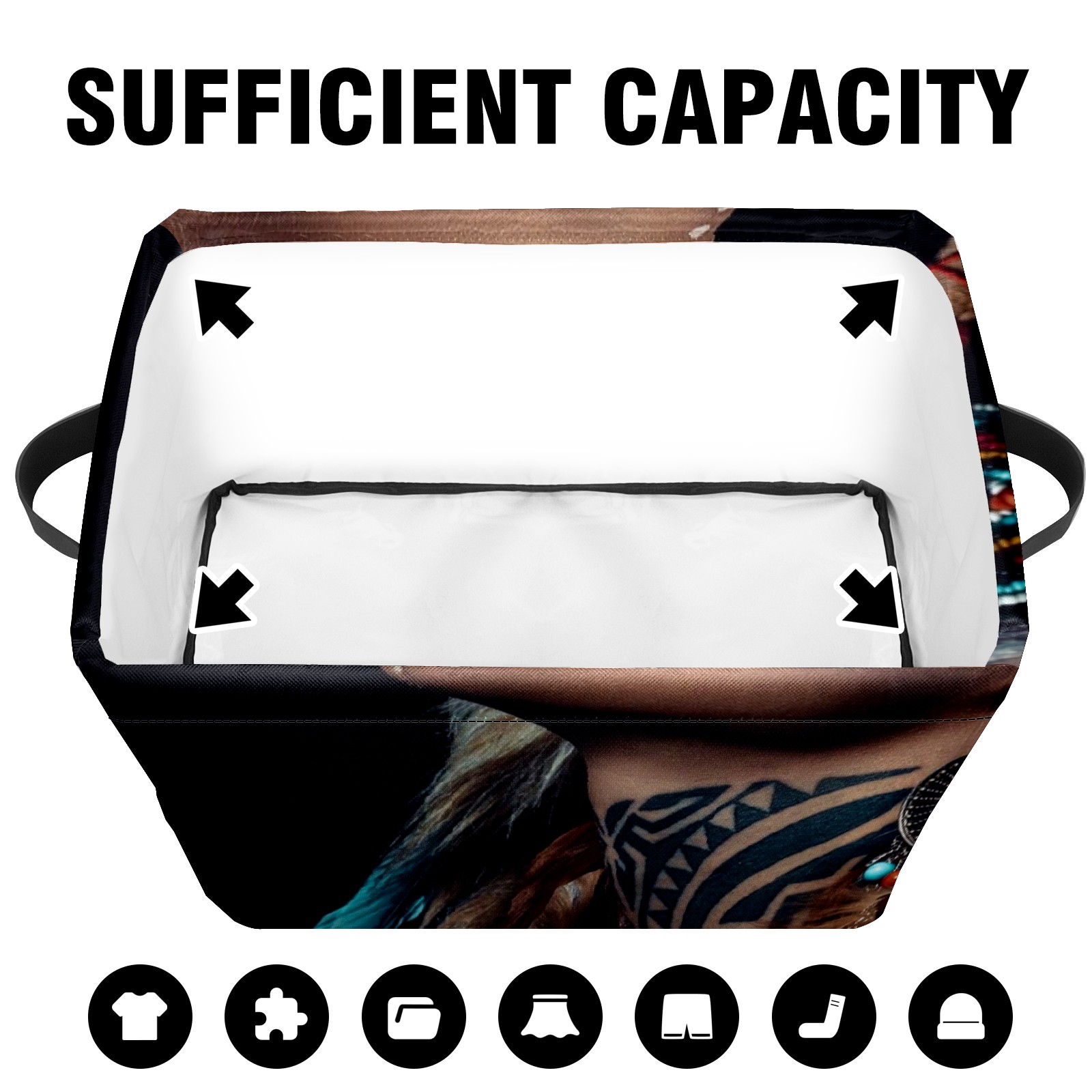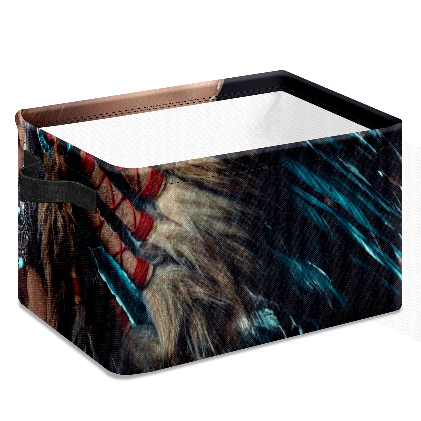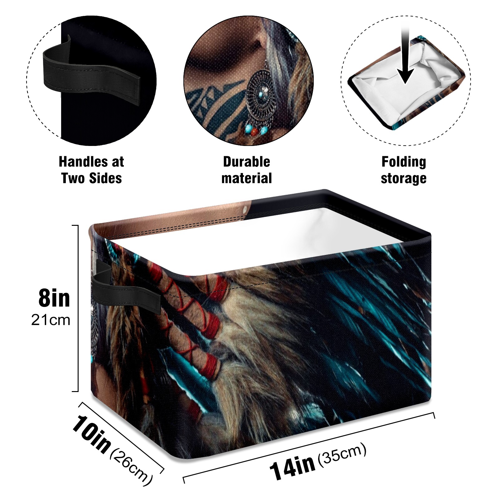 Collapsible 600D Oxford Storage Basket with Native American Woman Indian Girl - Metal Frame 10"x14"x8" Reinforced Handles, Multi-Purpose Organizer
