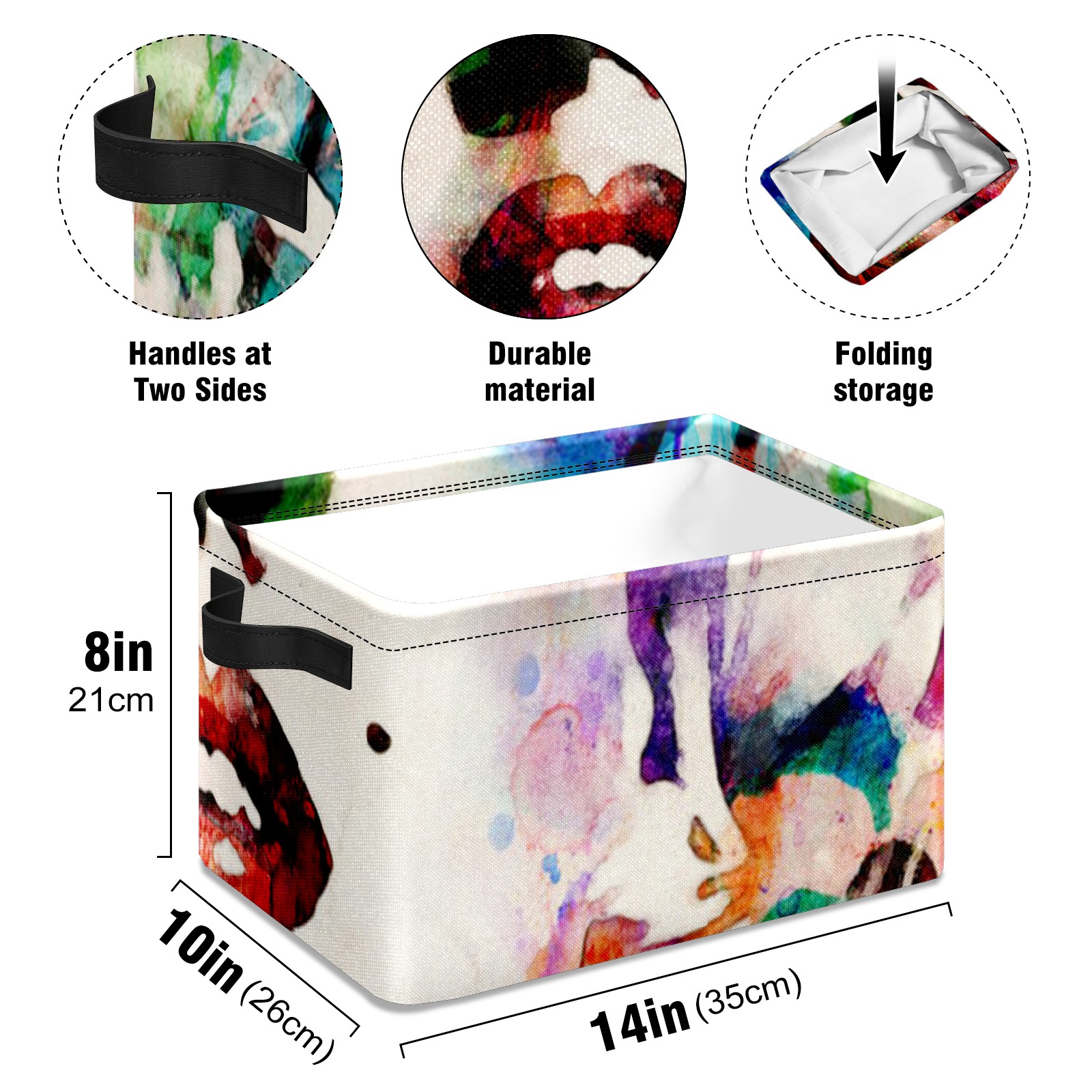Collapsible 600D Oxford Storage Basket with Marilyn Monroe Abstract Art - Metal Frame 10"x14"x8" Reinforced Handles, Multi-Purpose Organizer