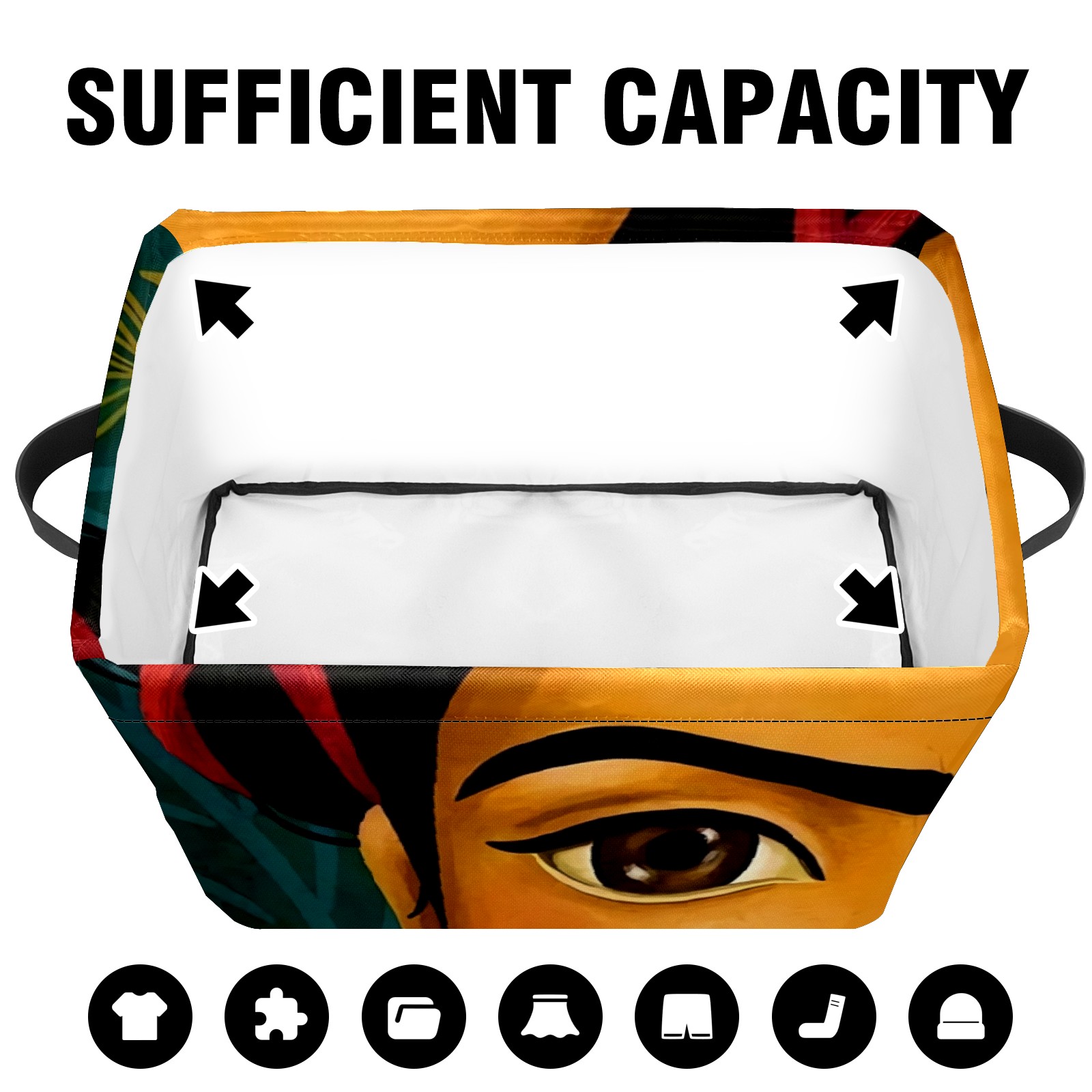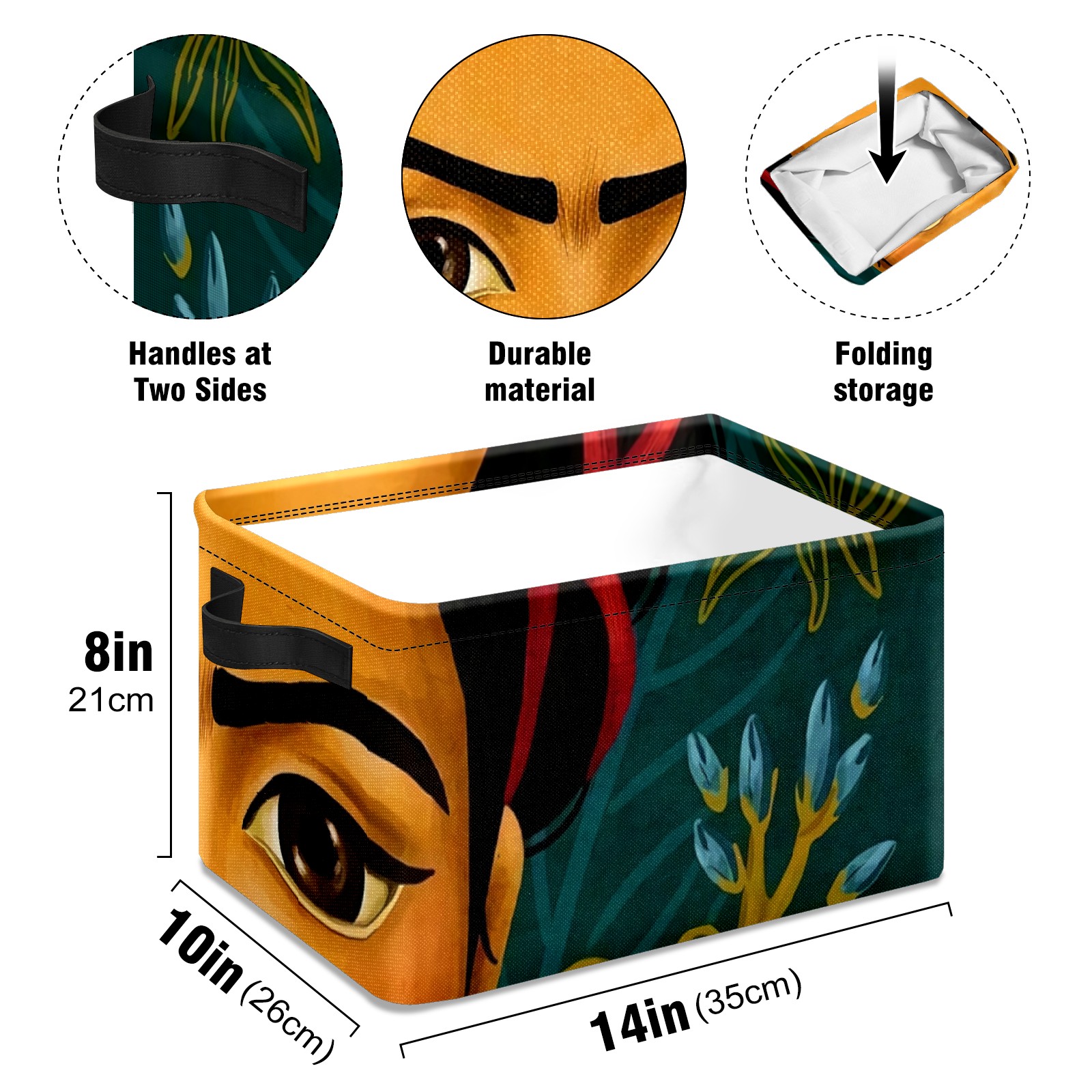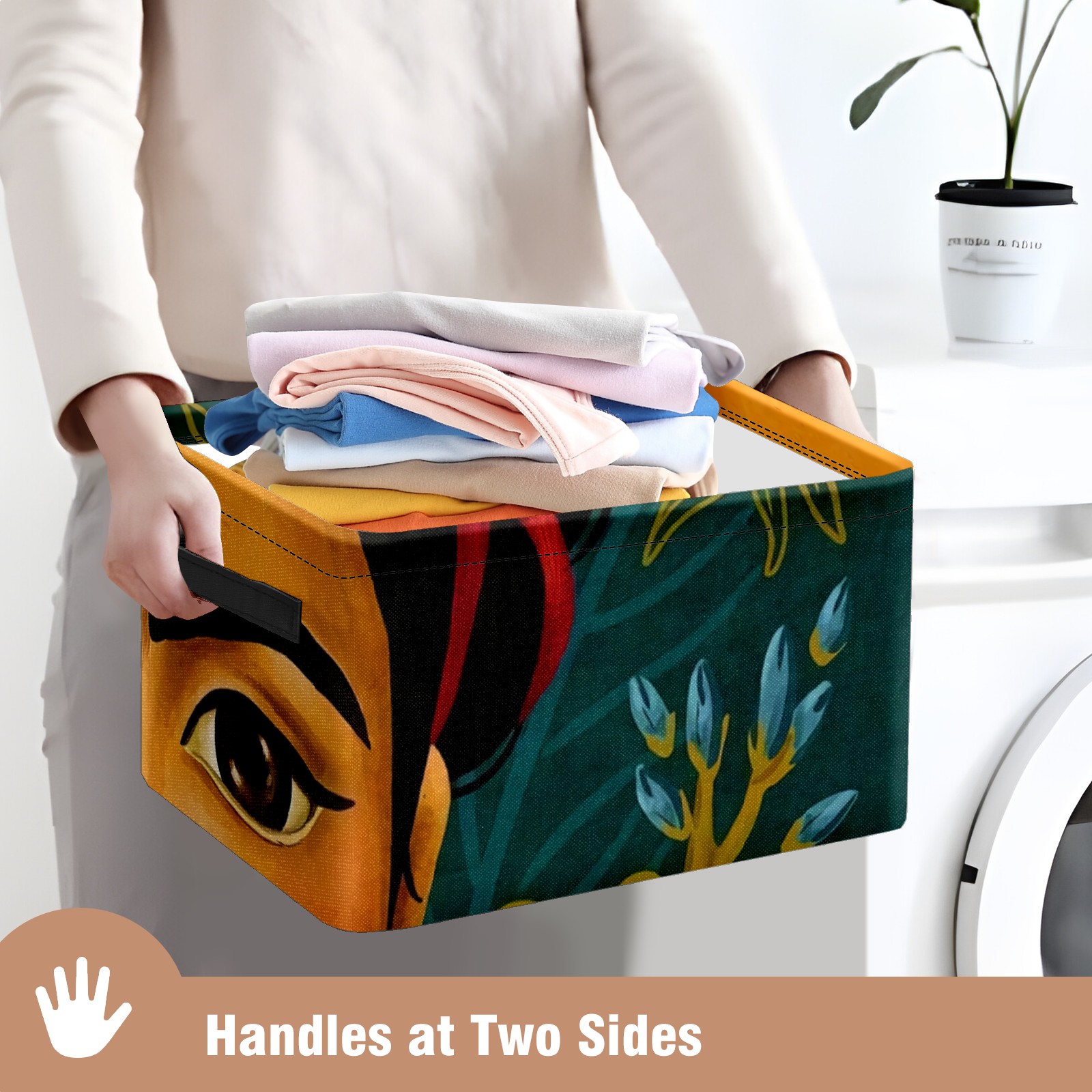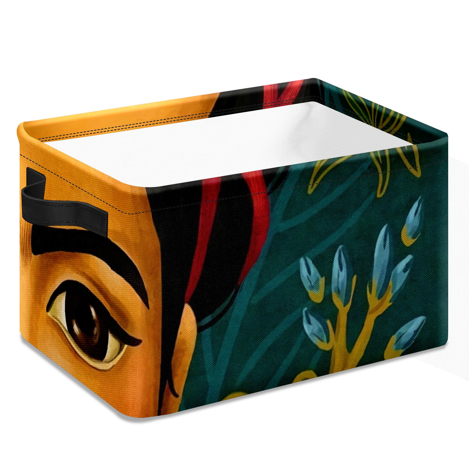 Collapsible 600D Oxford Storage Basket with Frida Kahlo Mexico Art - Metal Frame 10"x14"x8" Reinforced Handles, Multi-Purpose Organizer