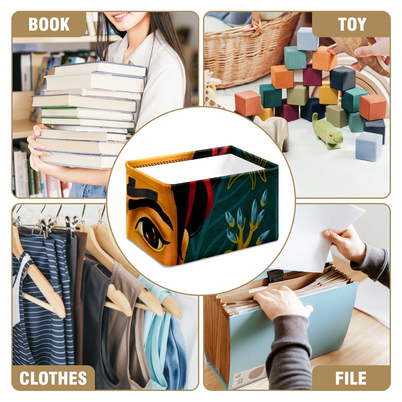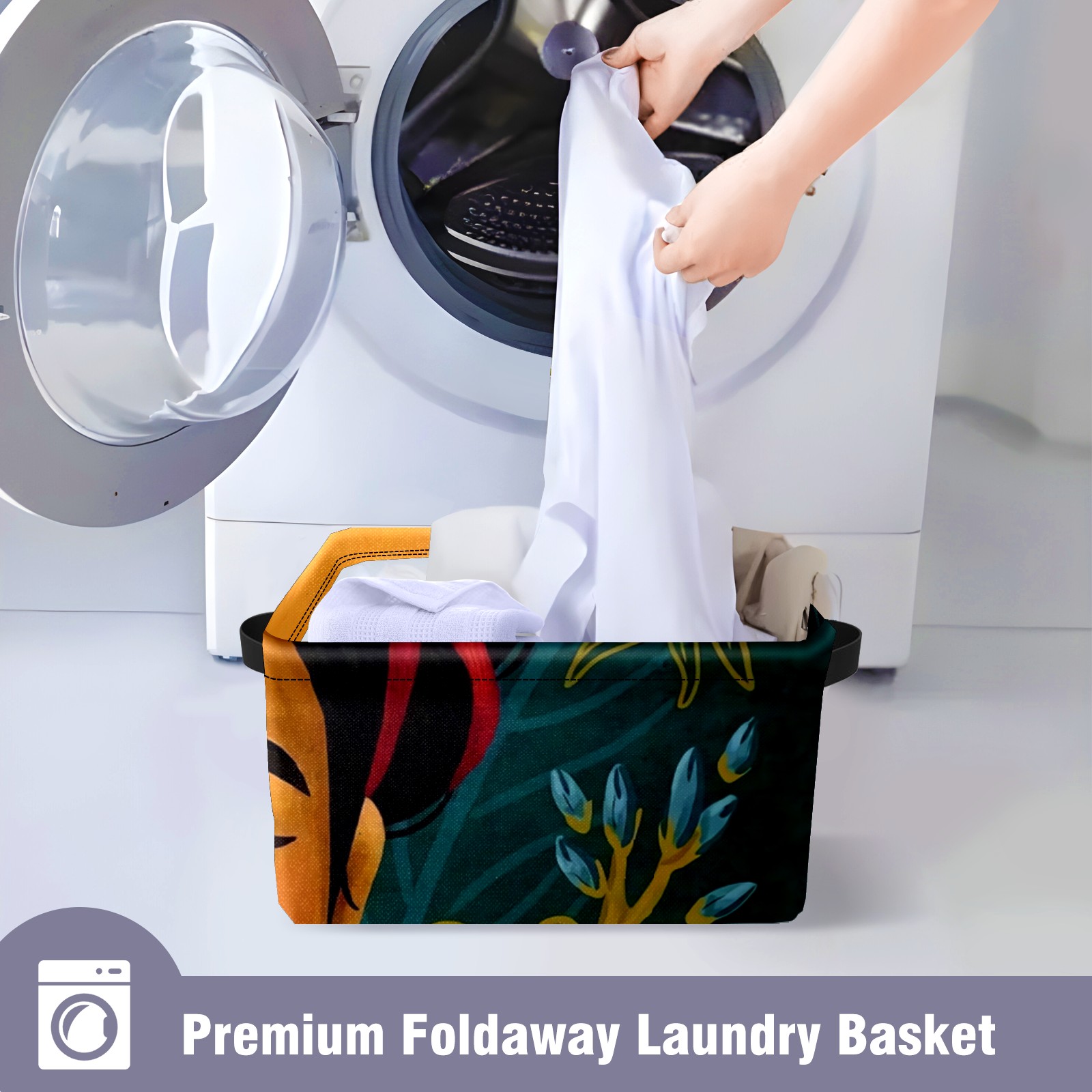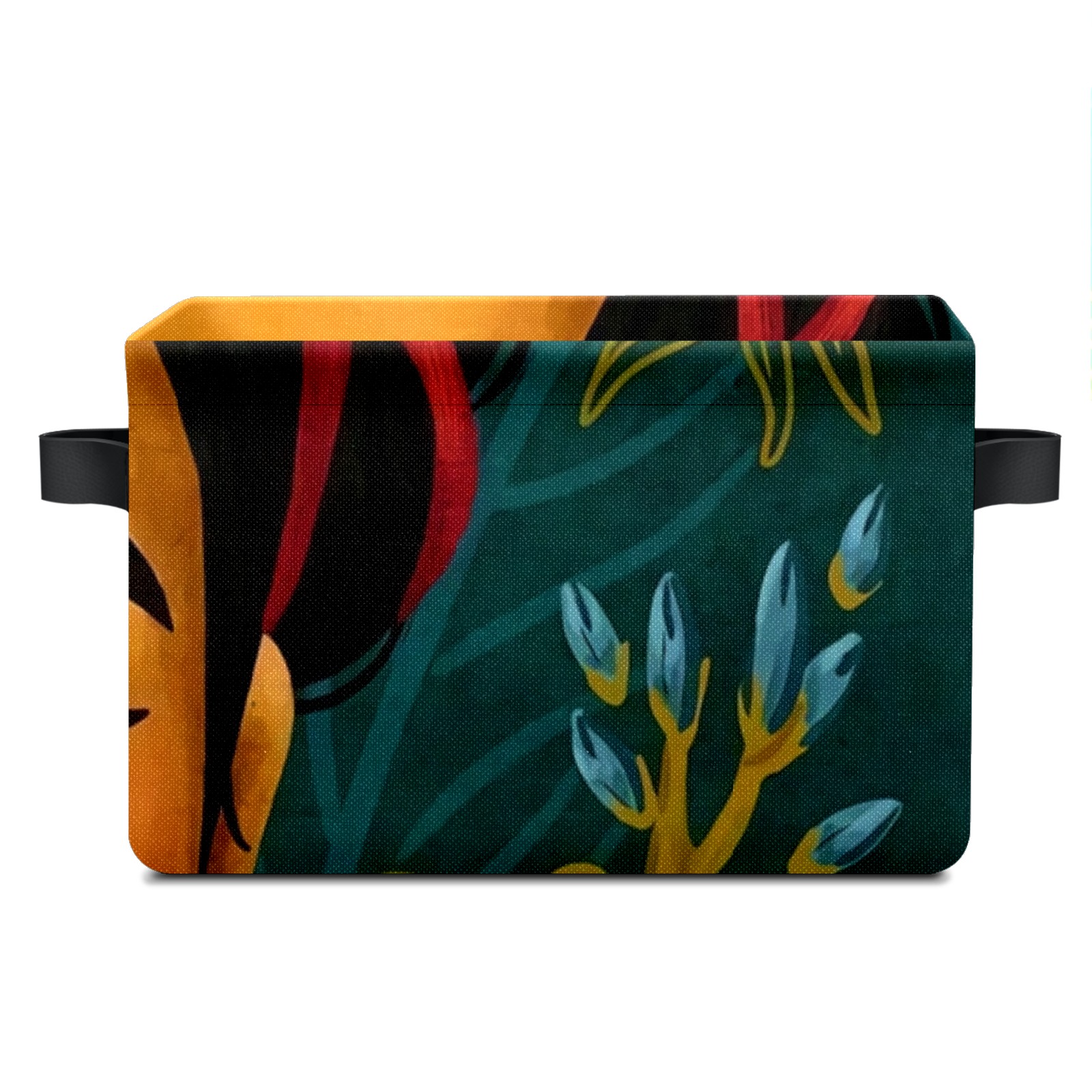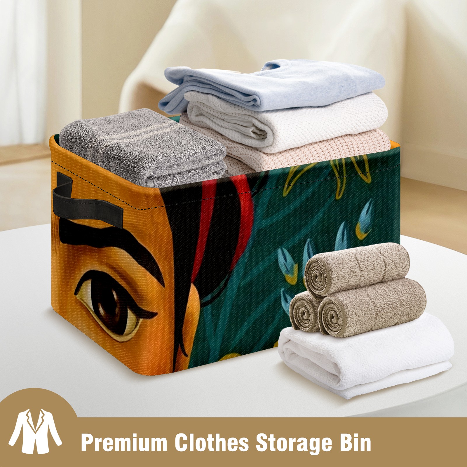 Collapsible 600D Oxford Storage Basket with Frida Kahlo Mexico Art - Metal Frame 10"x14"x8" Reinforced Handles, Multi-Purpose Organizer
