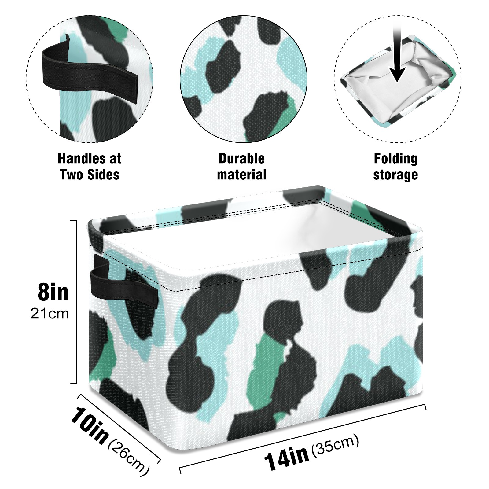Collapsible 600D Oxford Storage Basket with Leopard Skin Pattern Abstract - Metal Frame 10"x14"x8" Reinforced Handles, Multi-Purpose Organizer