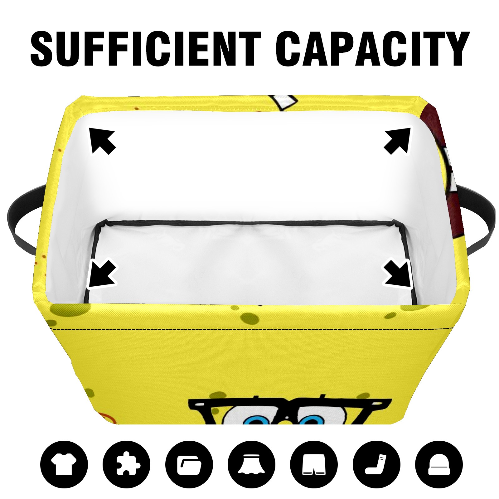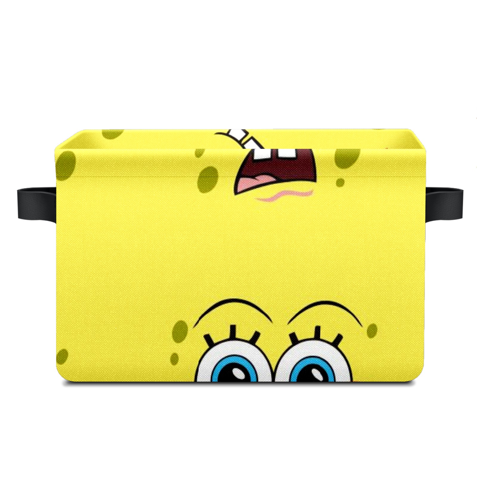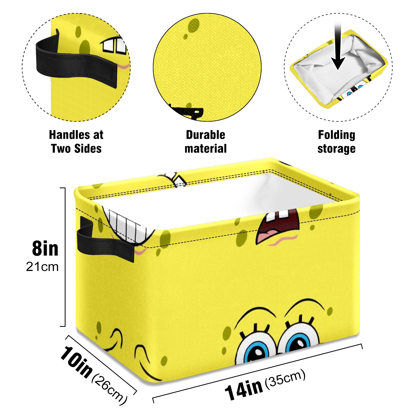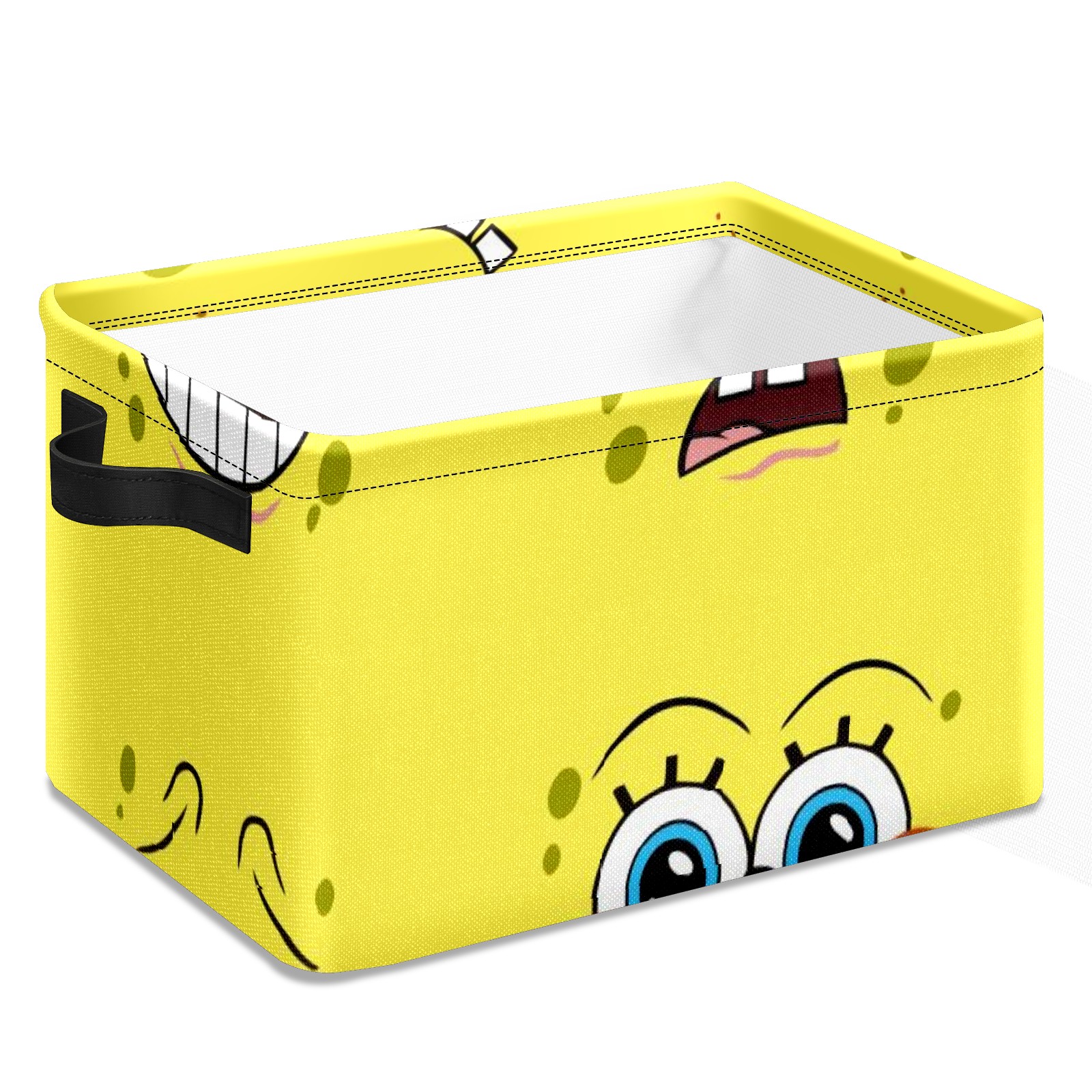 Collapsible 600D Oxford Storage Basket with Spongebob Expression Cartoons - Metal Frame 10"x14"x8" Reinforced Handles, Multi-Purpose Organizer