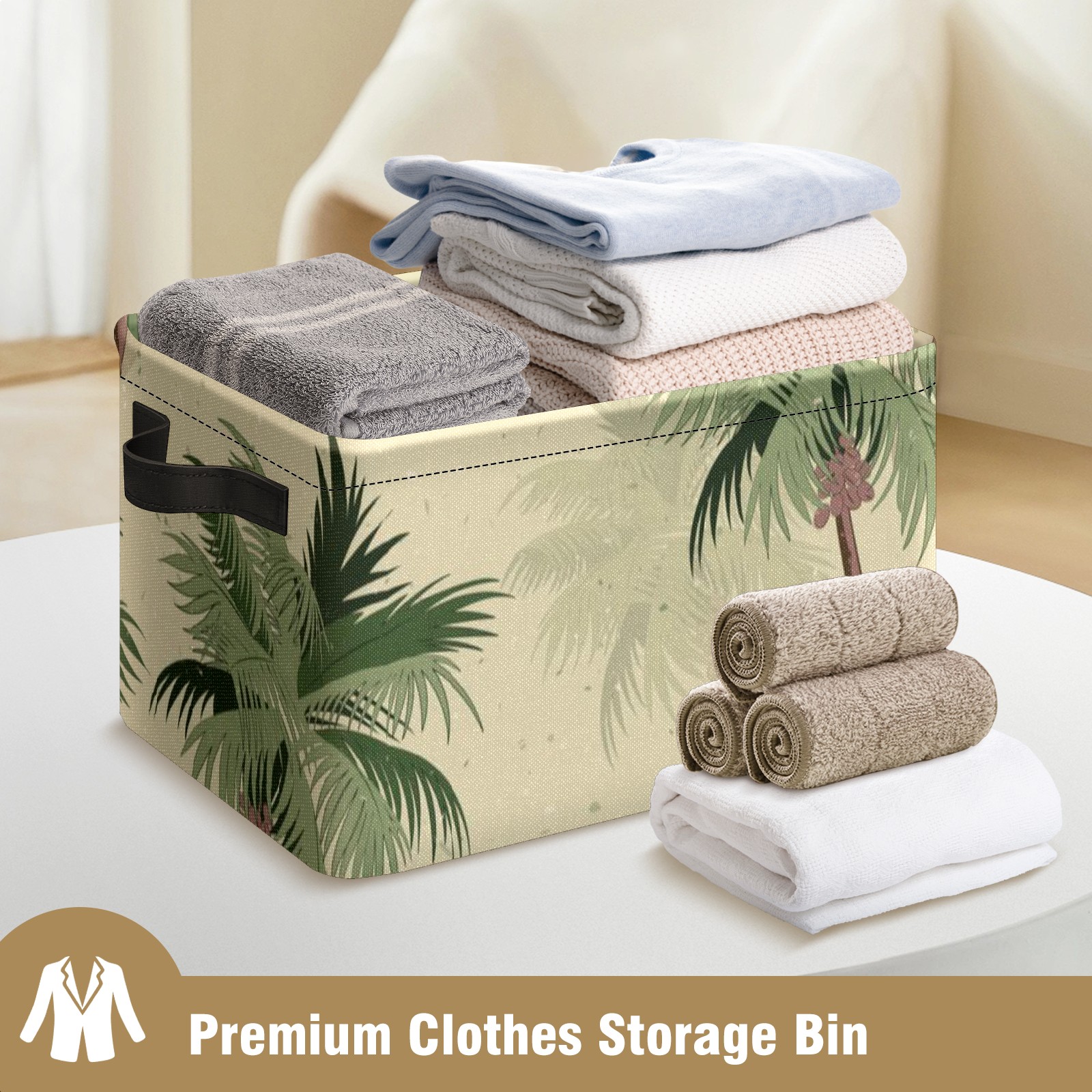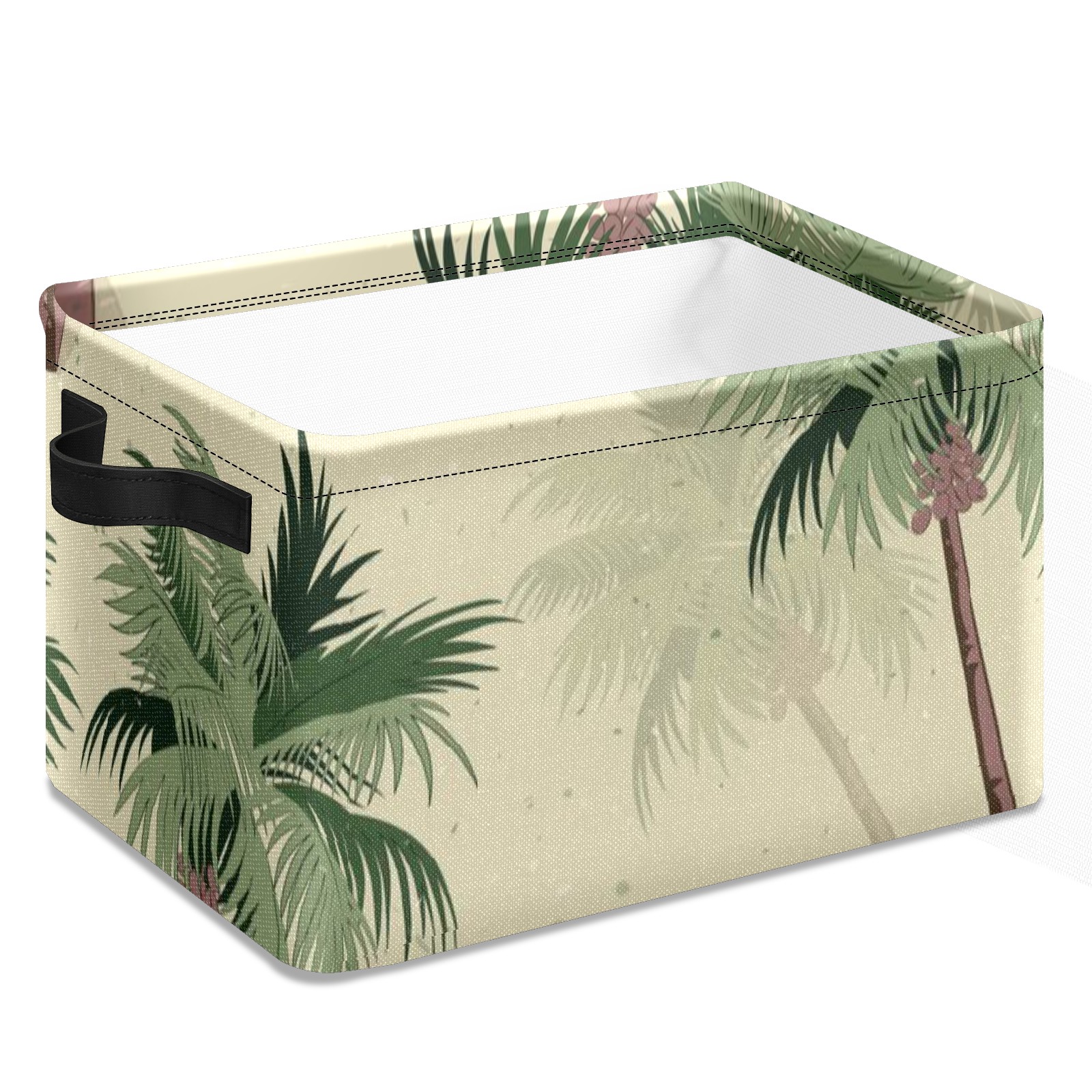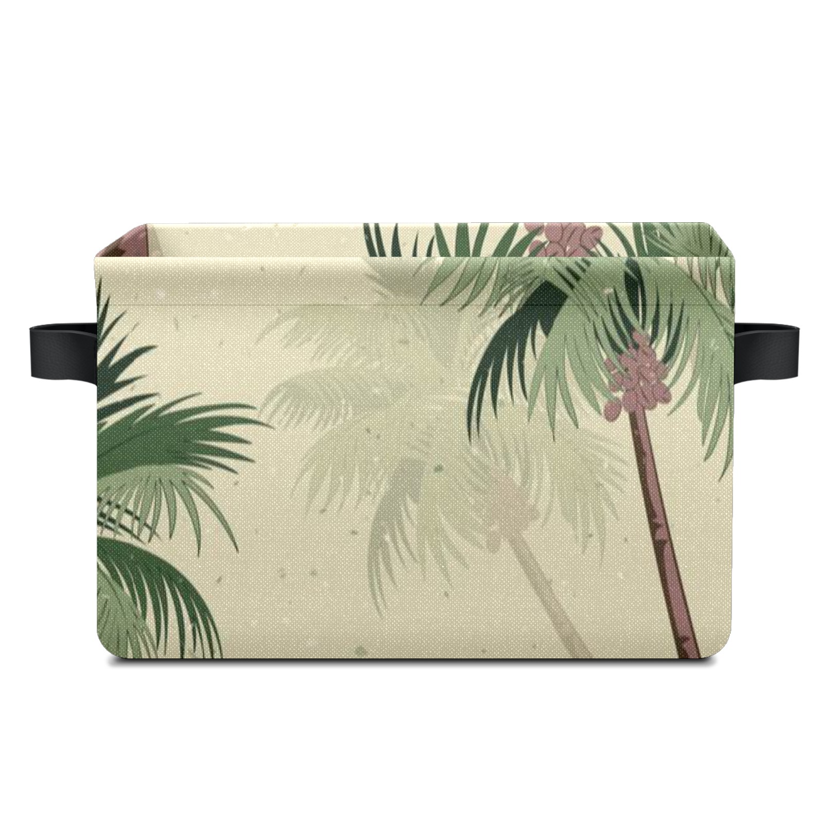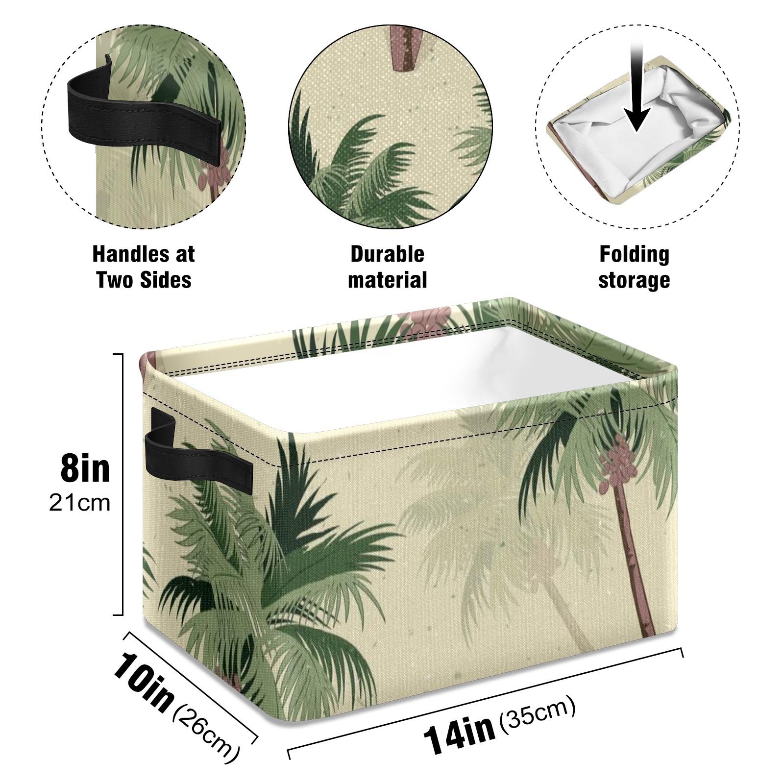 Collapsible 600D Oxford Storage Basket with Vintage Green Palm Trees - Metal Frame 10"x14"x8" Reinforced Handles, Multi-Purpose Organizer