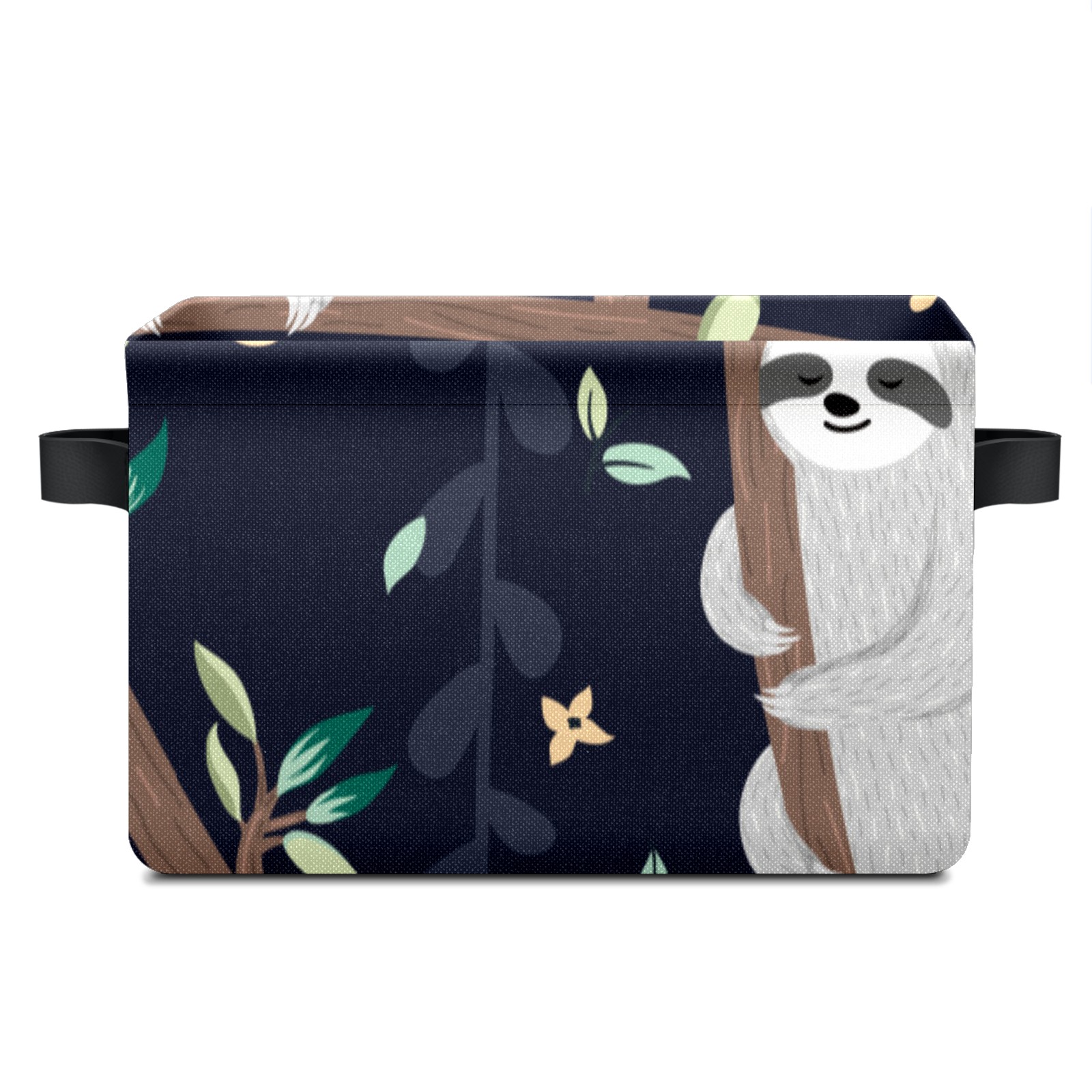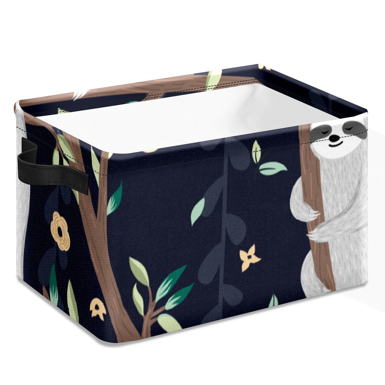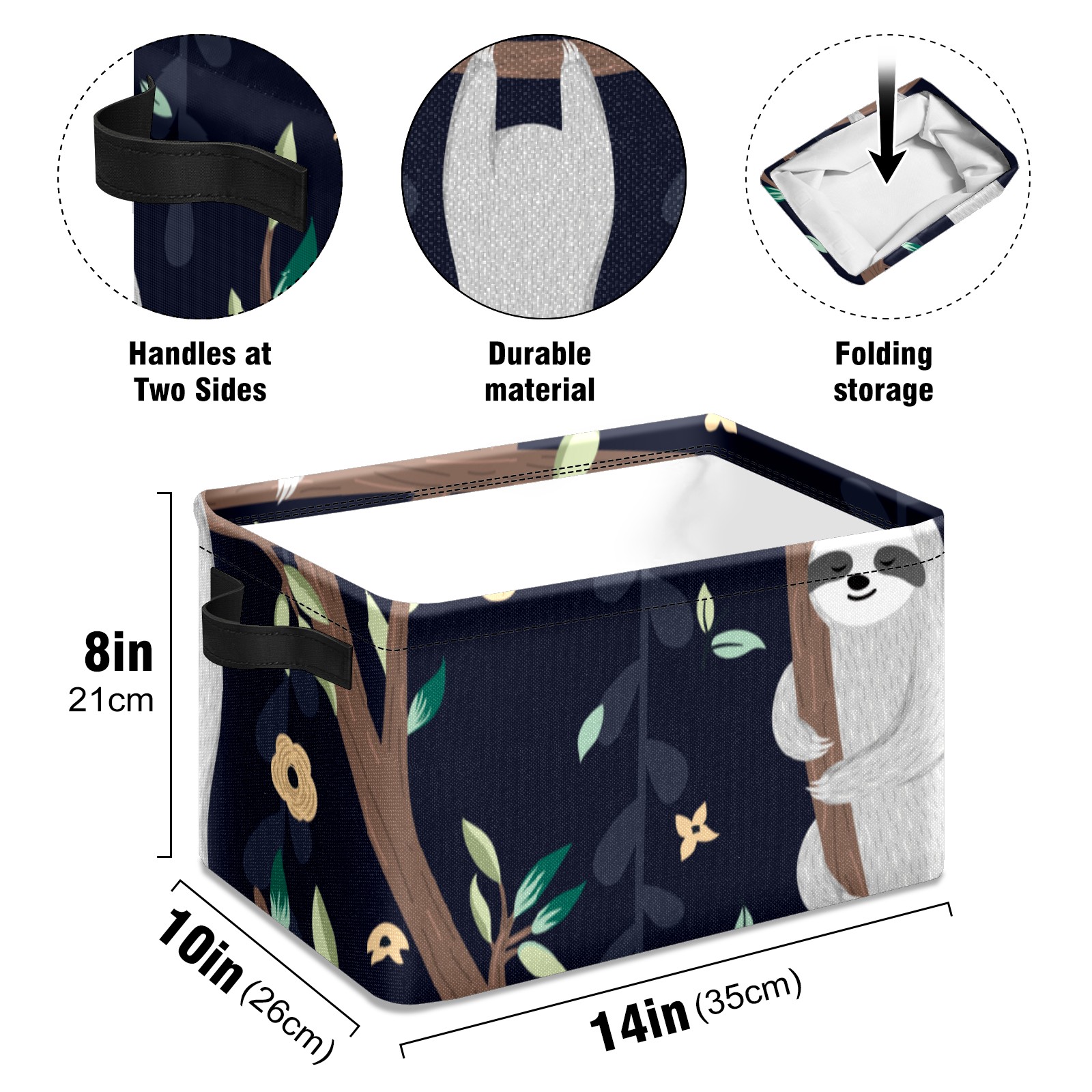 Collapsible 600D Oxford Storage Basket with Cute Baby Sloths - Metal Frame 10"x14"x8" Reinforced Handles, Multi-Purpose Organizer