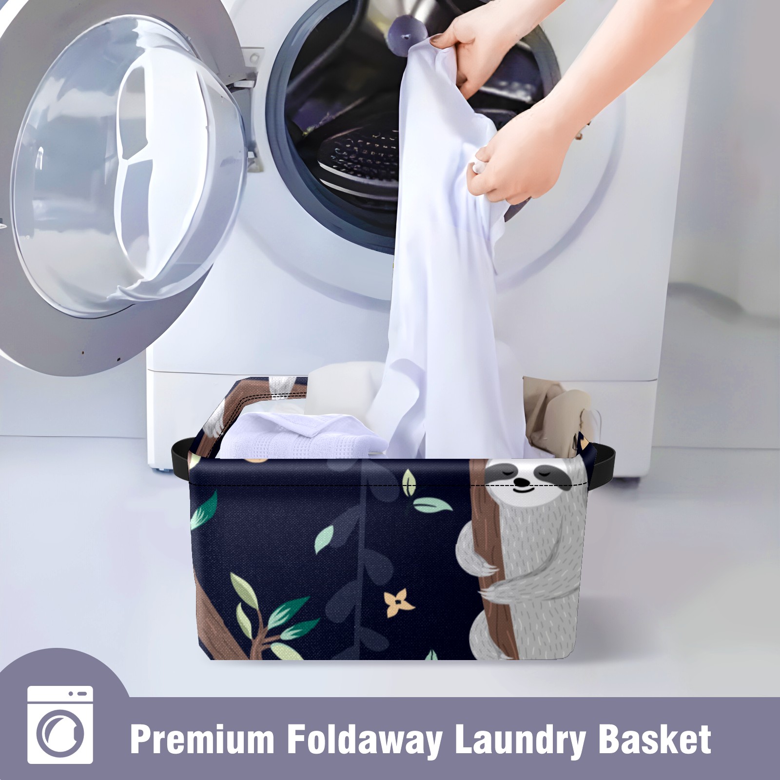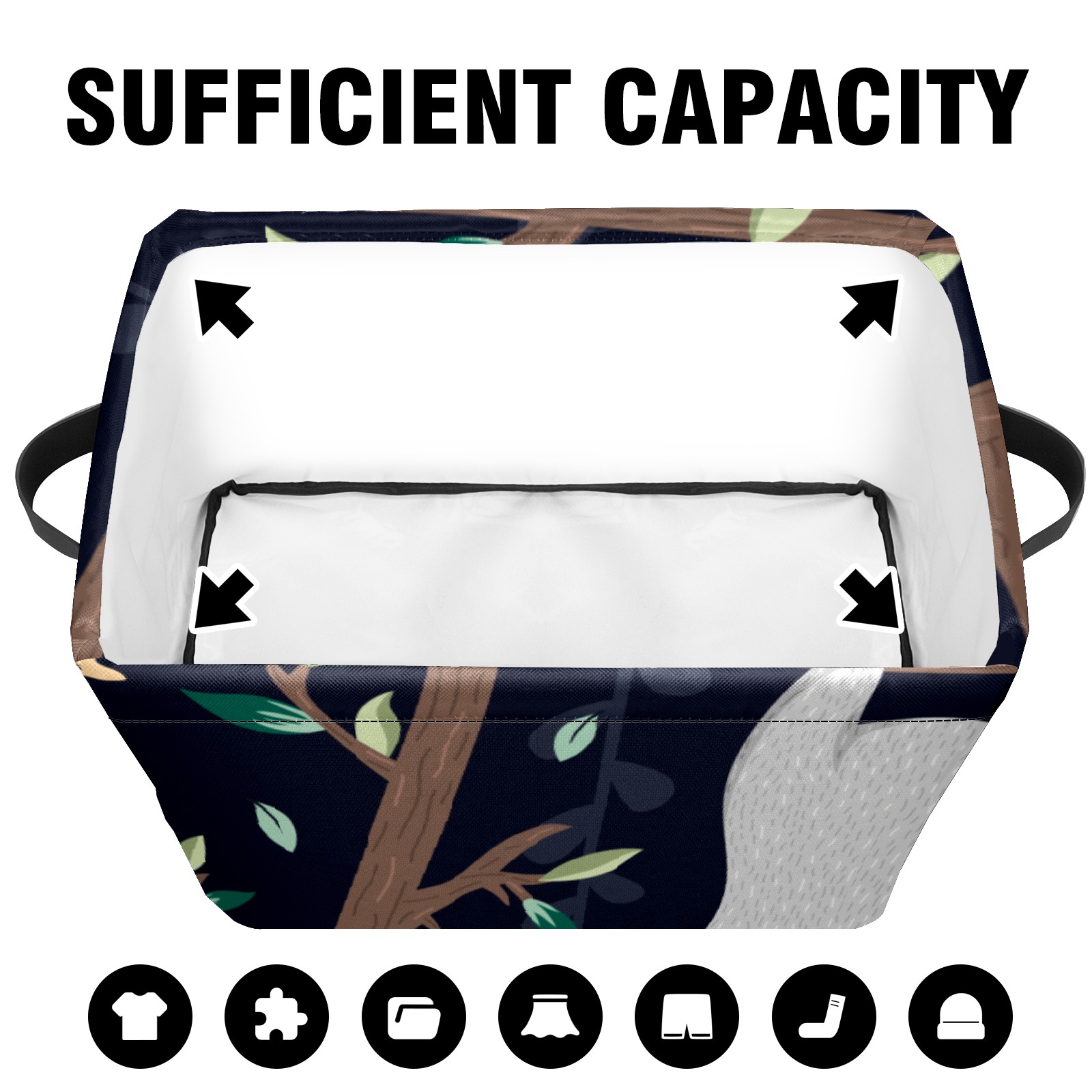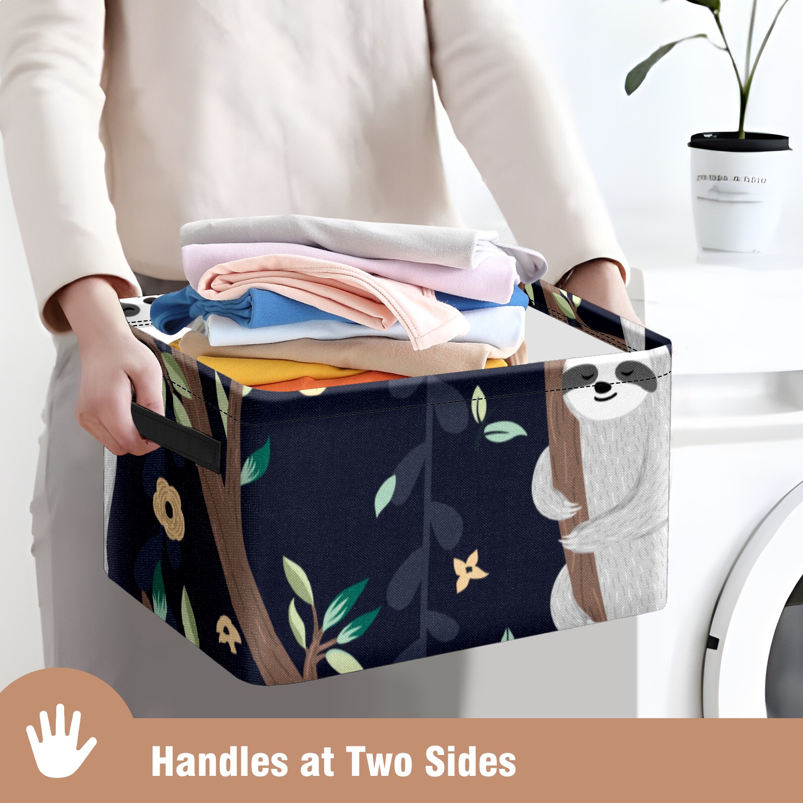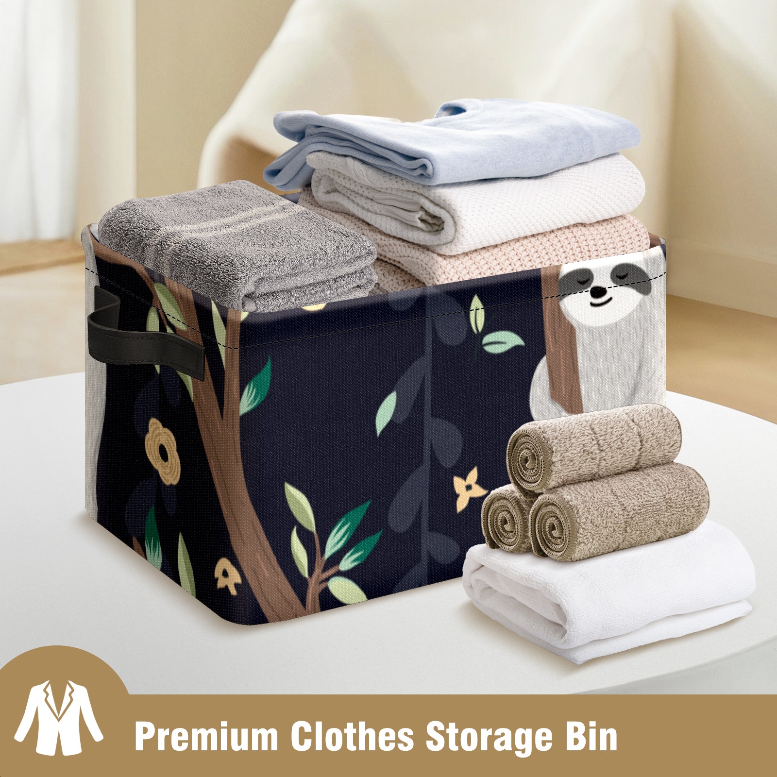 Collapsible 600D Oxford Storage Basket with Cute Baby Sloths - Metal Frame 10"x14"x8" Reinforced Handles, Multi-Purpose Organizer