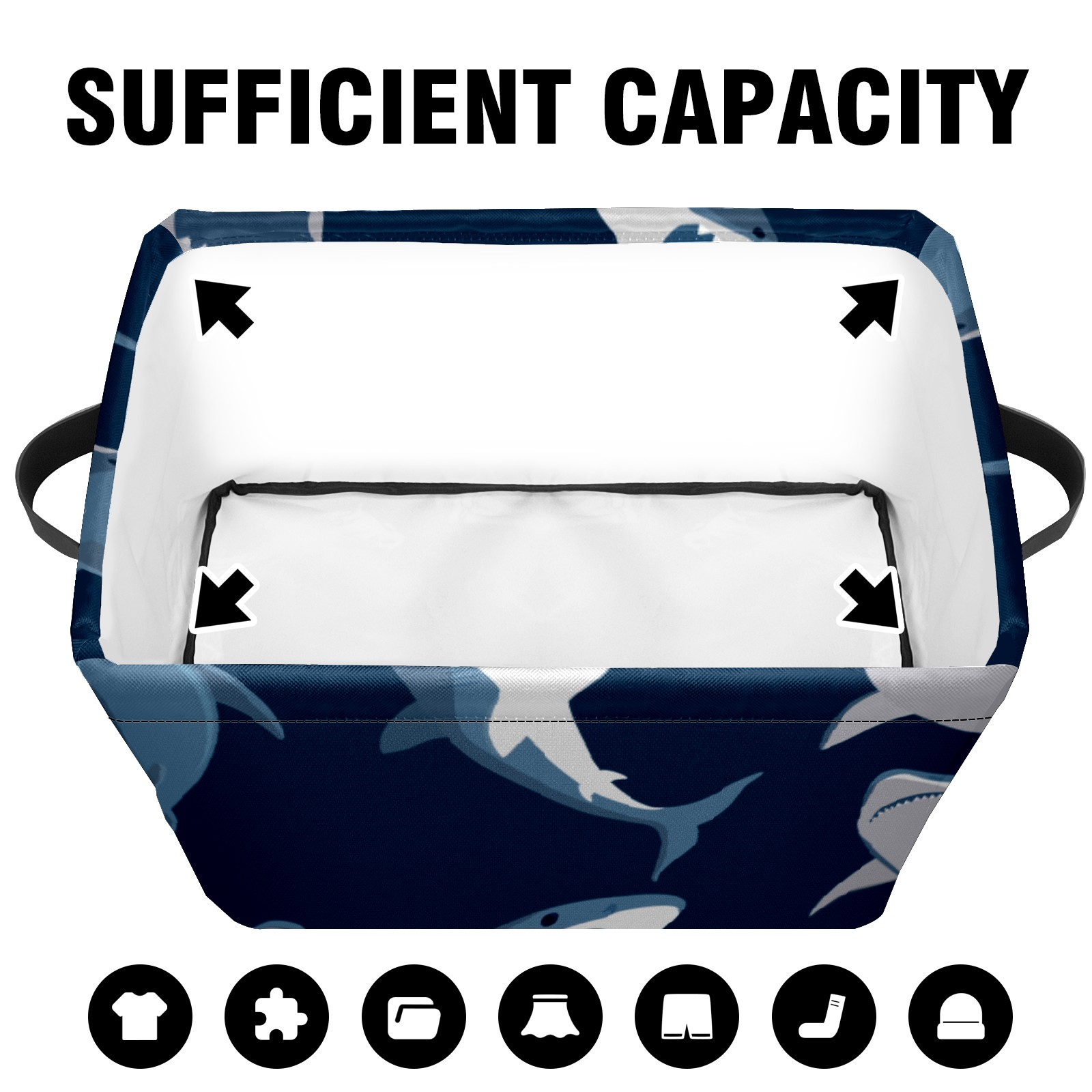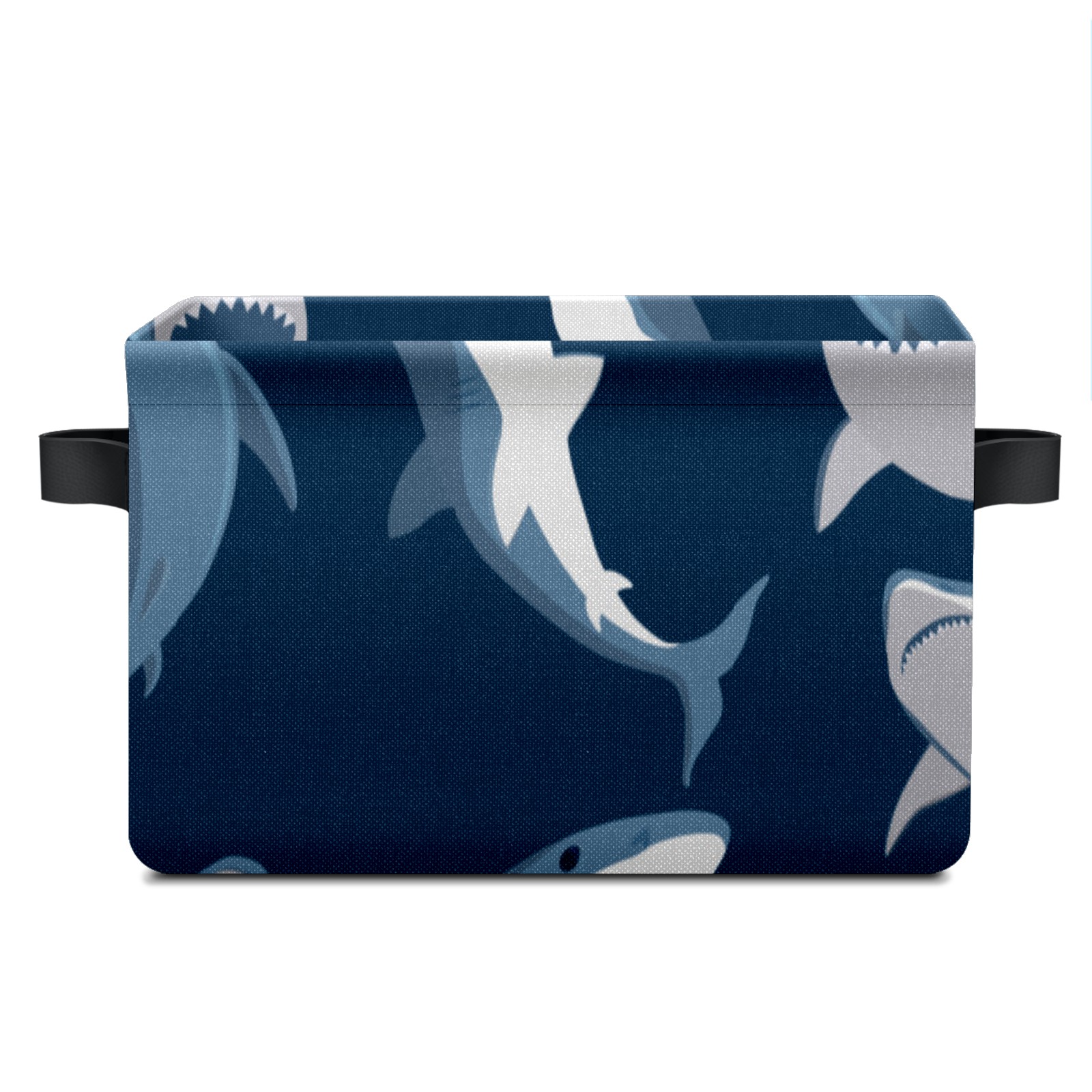 Collapsible 600D Oxford Storage Basket with Ocean Shark Pattern - Metal Frame 10"x14"x8" Reinforced Handles, Multi-Purpose Organizer