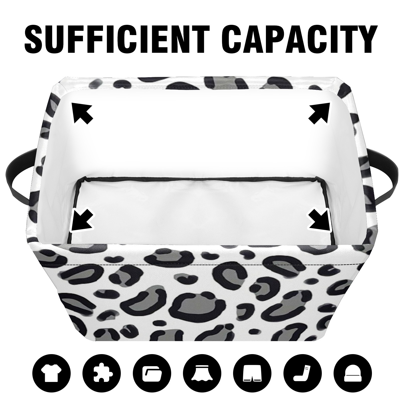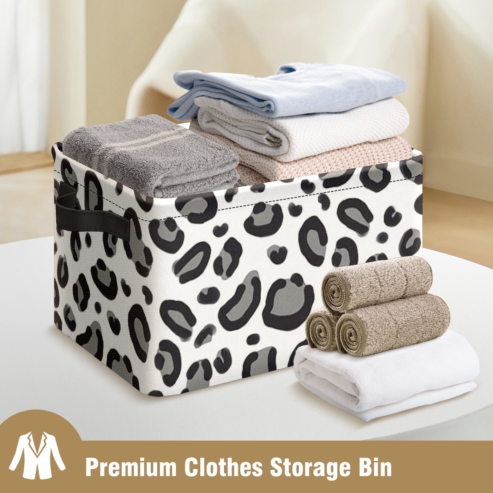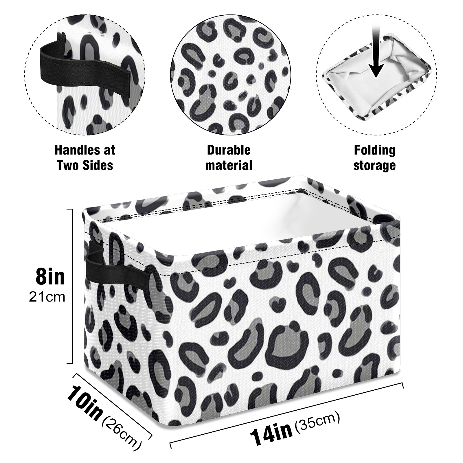 Collapsible 600D Oxford Storage Basket with Cheetah Pattern Animal Spots - Metal Frame 10"x14"x8" Reinforced Handles, Multi-Purpose Organizer