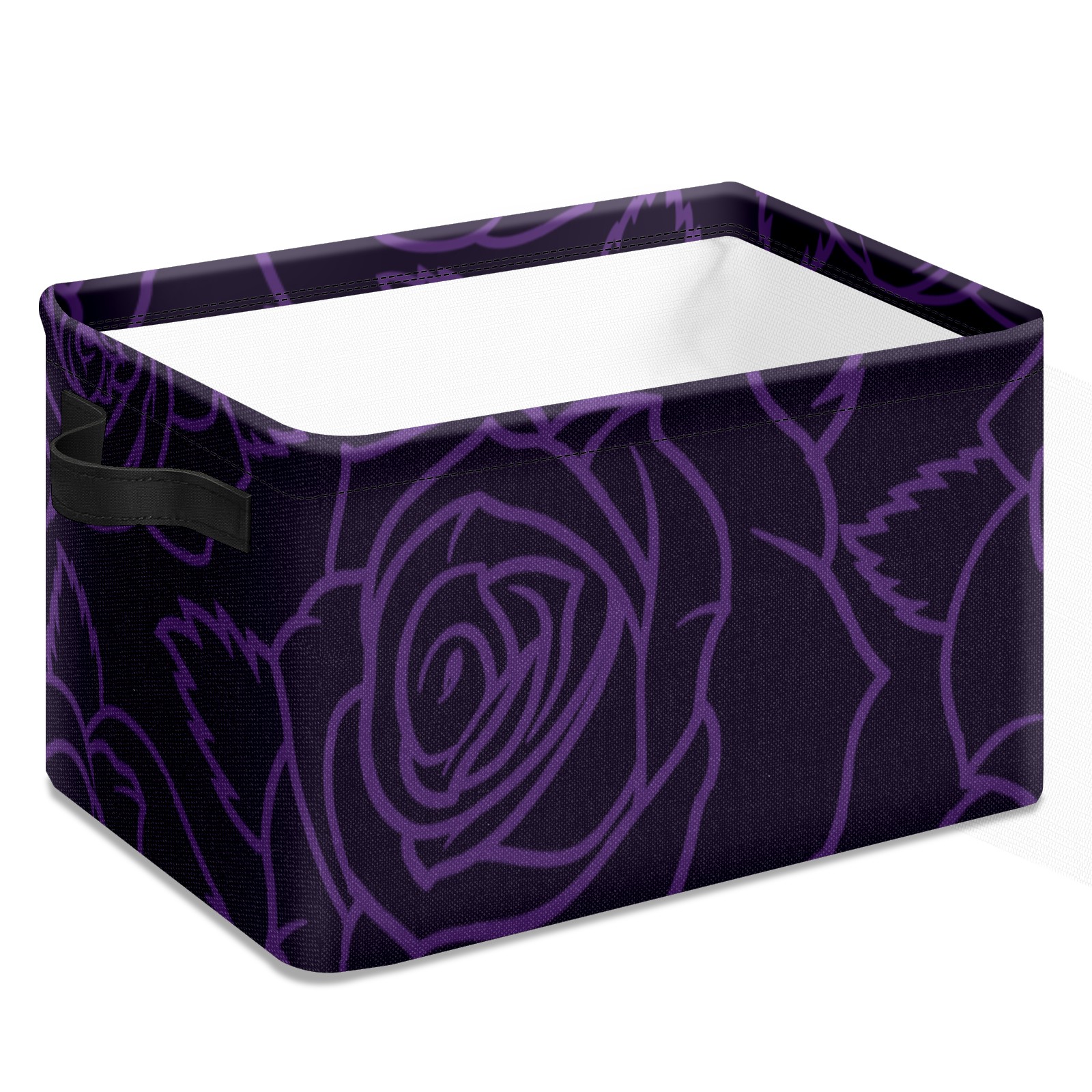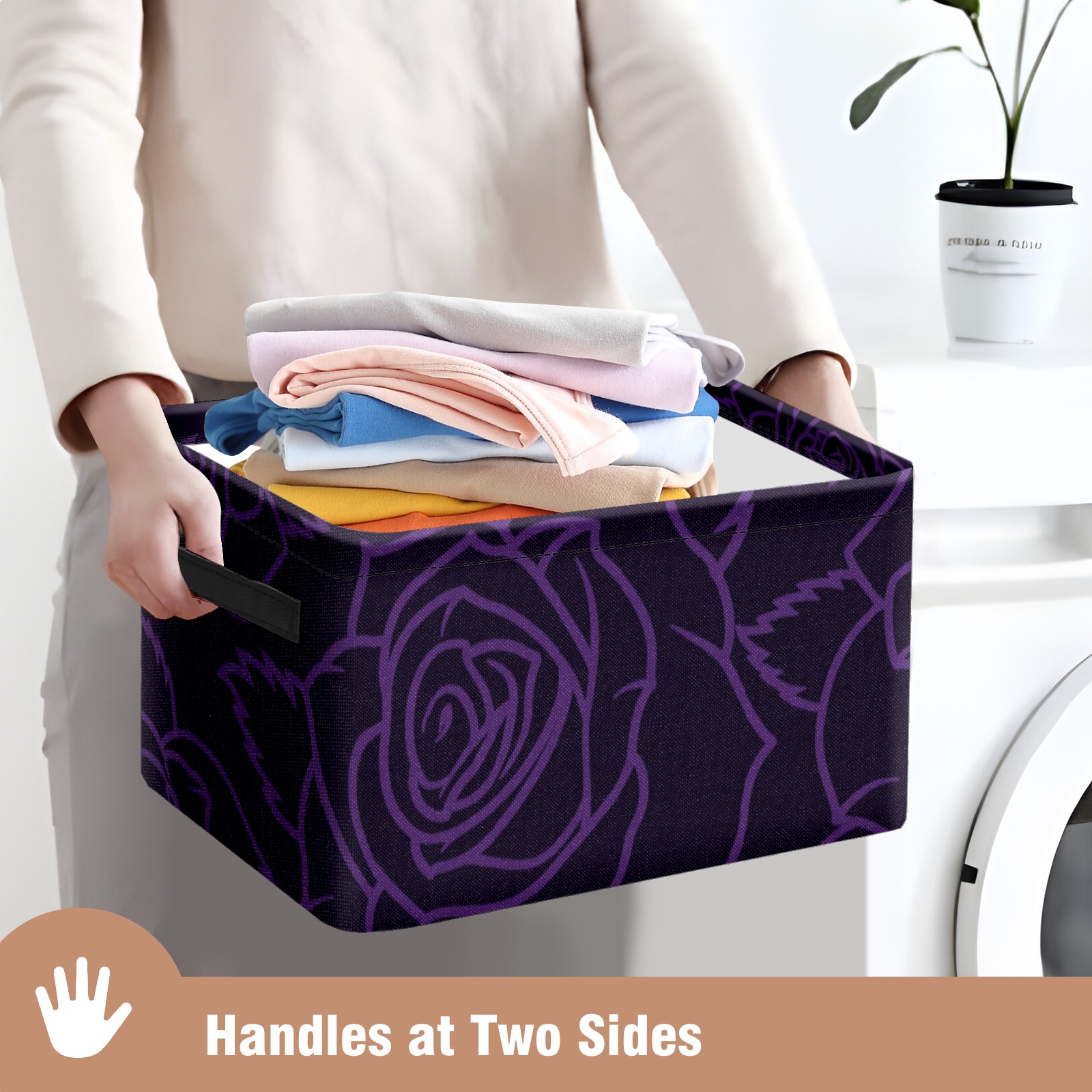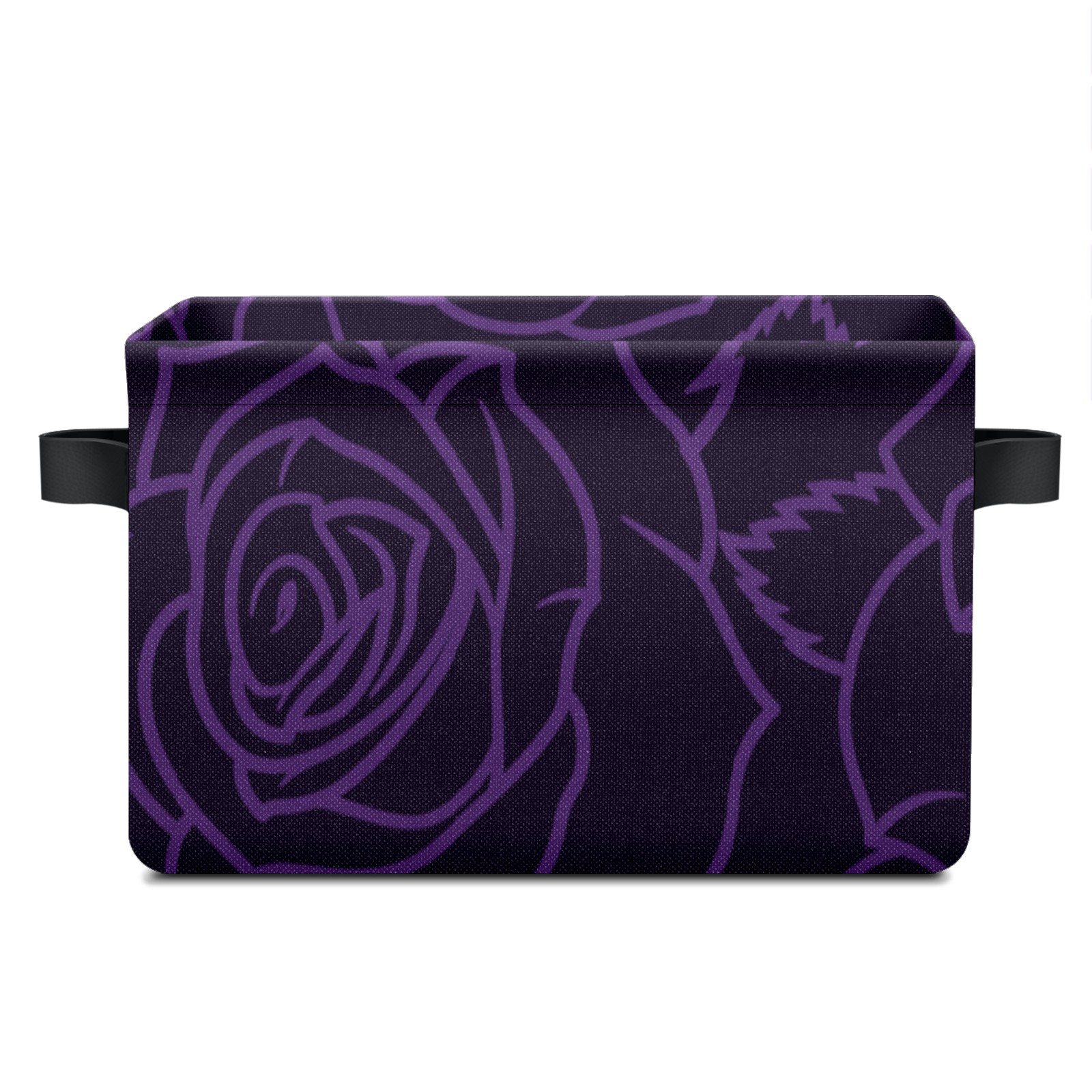 Collapsible 600D Oxford Storage Basket with Purple Vintage Rose - Metal Frame 10"x14"x8" Reinforced Handles, Multi-Purpose Organizer