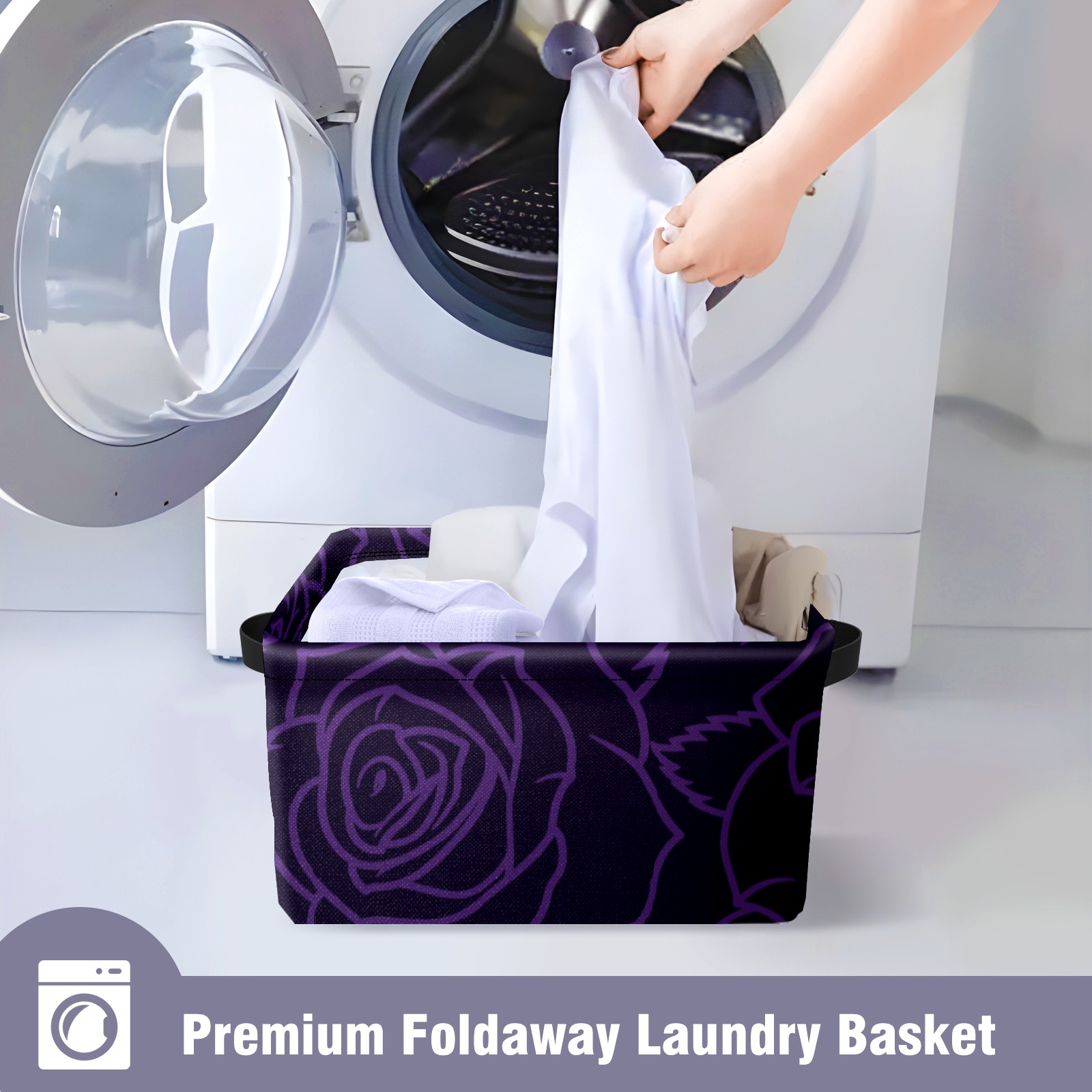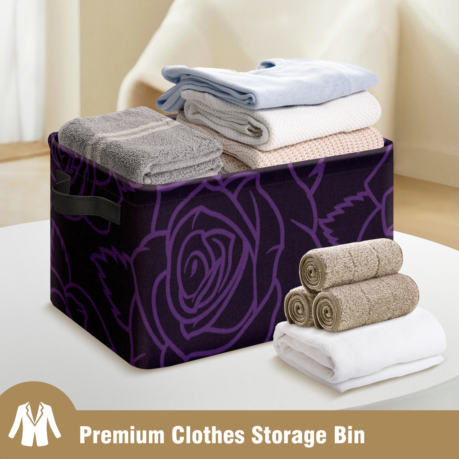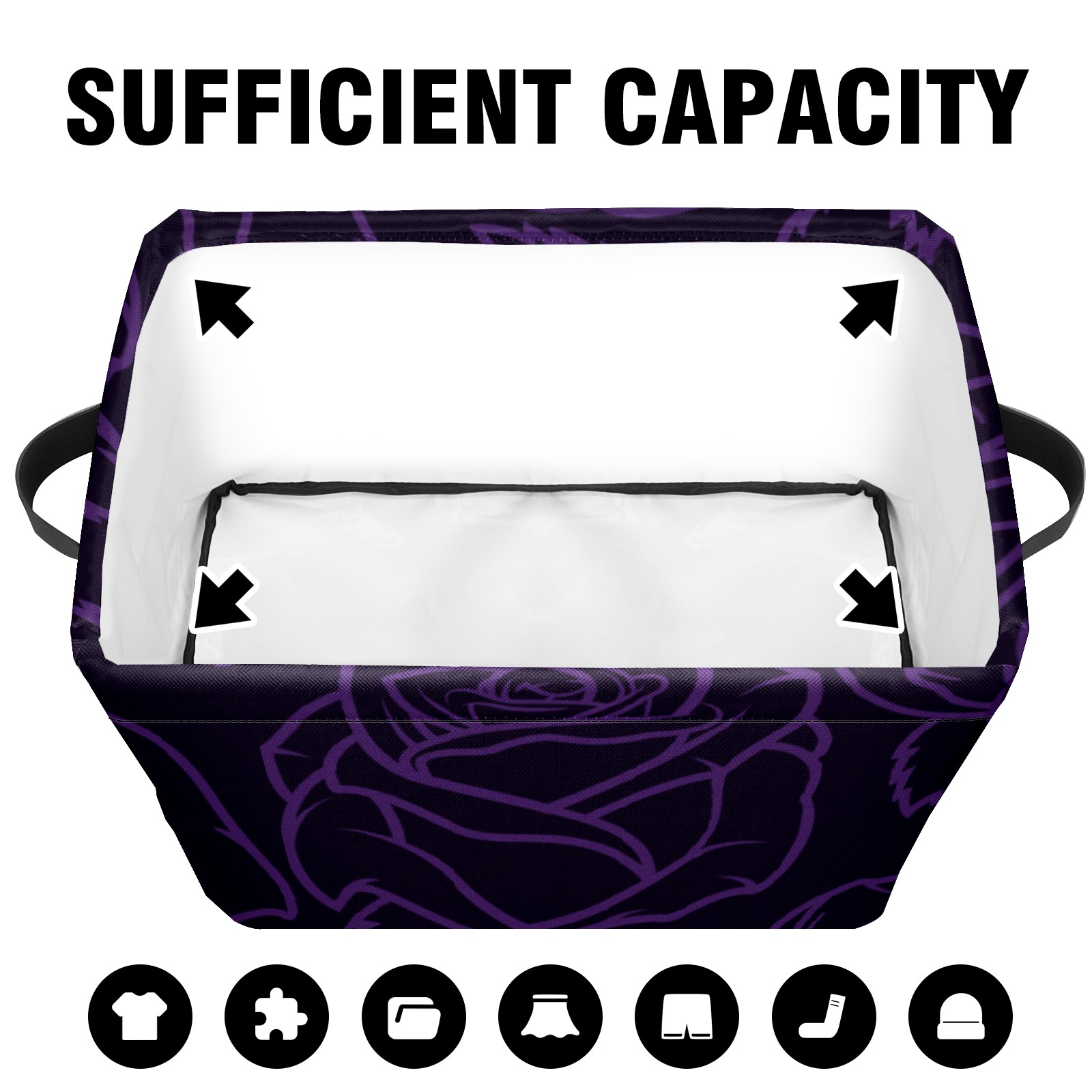 Collapsible 600D Oxford Storage Basket with Purple Vintage Rose - Metal Frame 10"x14"x8" Reinforced Handles, Multi-Purpose Organizer