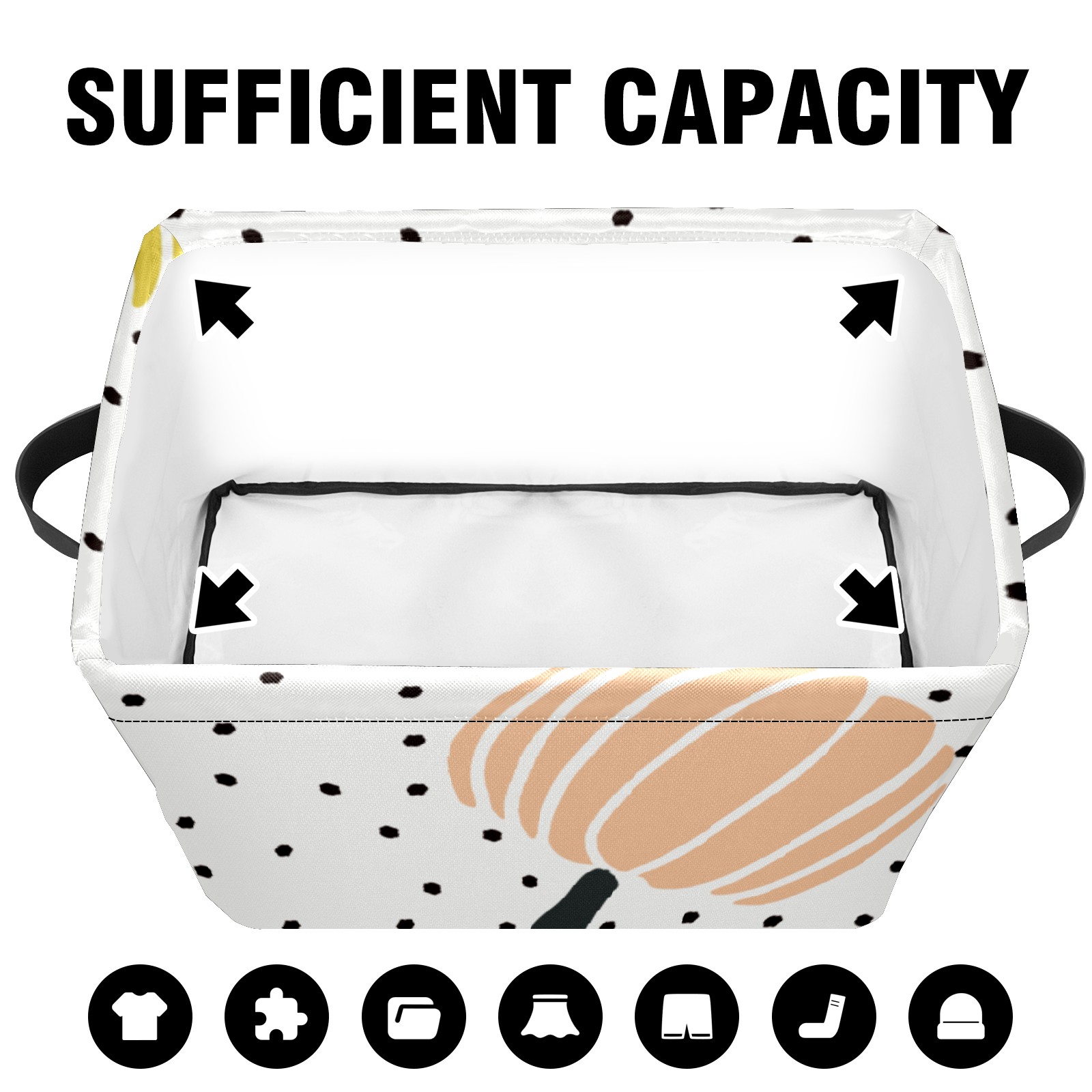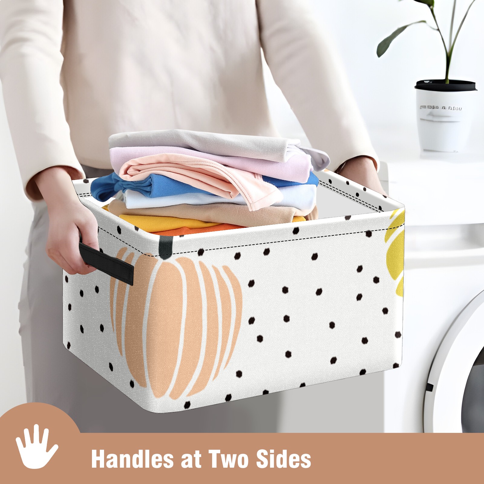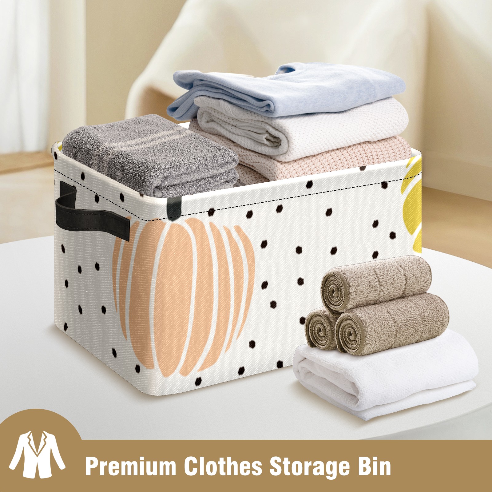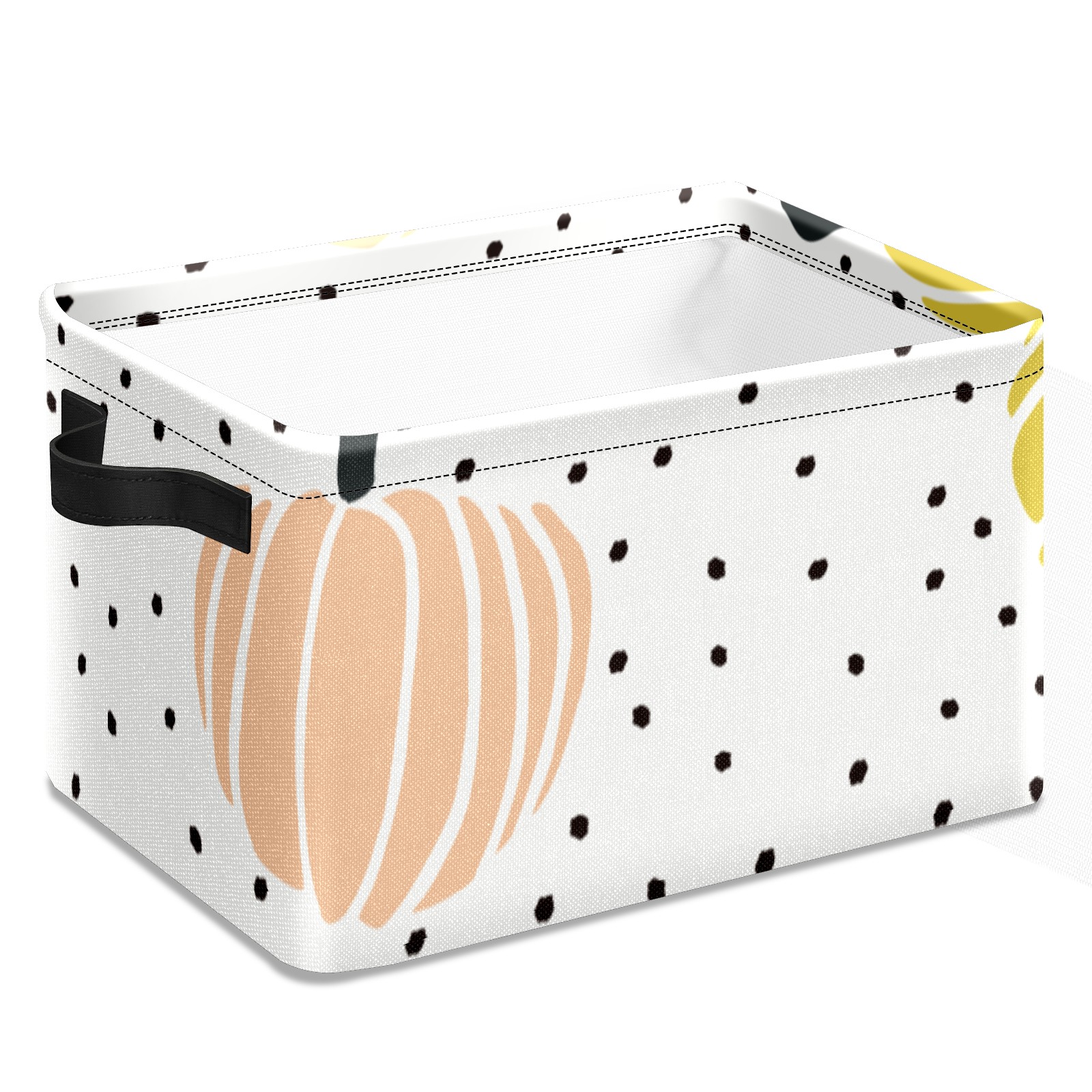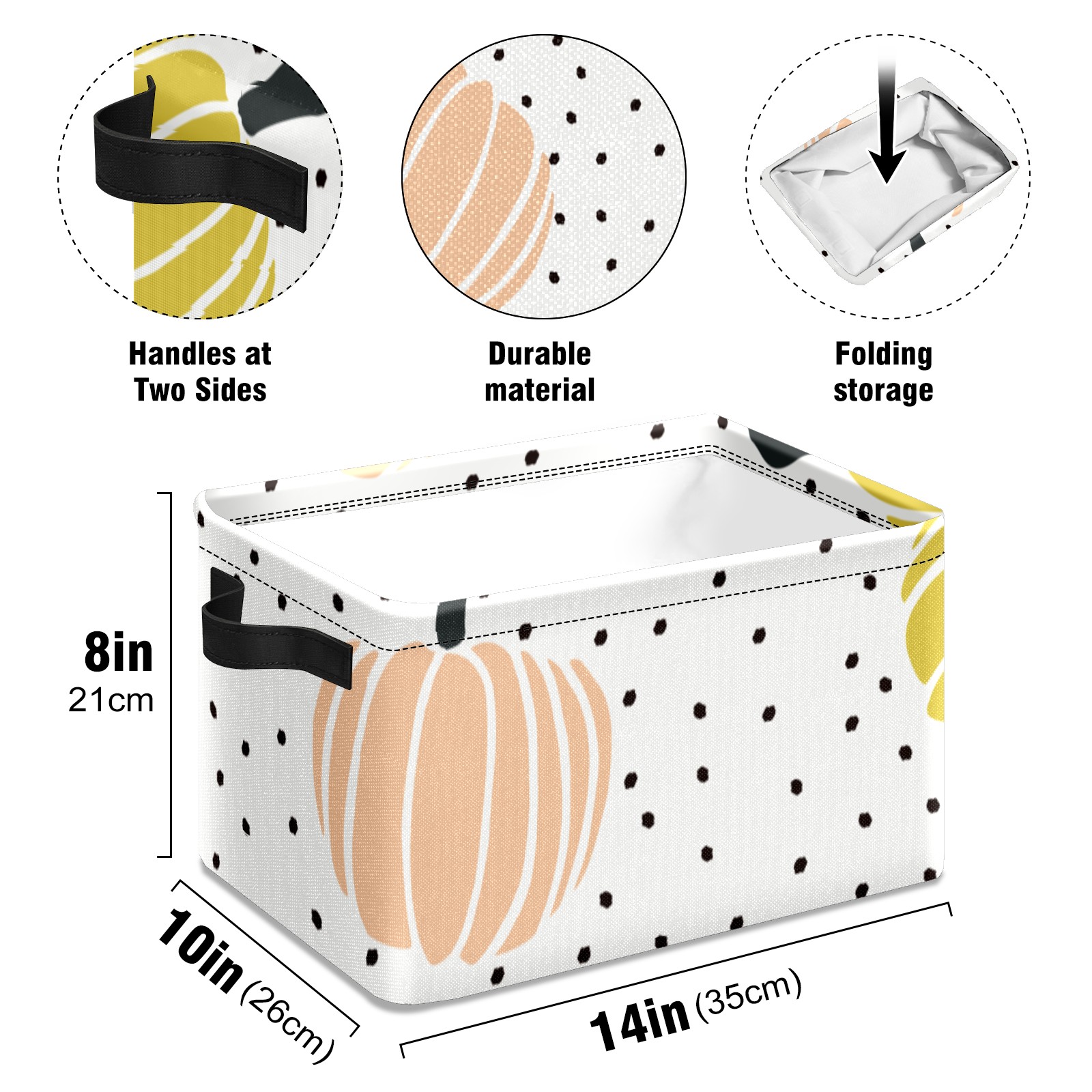 Collapsible 600D Oxford Storage Basket with Pumpkin Dot Vegetables - Metal Frame 10"x14"x8" Reinforced Handles, Multi-Purpose Organizer