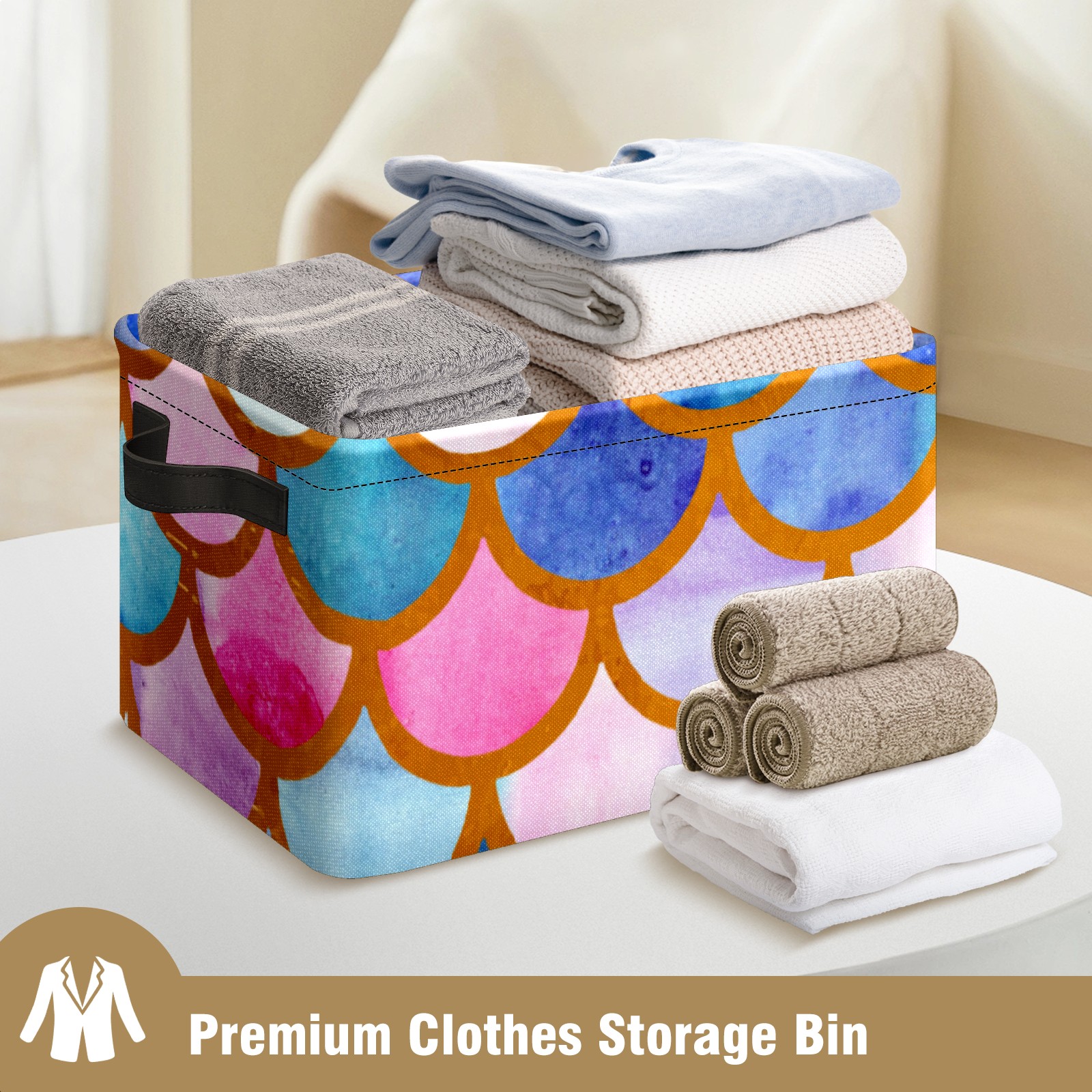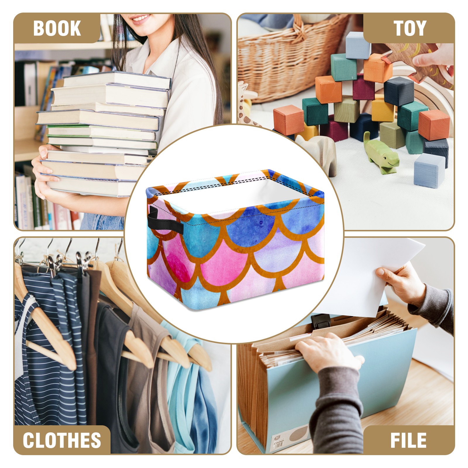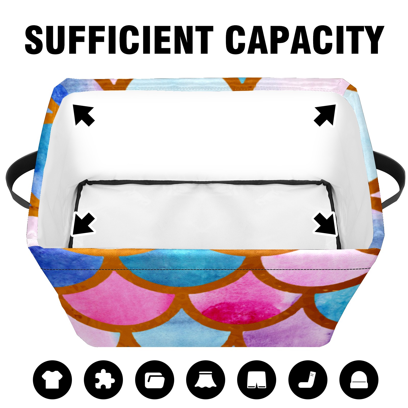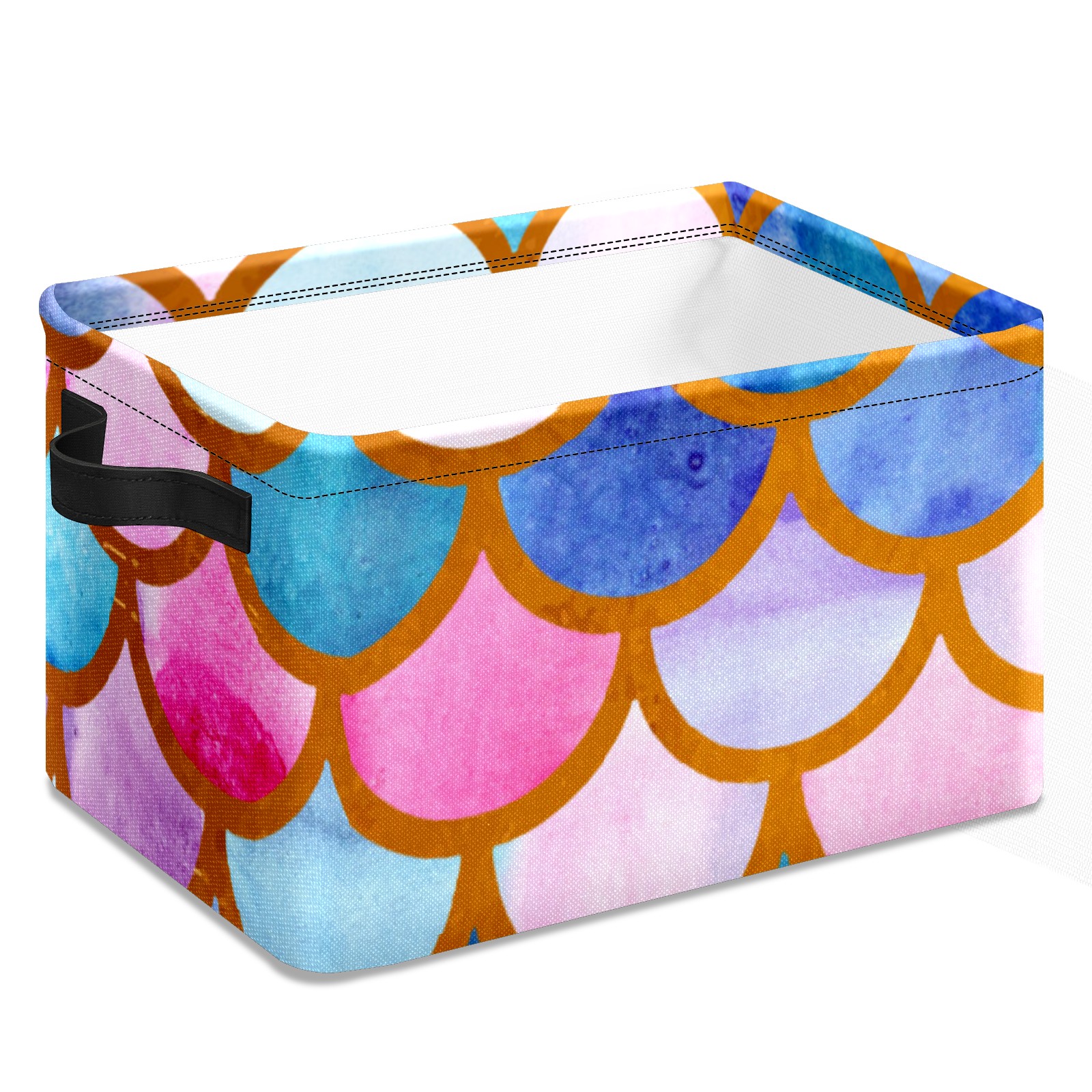 Collapsible 600D Oxford Storage Basket with Mermaid Scale Colorful - Metal Frame 10"x14"x8" Reinforced Handles, Multi-Purpose Organizer