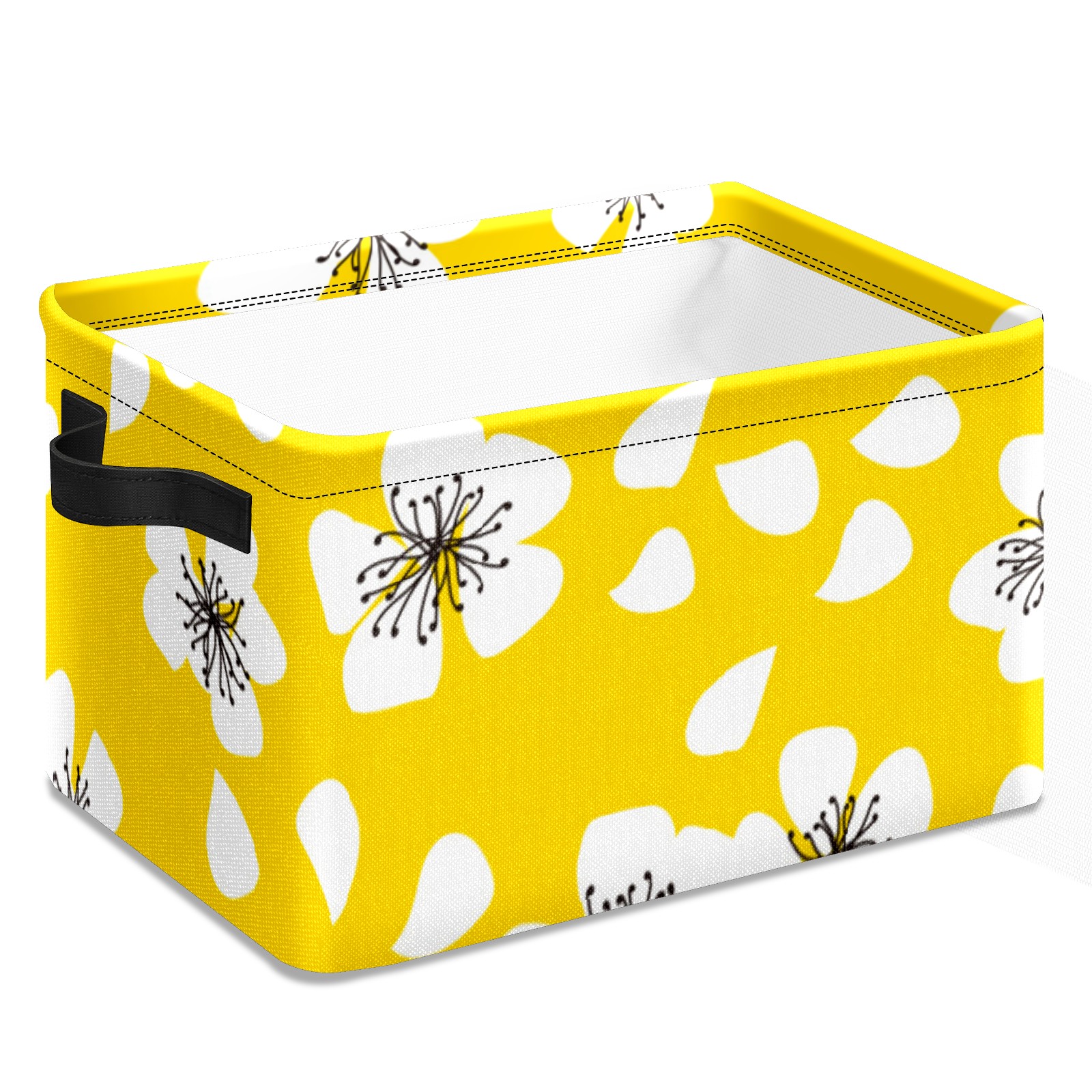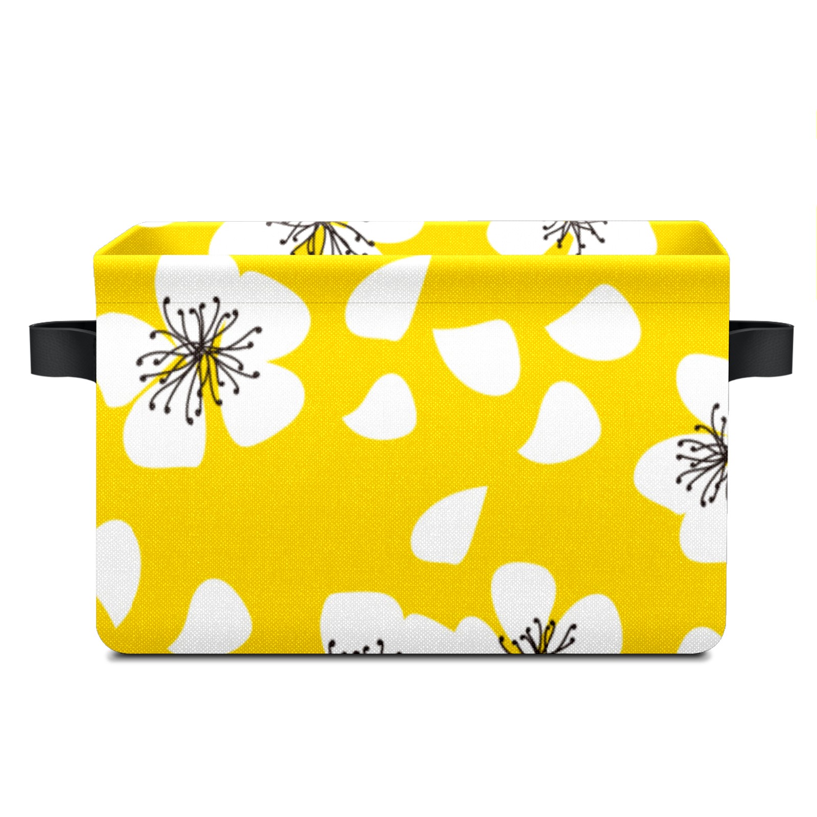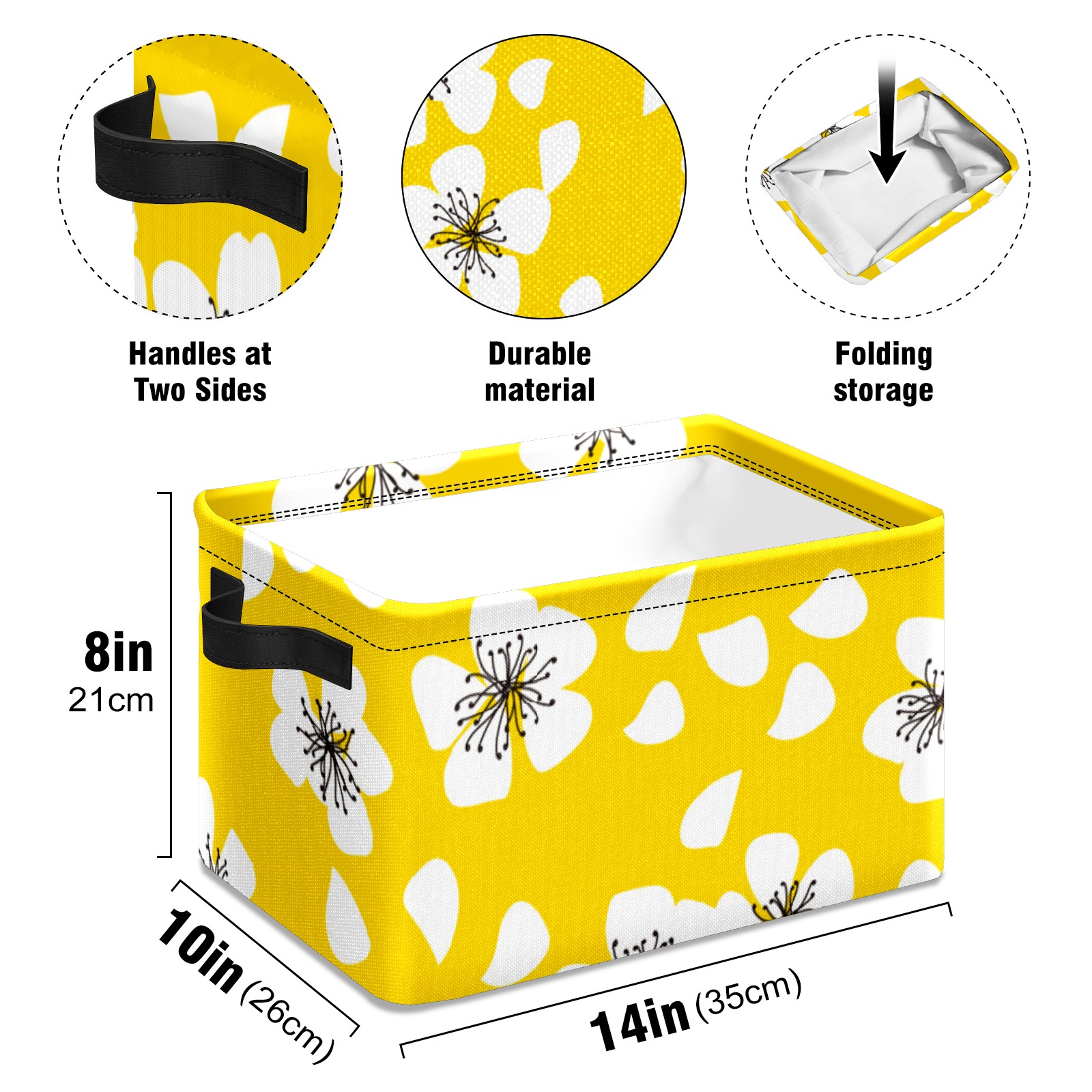 Collapsible 600D Oxford Storage Basket with Yellow Chrysanthemum Flower - Metal Frame 10"x14"x8" Reinforced Handles, Multi-Purpose Organizer