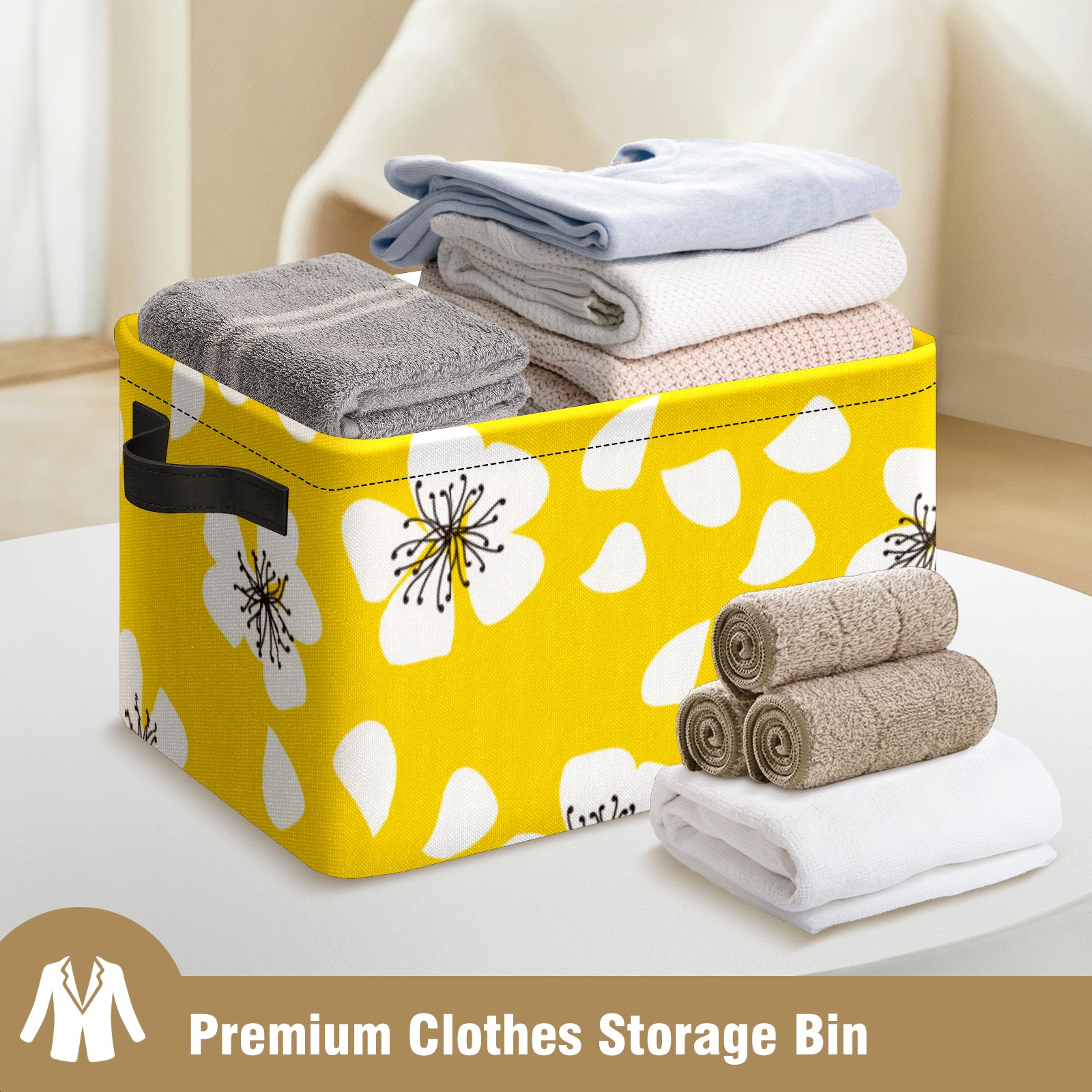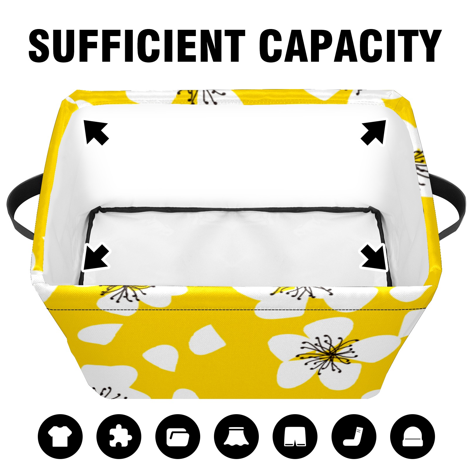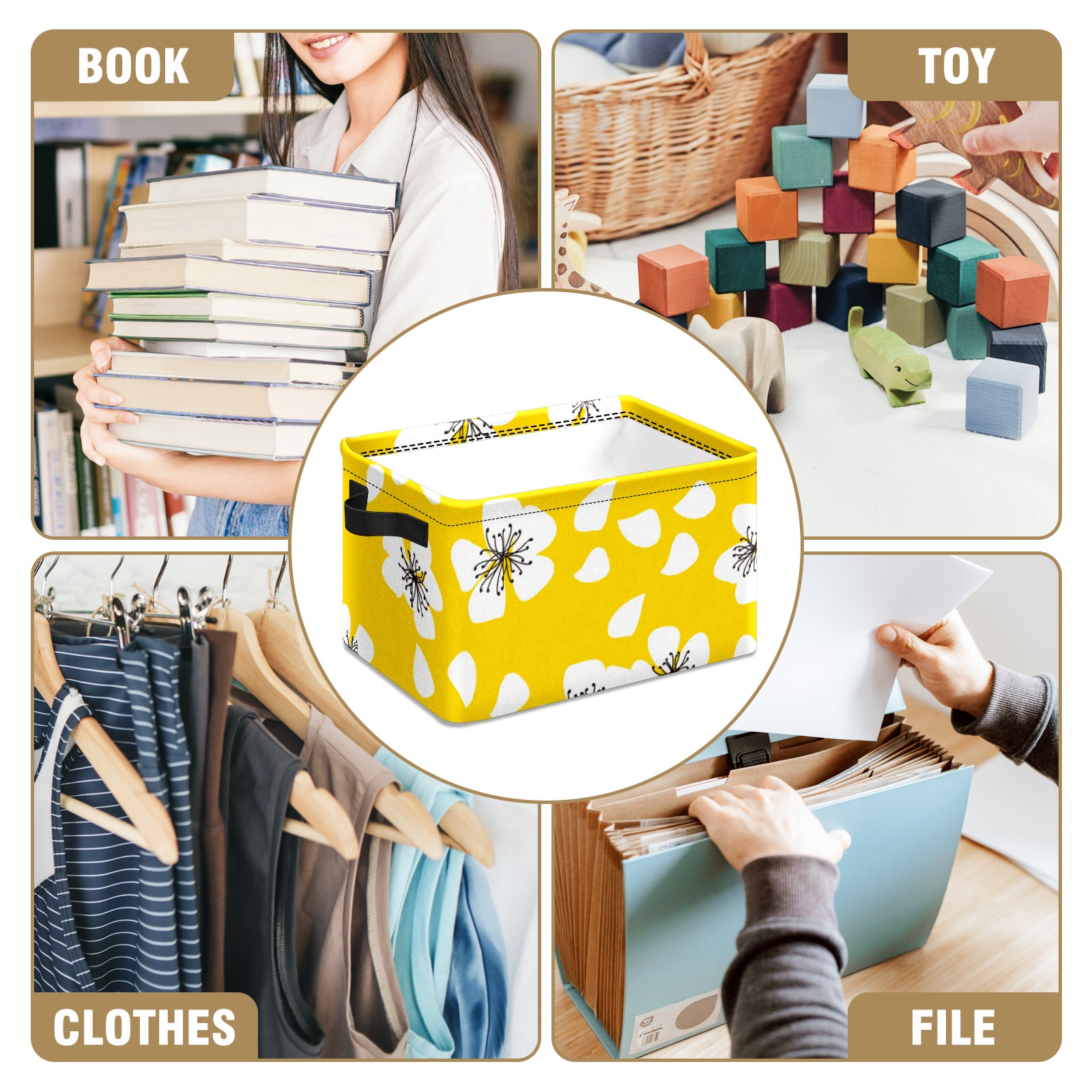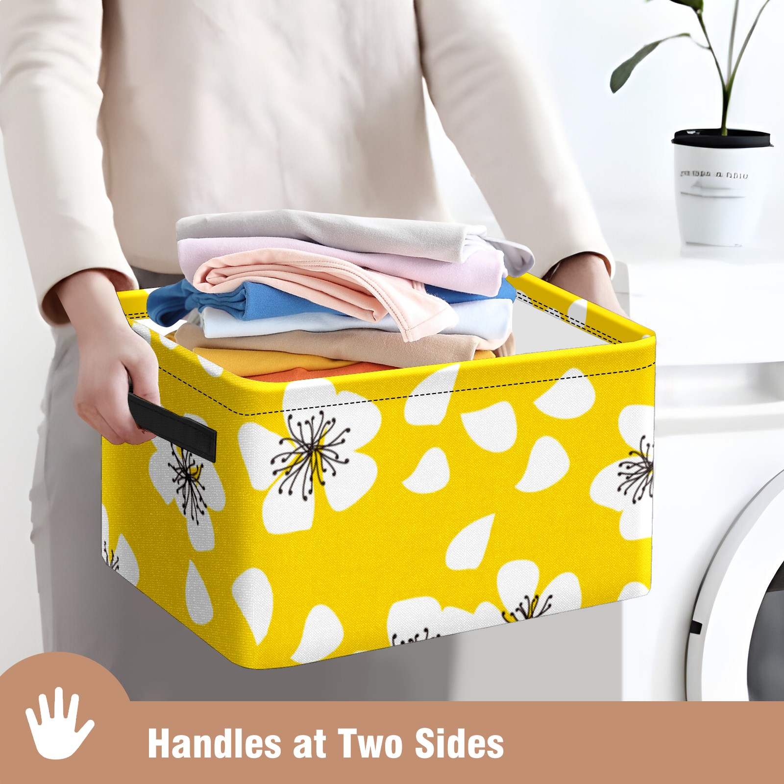Collapsible 600D Oxford Storage Basket with Yellow Chrysanthemum Flower - Metal Frame 10"x14"x8" Reinforced Handles, Multi-Purpose Organizer