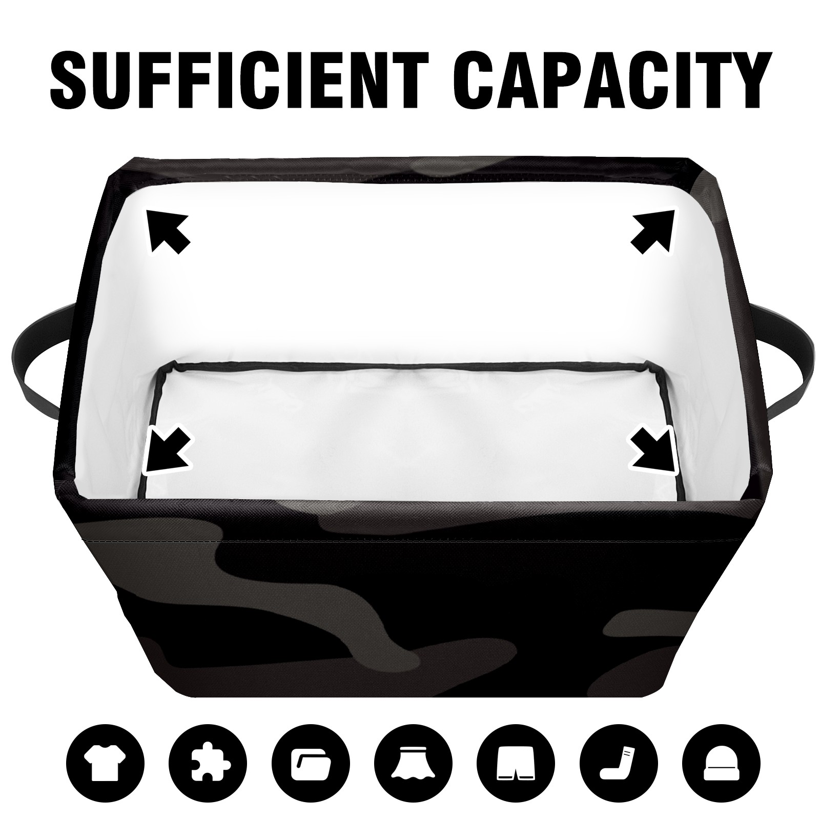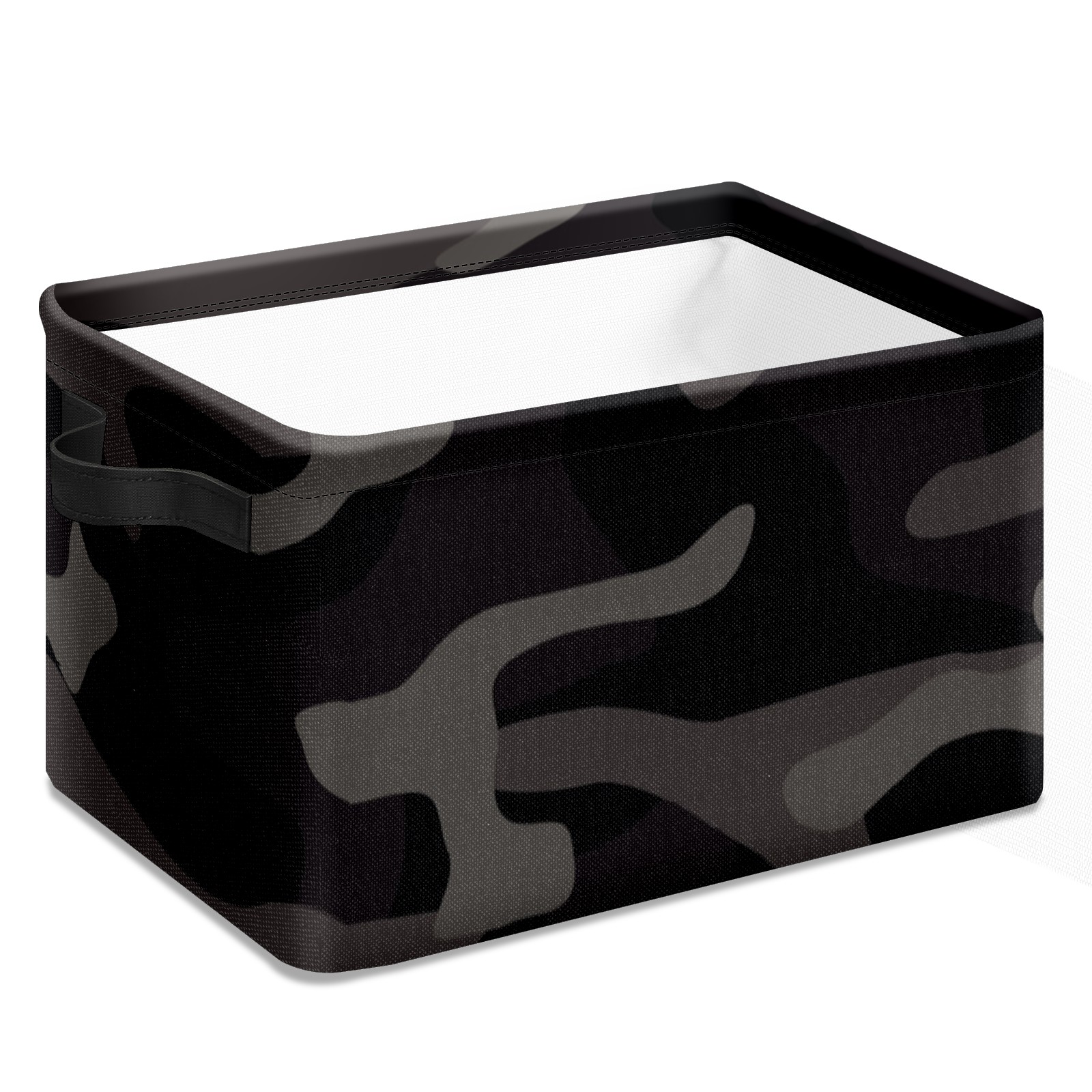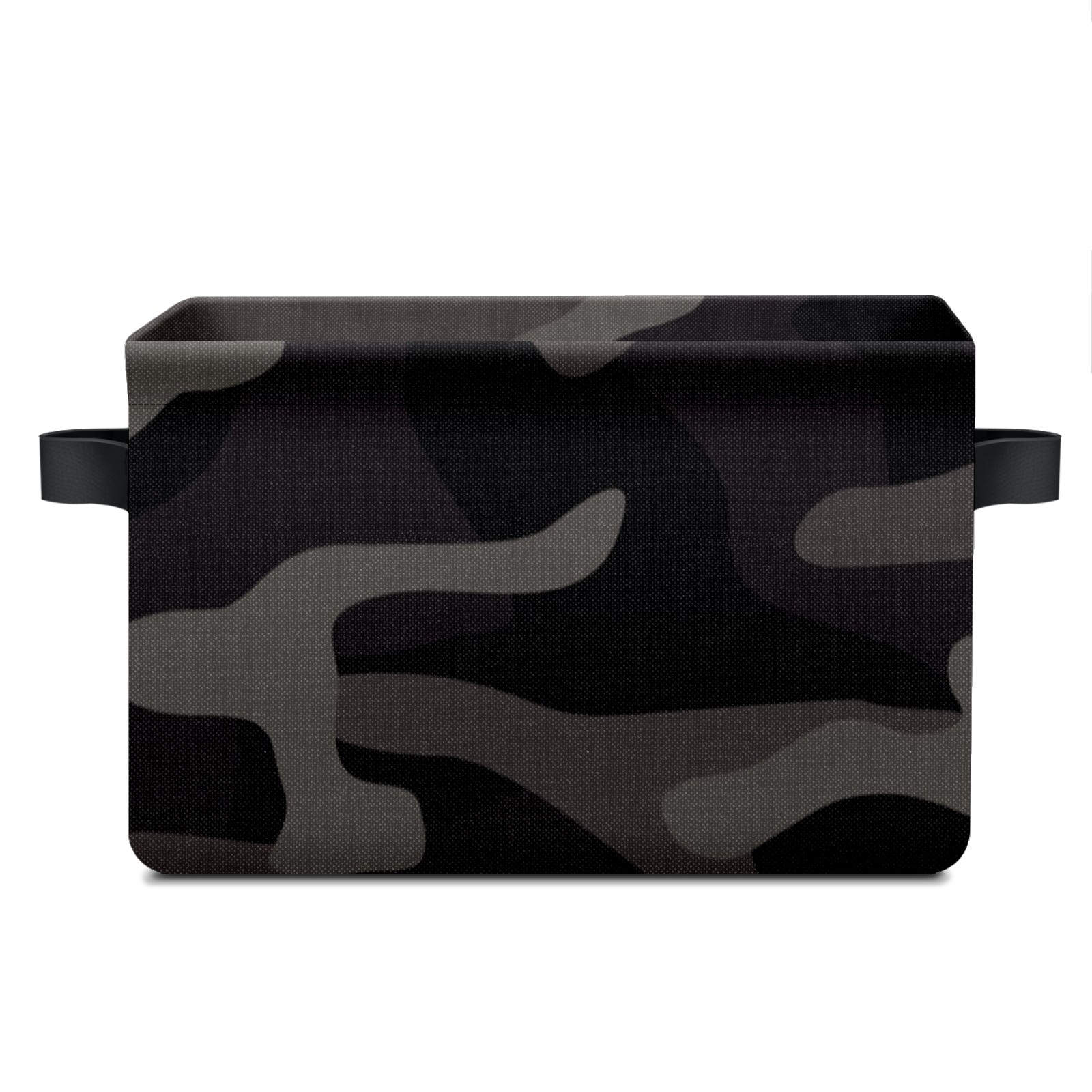 Collapsible 600D Oxford Storage Basket with Dark Grey Camouflage Seamless Pattern - Metal Frame 10"x14"x8" Reinforced Handles, Multi-Purpose Organizer