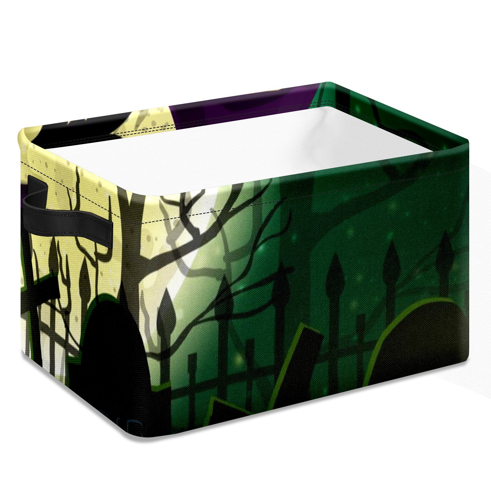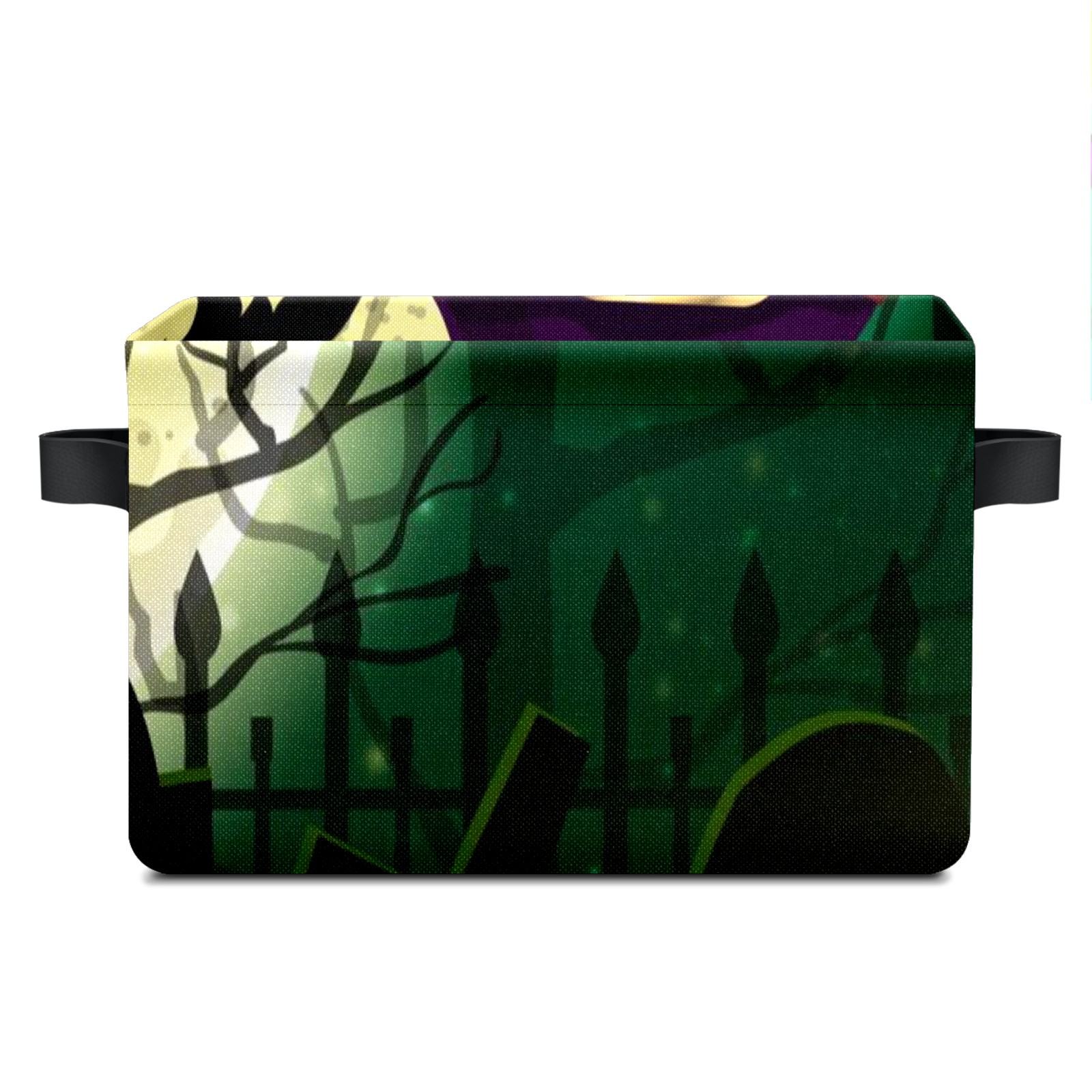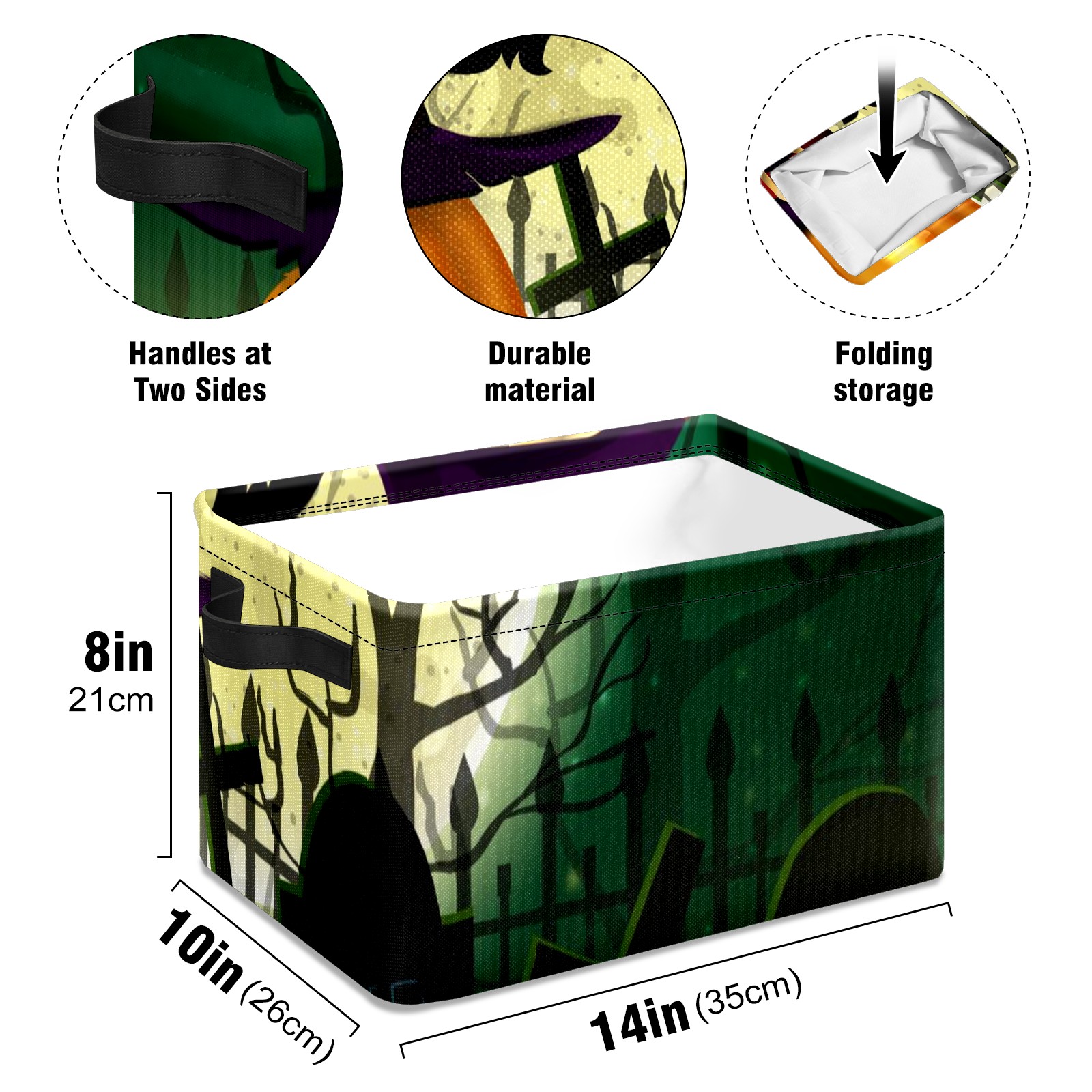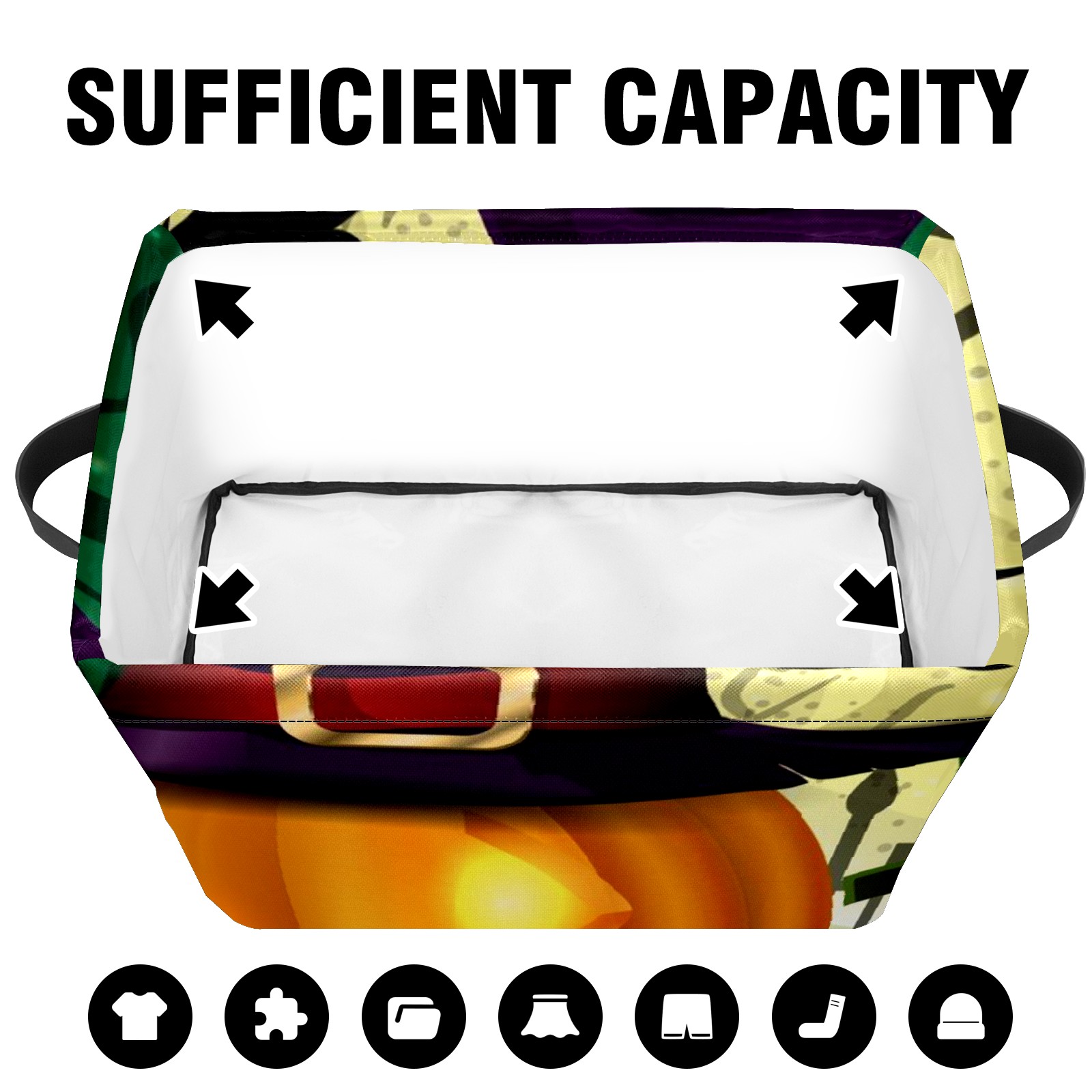 Collapsible 600D Oxford Storage Basket with Halloween Spooky Pumpkin (4) - Metal Frame 10"x14"x8" Reinforced Handles, Multi-Purpose Organizer