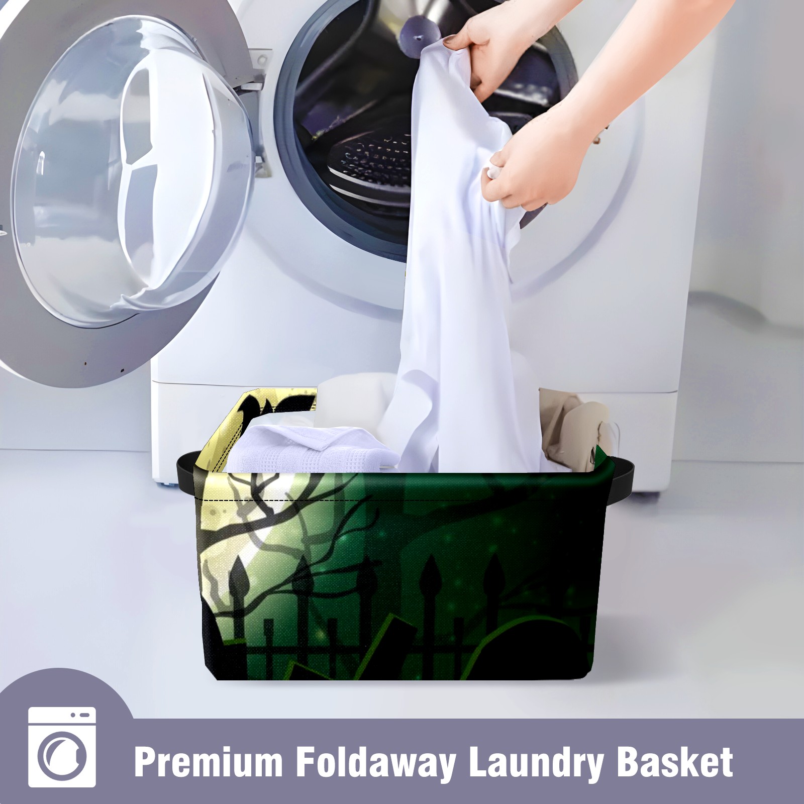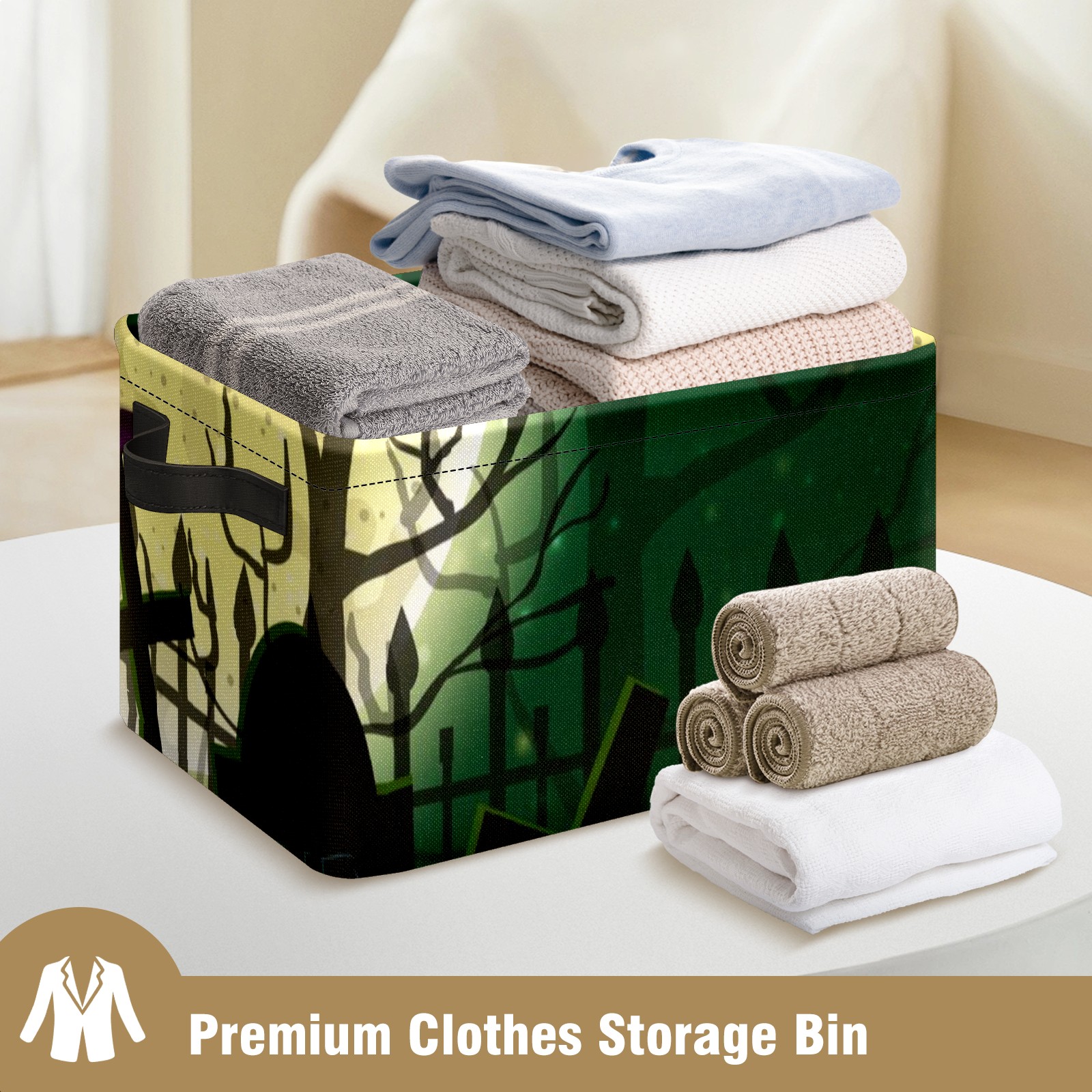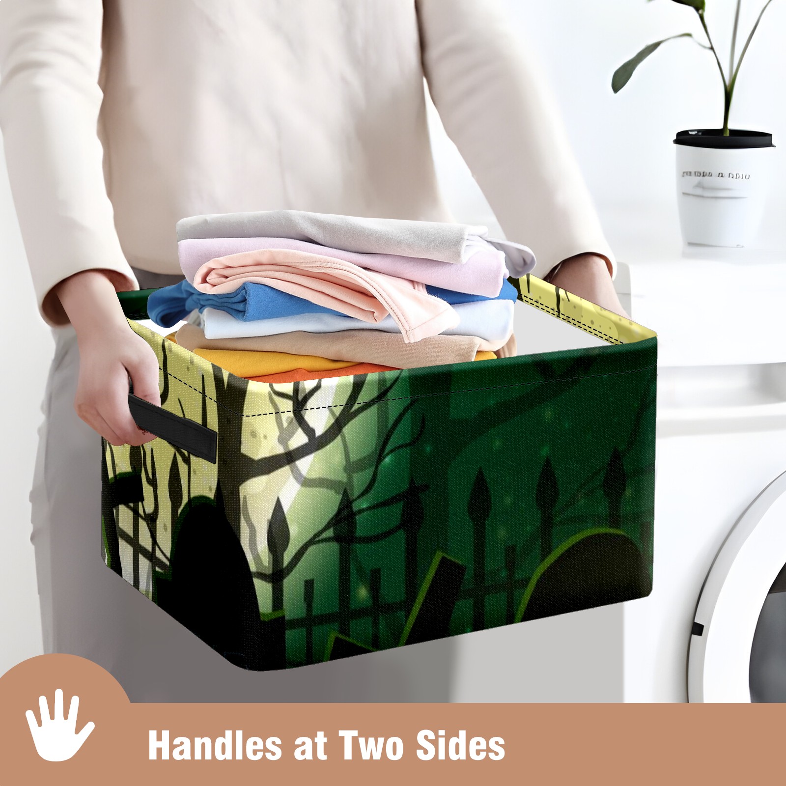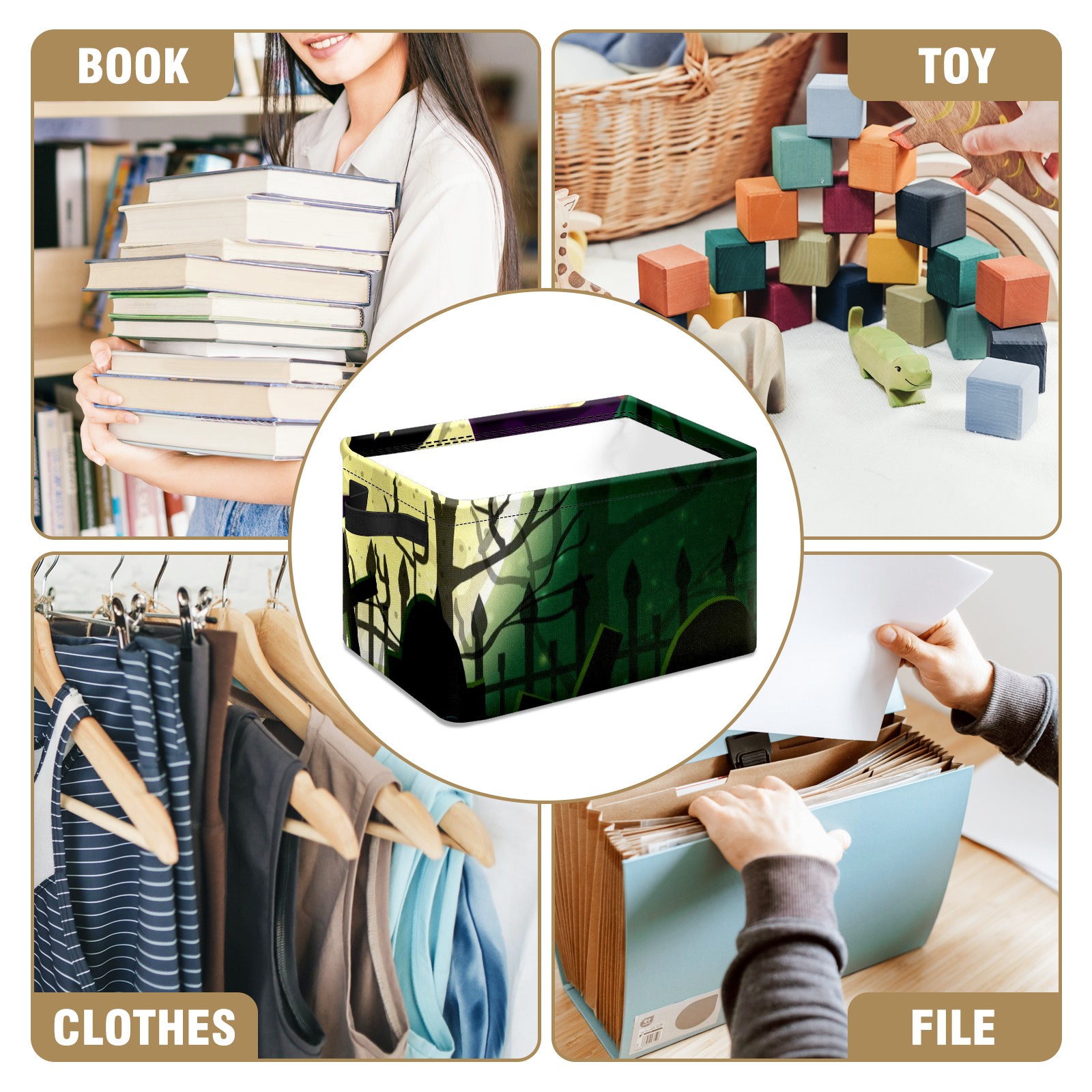 Collapsible 600D Oxford Storage Basket with Halloween Spooky Pumpkin (4) - Metal Frame 10"x14"x8" Reinforced Handles, Multi-Purpose Organizer