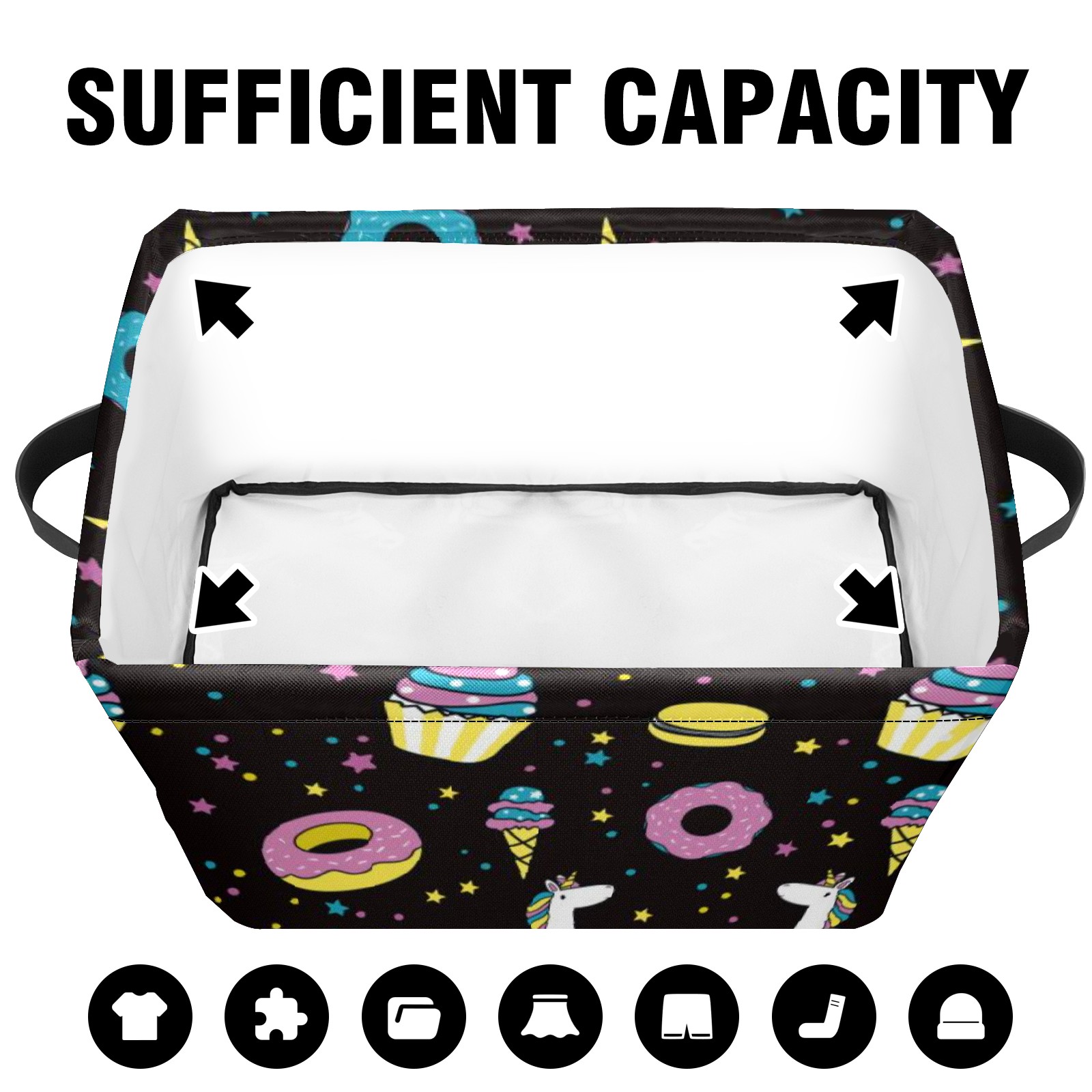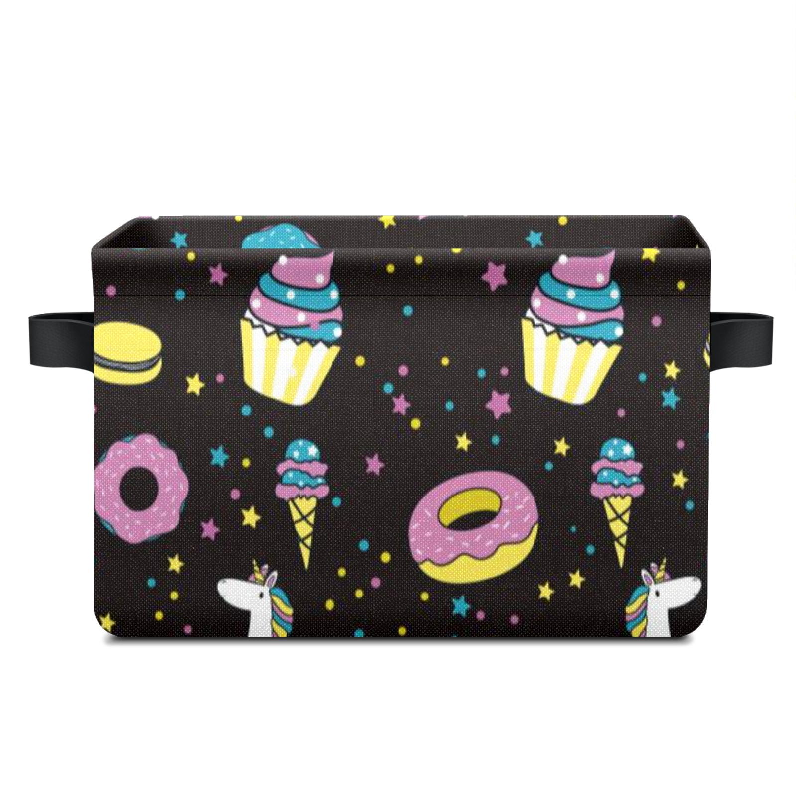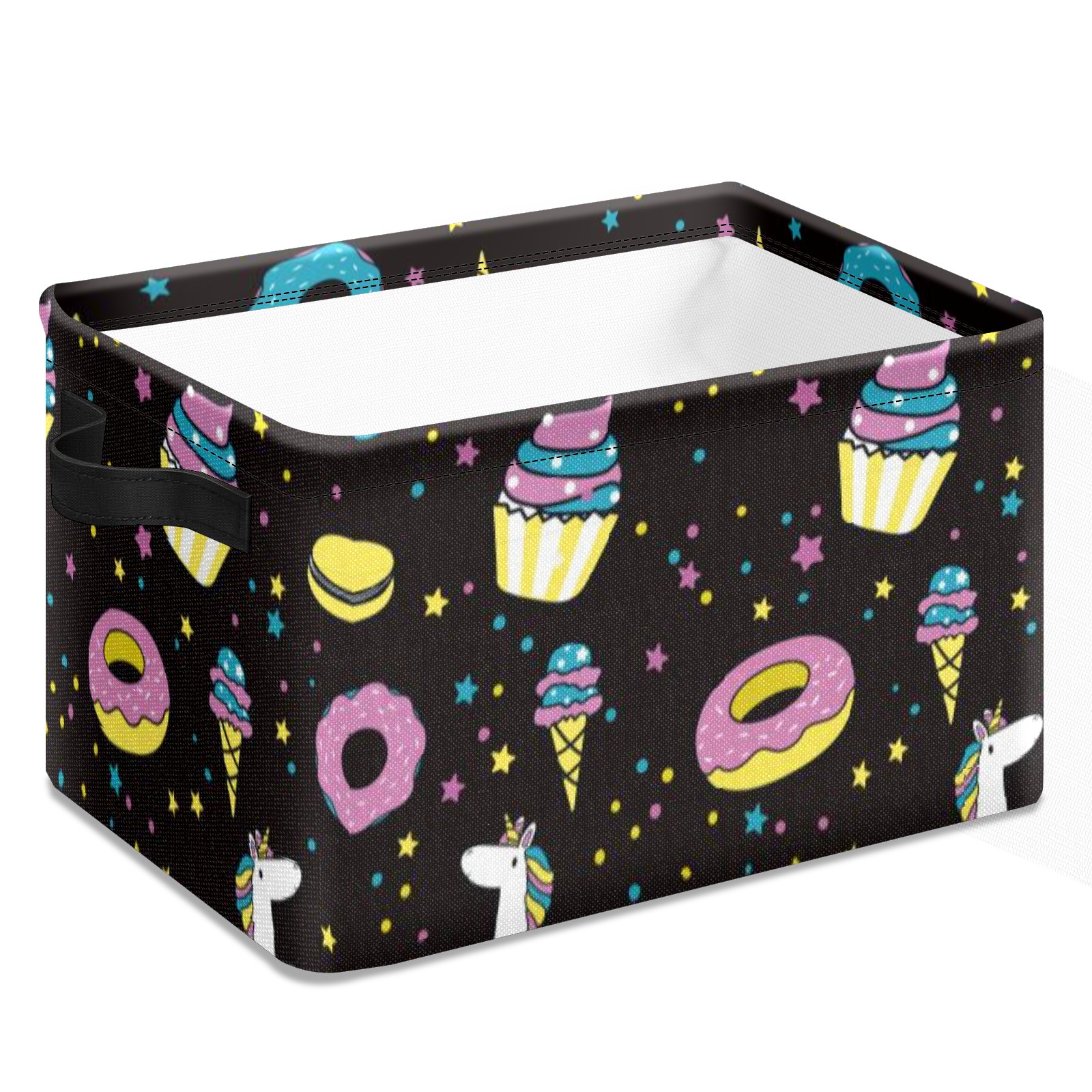 Collapsible 600D Oxford Storage Basket with Colorful Unicorn Doughnut Cartoon - Metal Frame 10"x14"x8" Reinforced Handles, Multi-Purpose Organizer