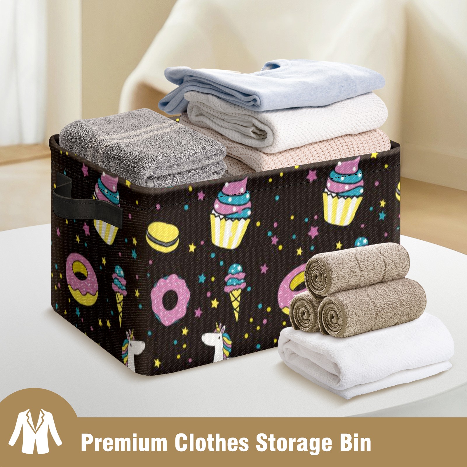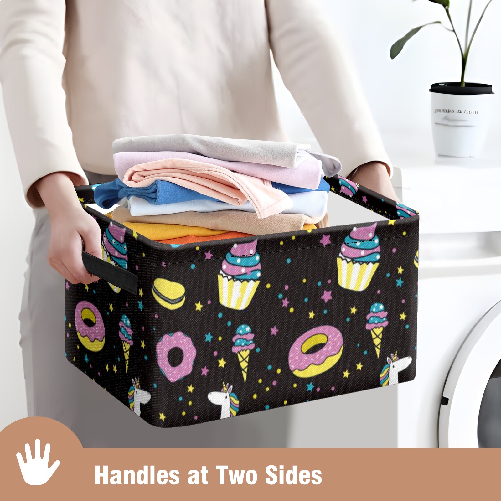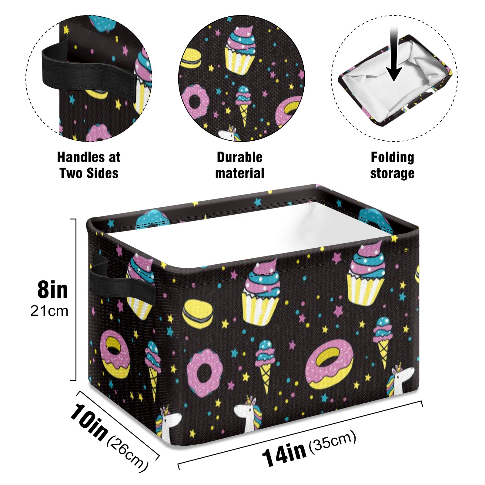 Collapsible 600D Oxford Storage Basket with Colorful Unicorn Doughnut Cartoon - Metal Frame 10"x14"x8" Reinforced Handles, Multi-Purpose Organizer