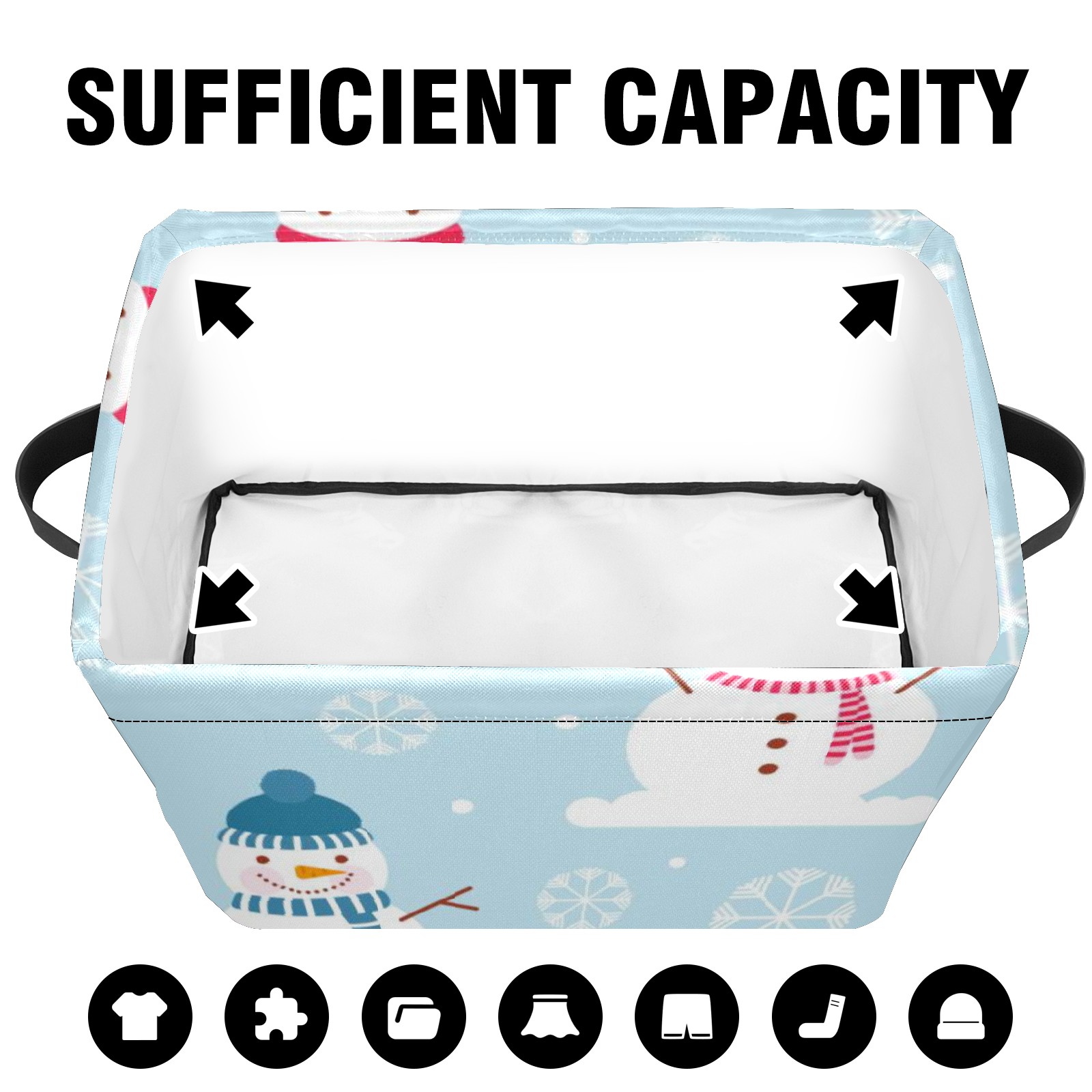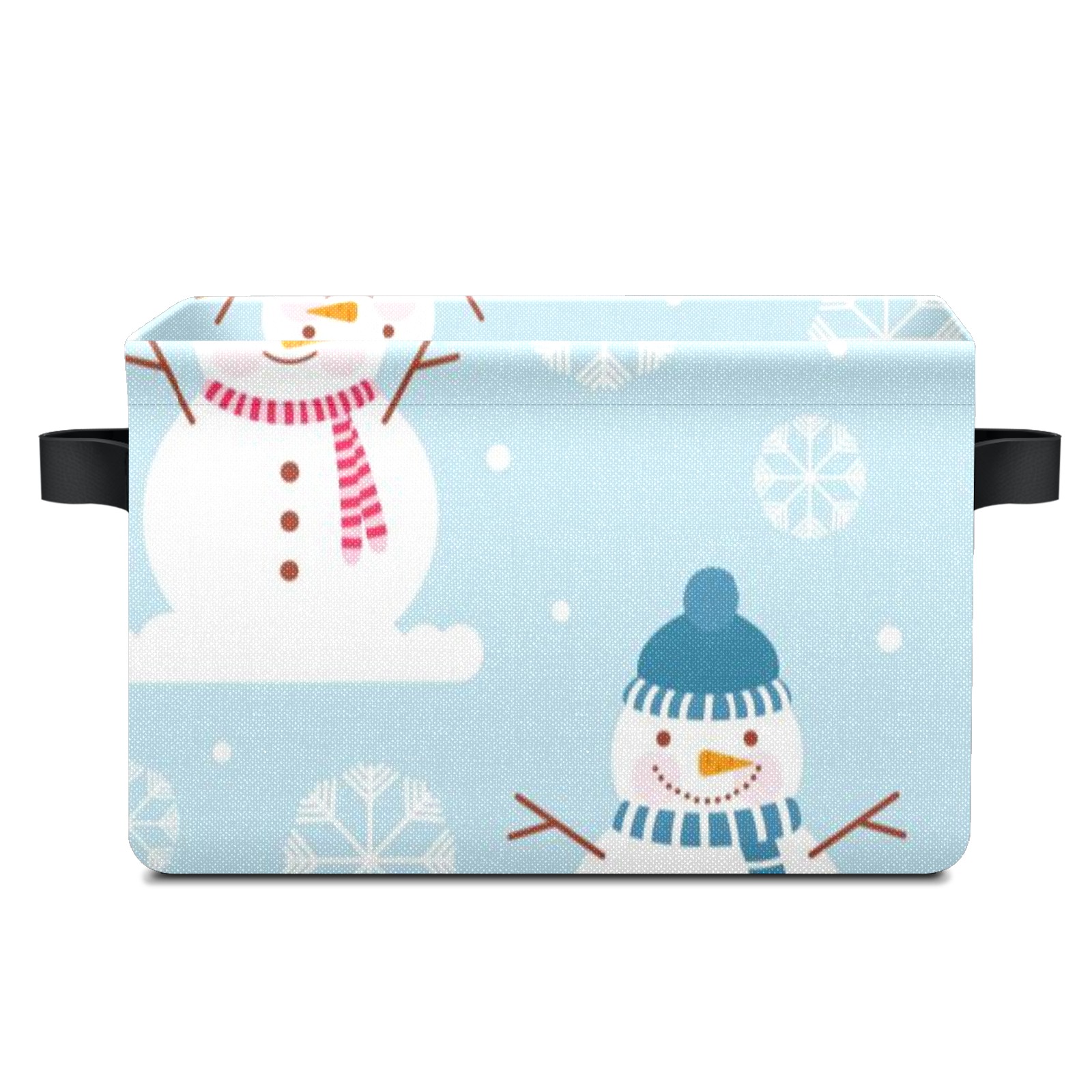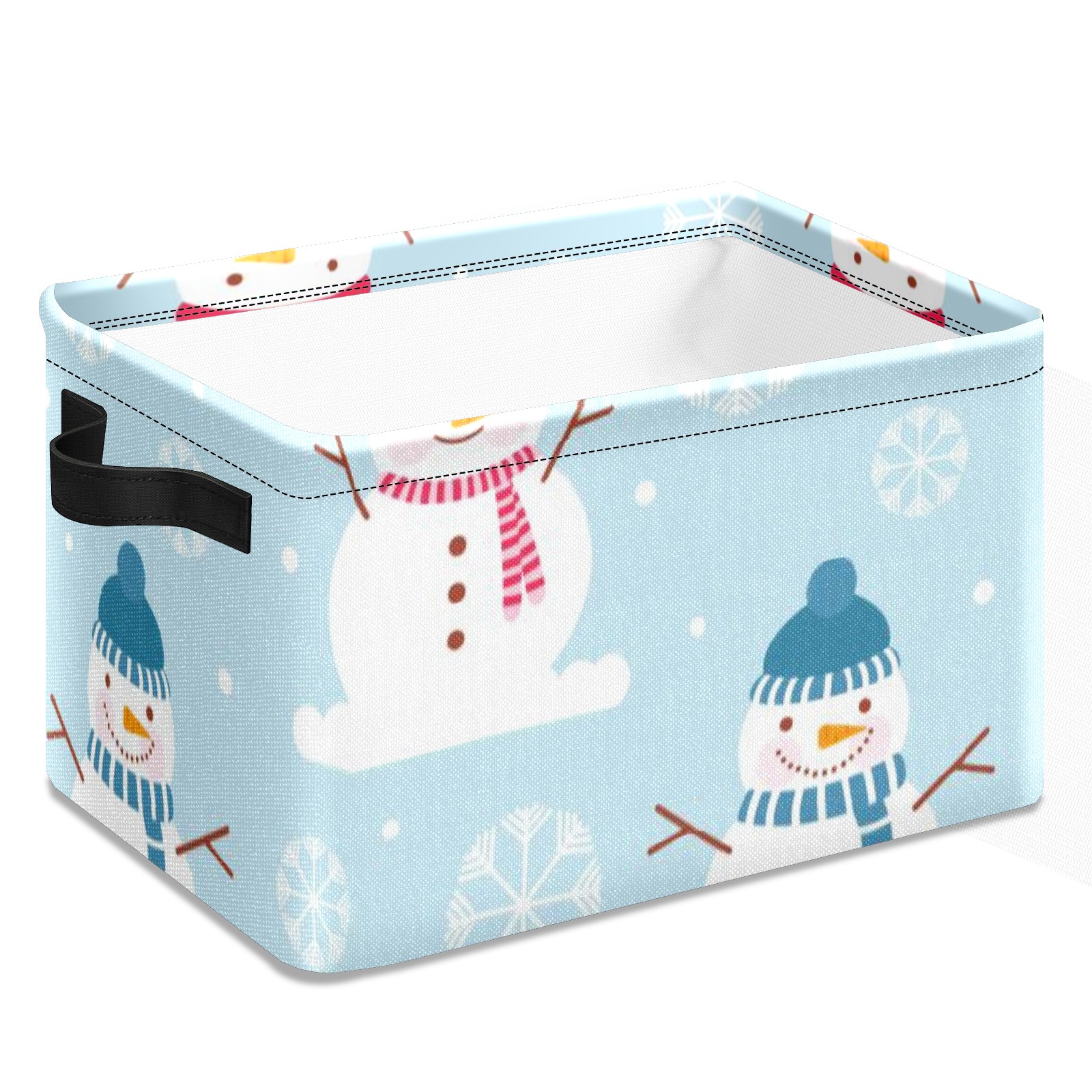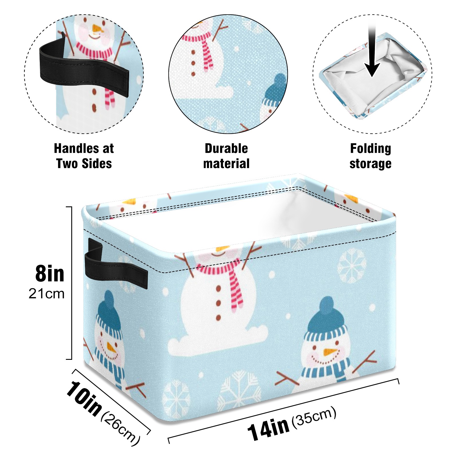 Collapsible 600D Oxford Storage Basket with Winter Christmas Snowman - Metal Frame 10"x14"x8" Reinforced Handles, Multi-Purpose Organizer