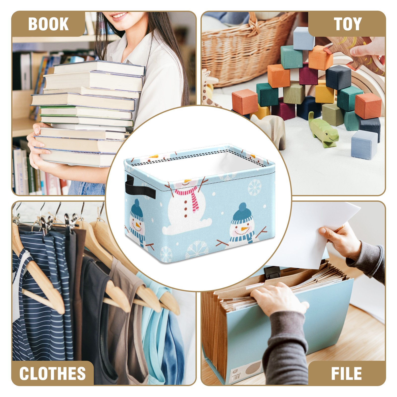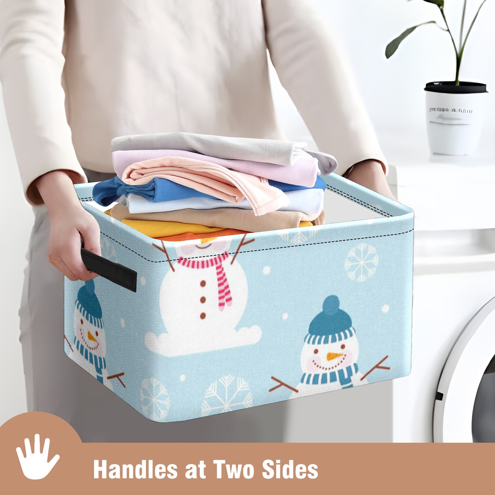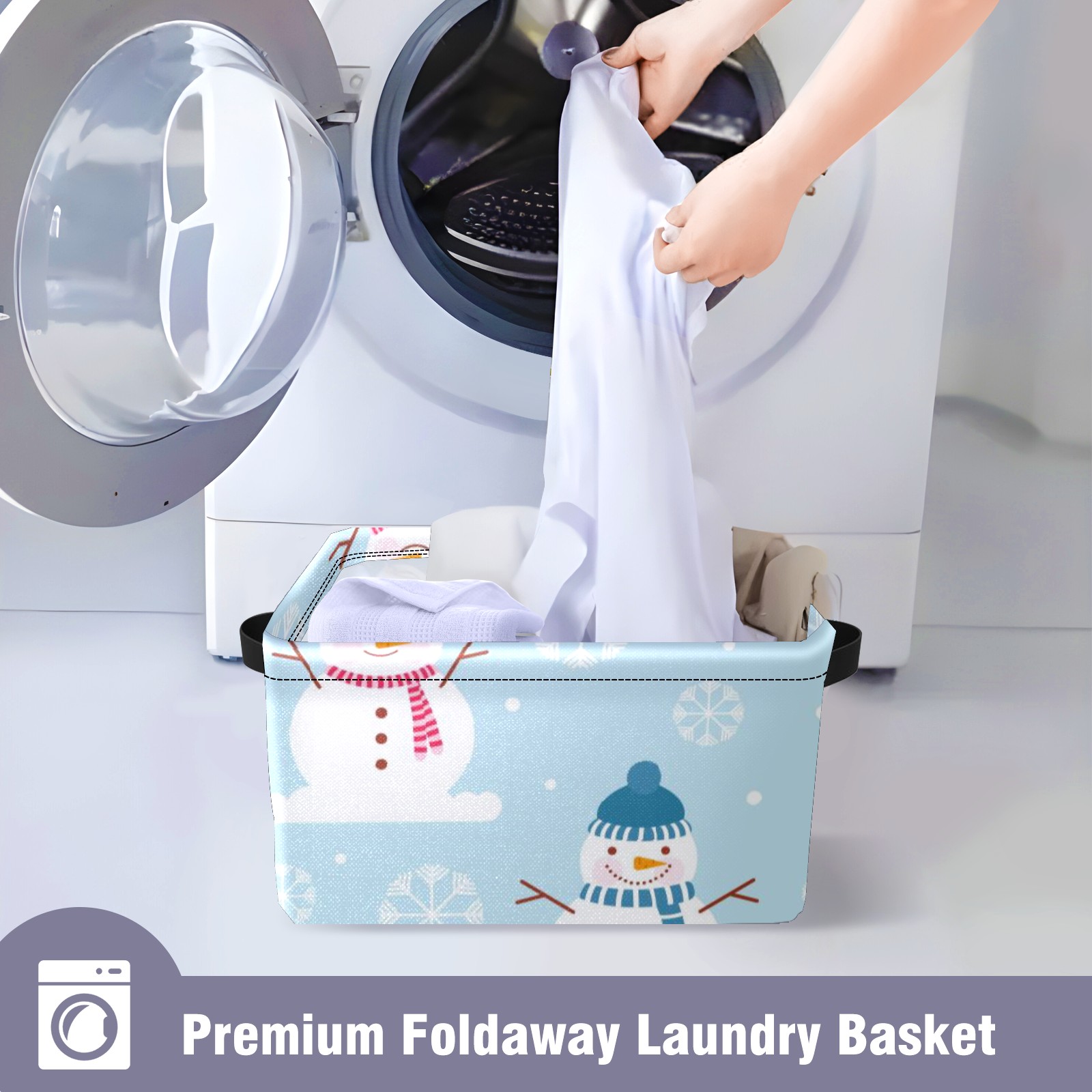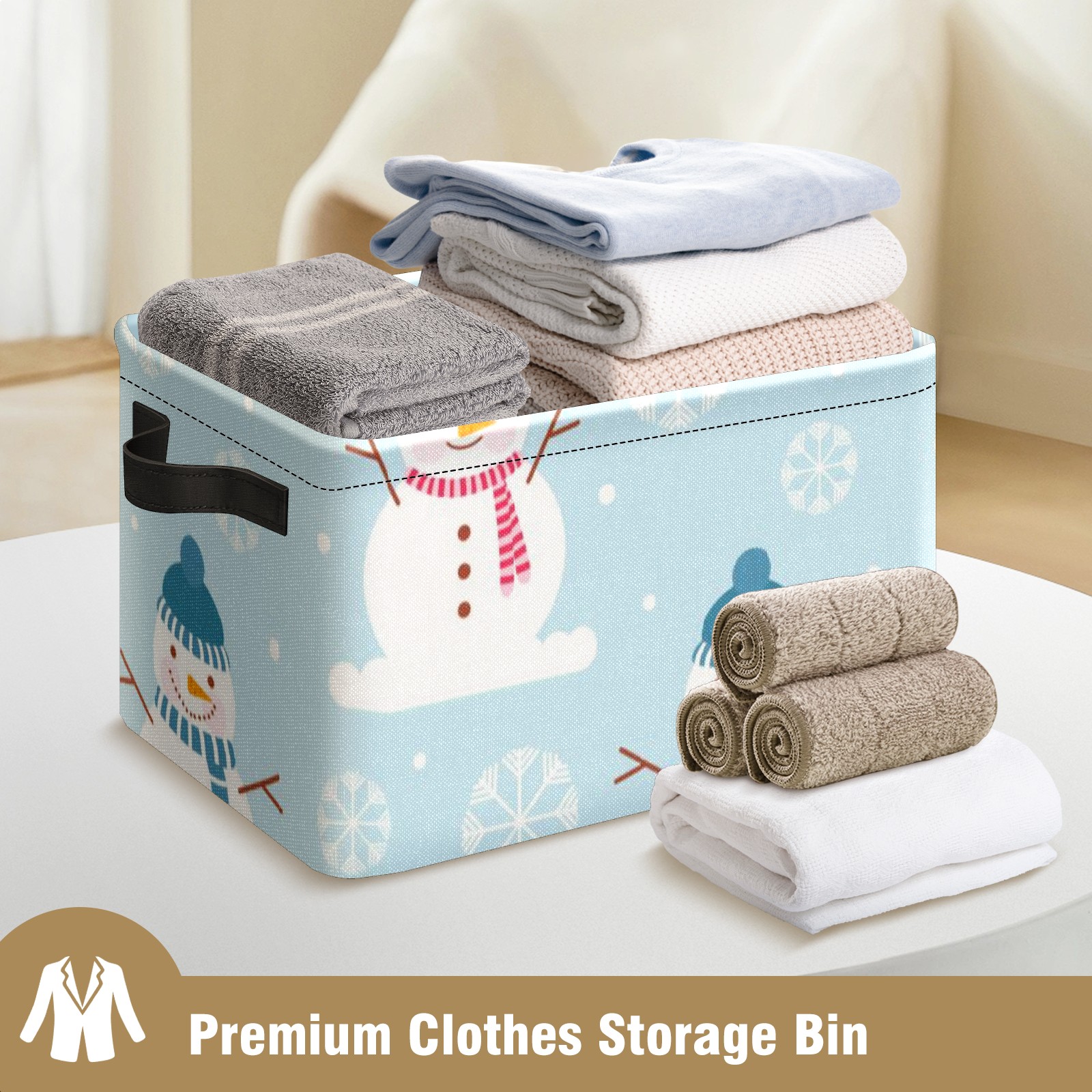 Collapsible 600D Oxford Storage Basket with Winter Christmas Snowman - Metal Frame 10"x14"x8" Reinforced Handles, Multi-Purpose Organizer