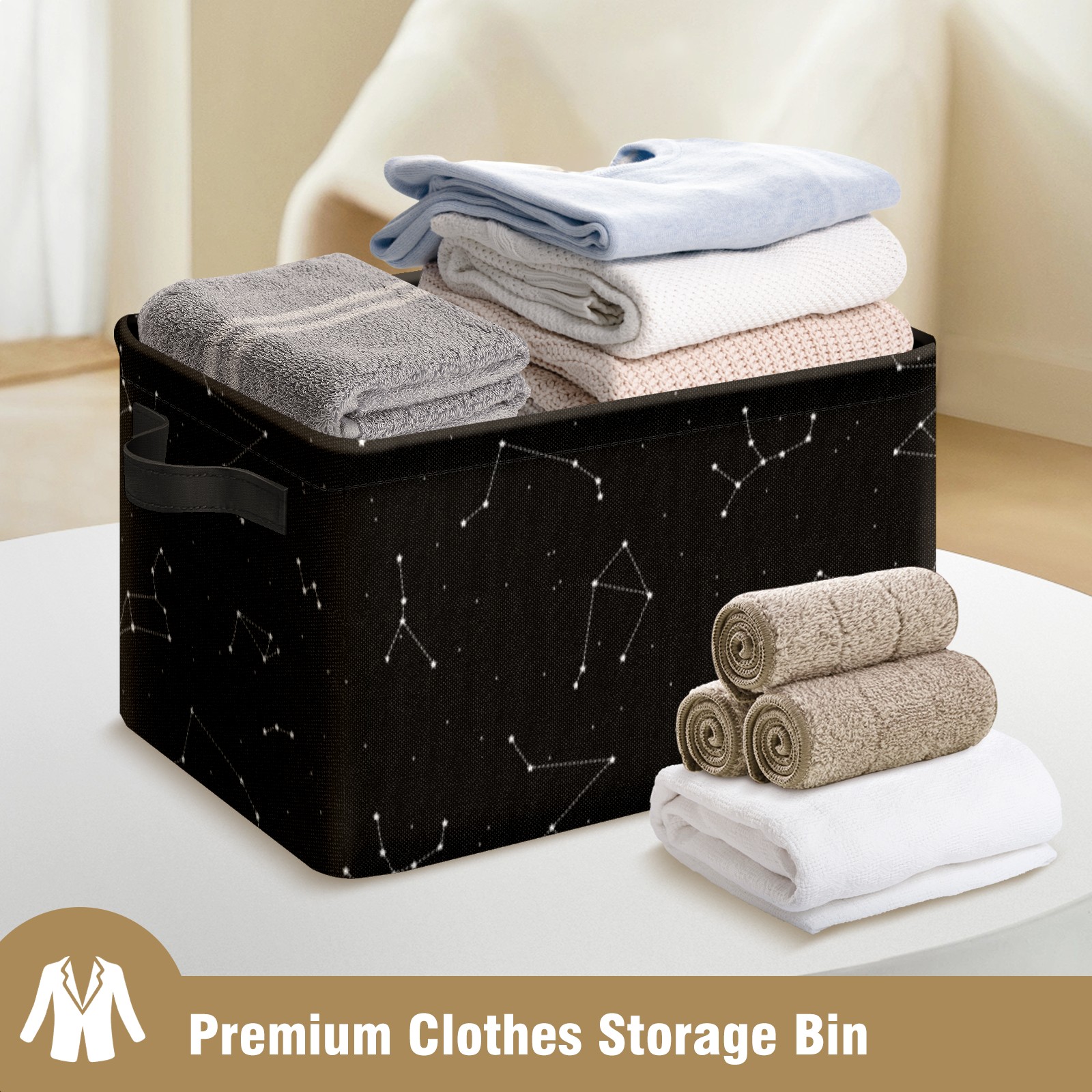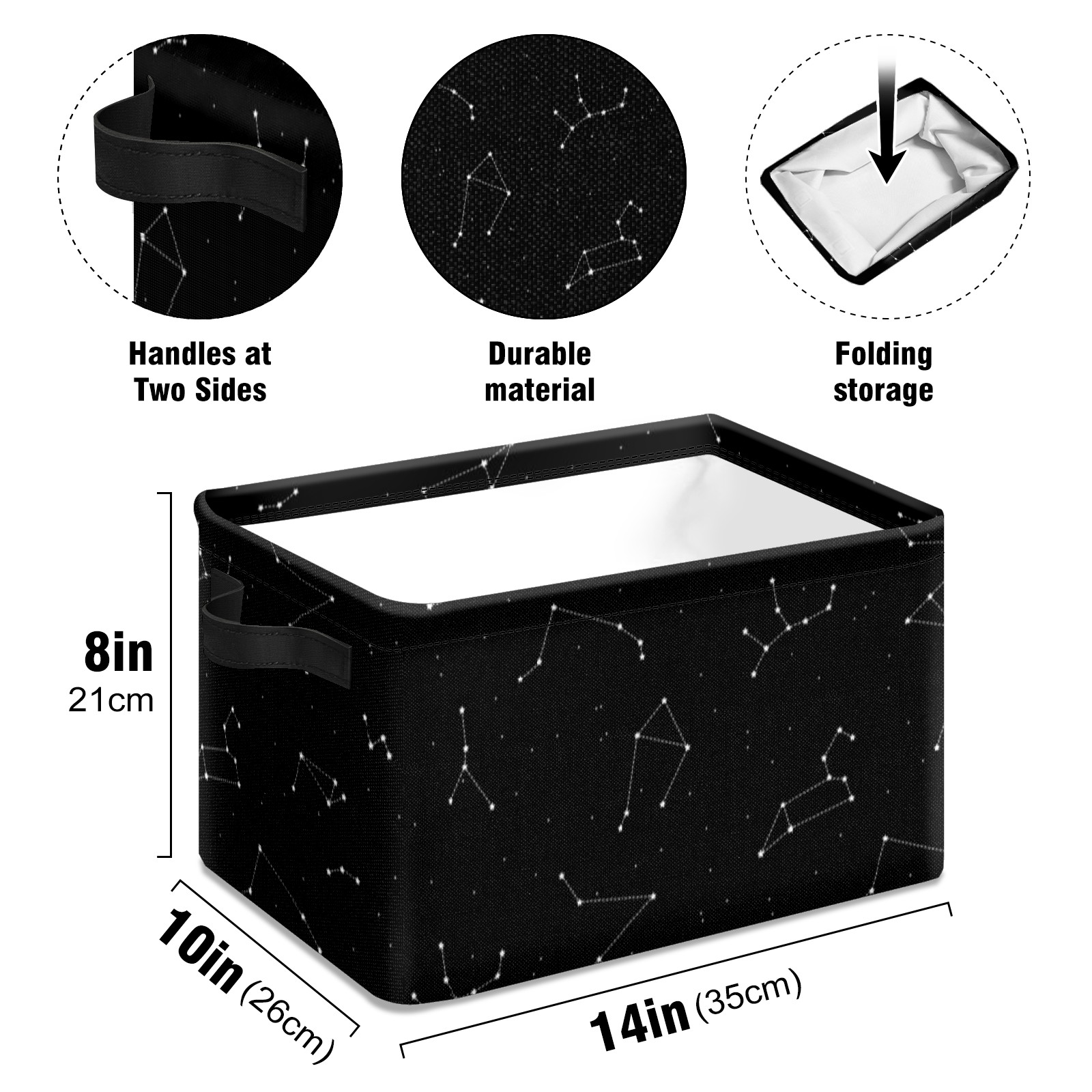 Collapsible 600D Oxford Storage Basket with Galaxy Pattern Constellation - Metal Frame 10"x14"x8" Reinforced Handles, Multi-Purpose Organizer