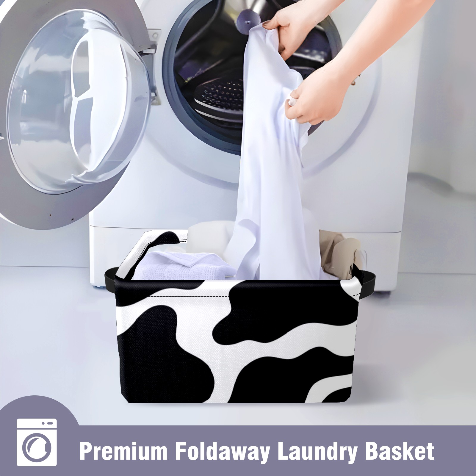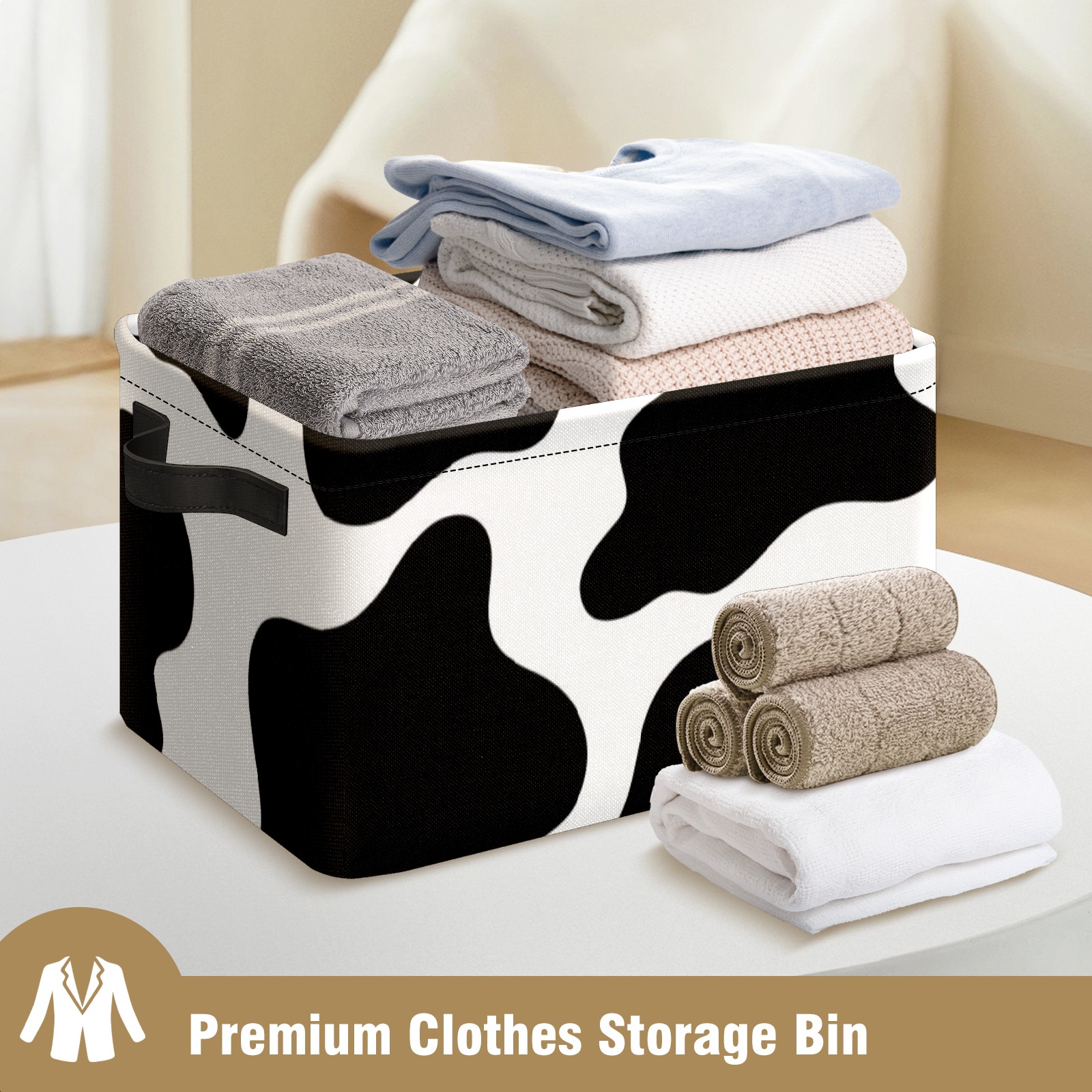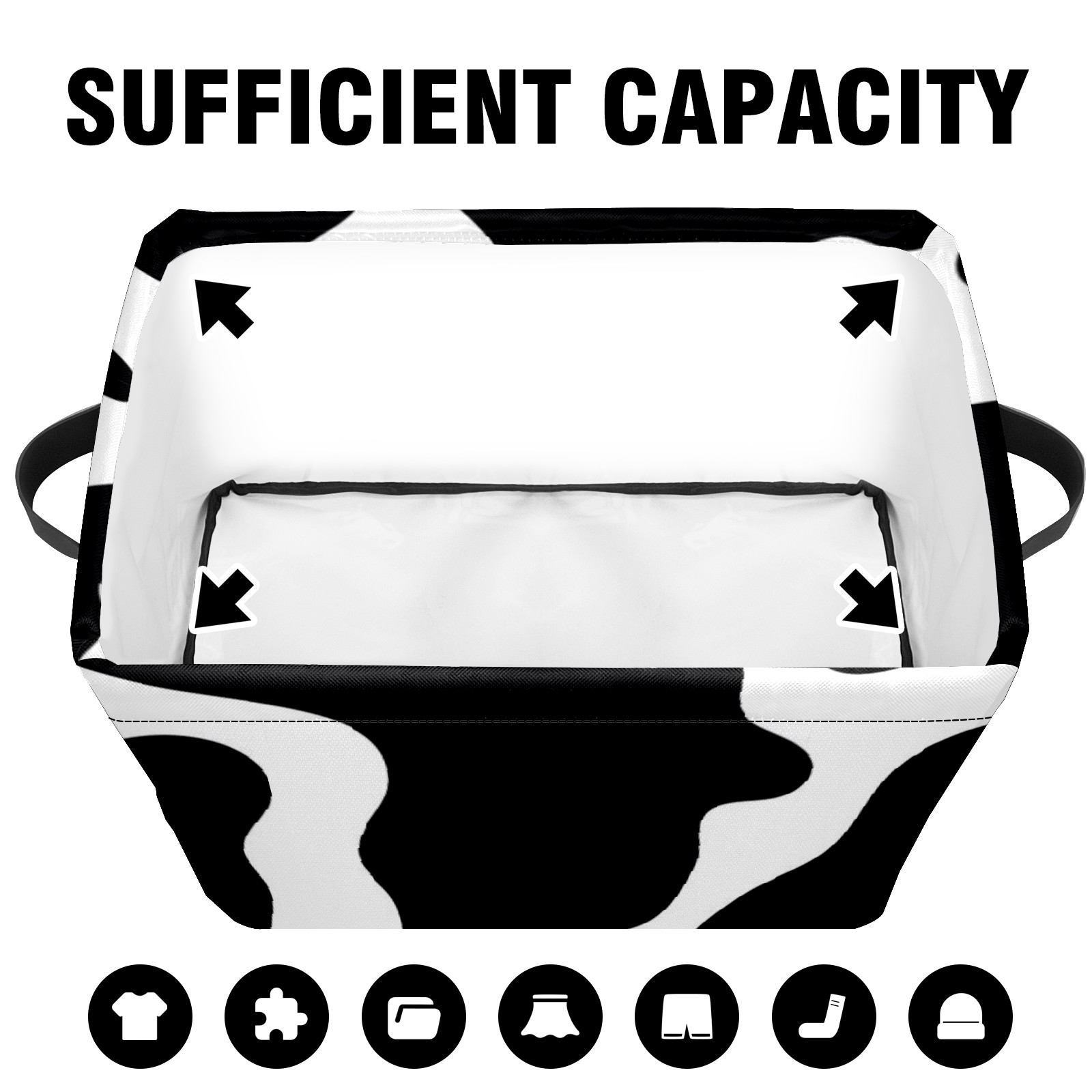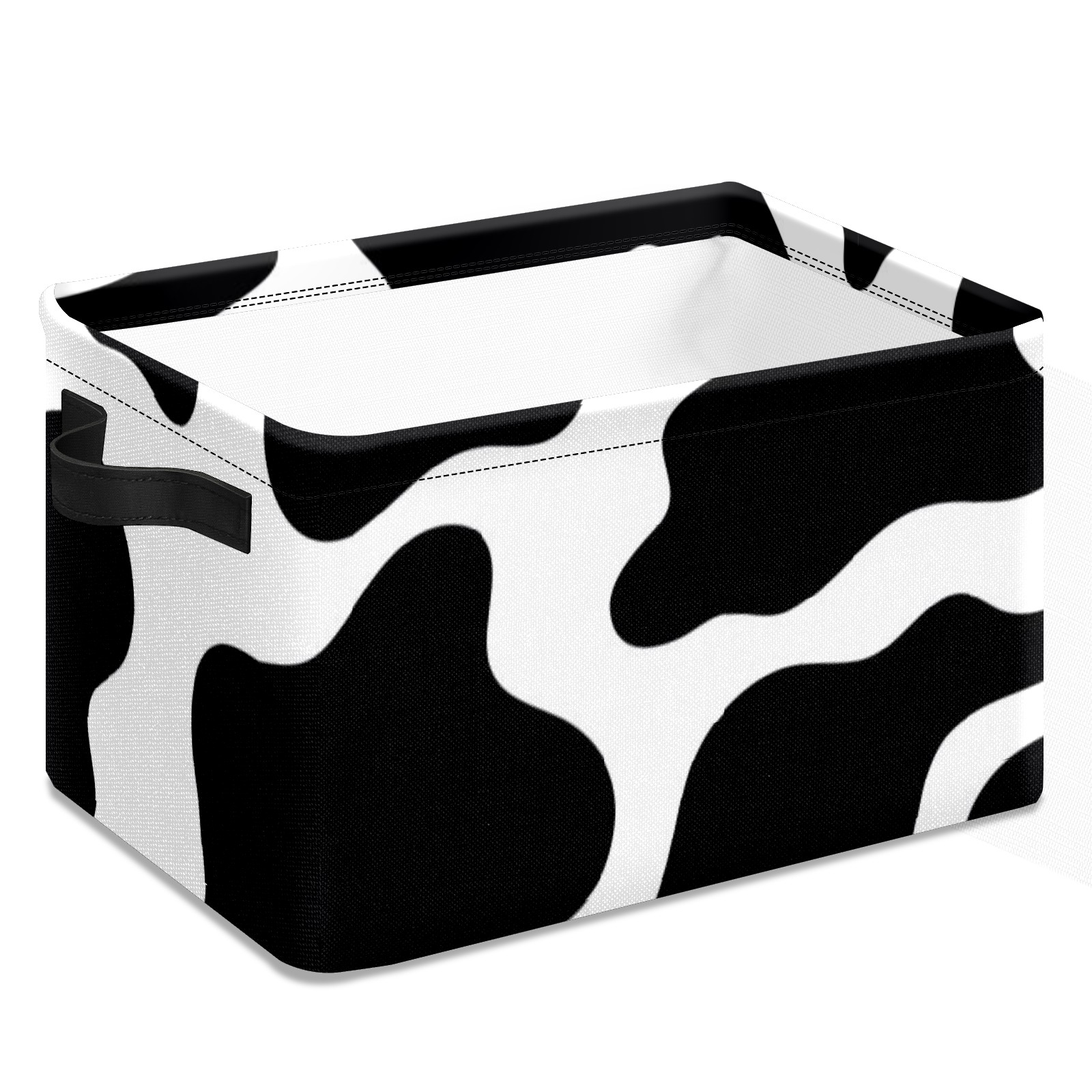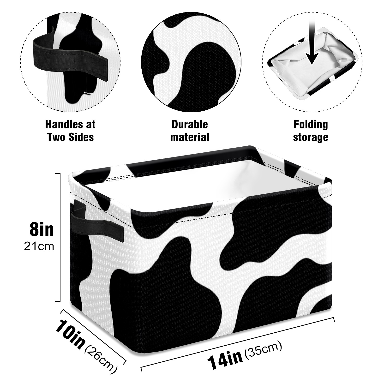 Collapsible 600D Oxford Storage Basket with Animal Print Cow Stripe 2 - Metal Frame 10"x14"x8" Reinforced Handles, Multi-Purpose Organizer