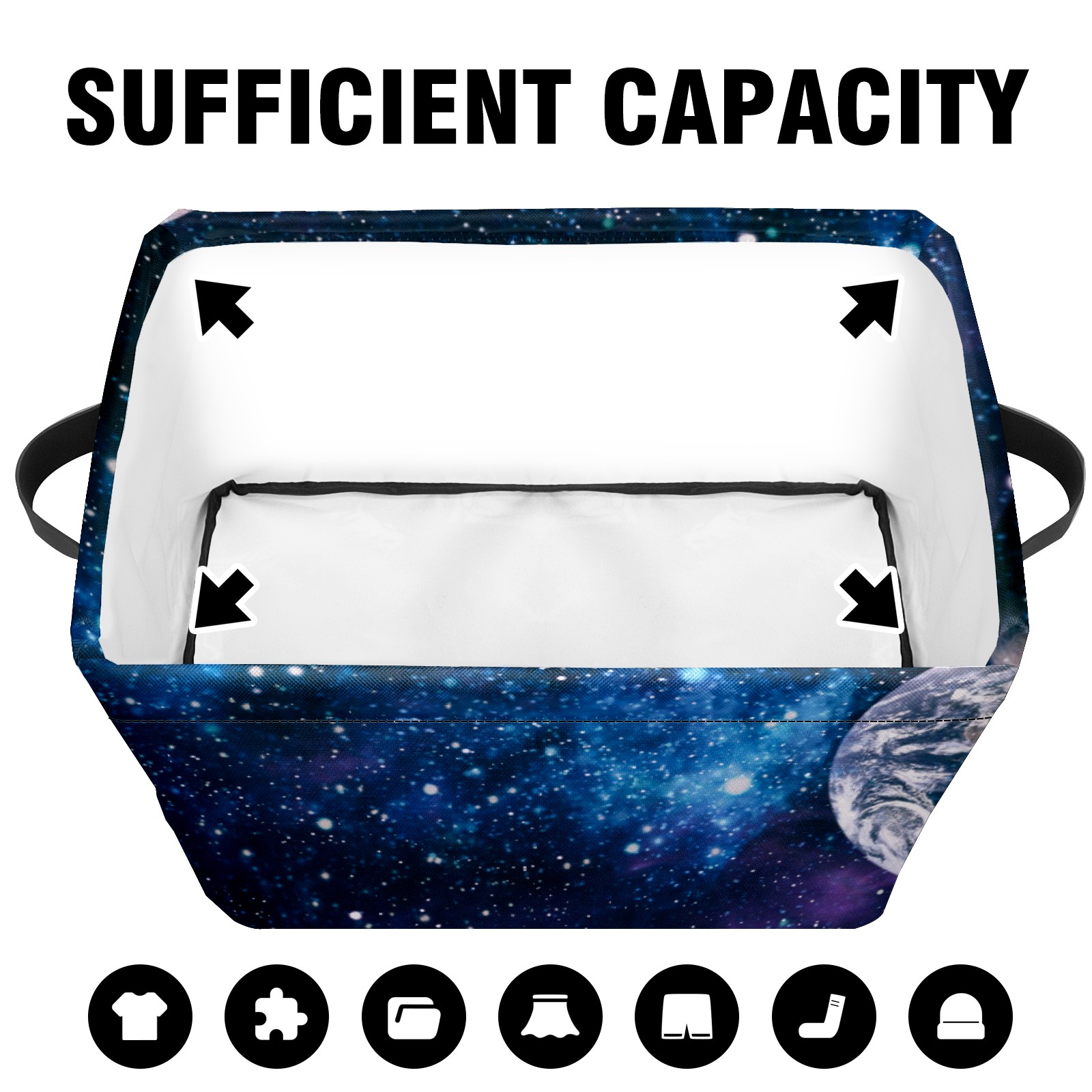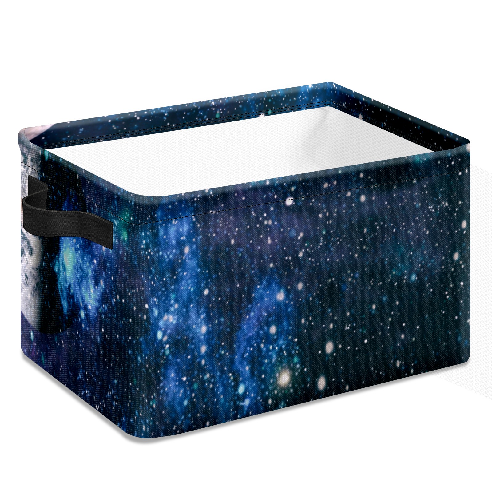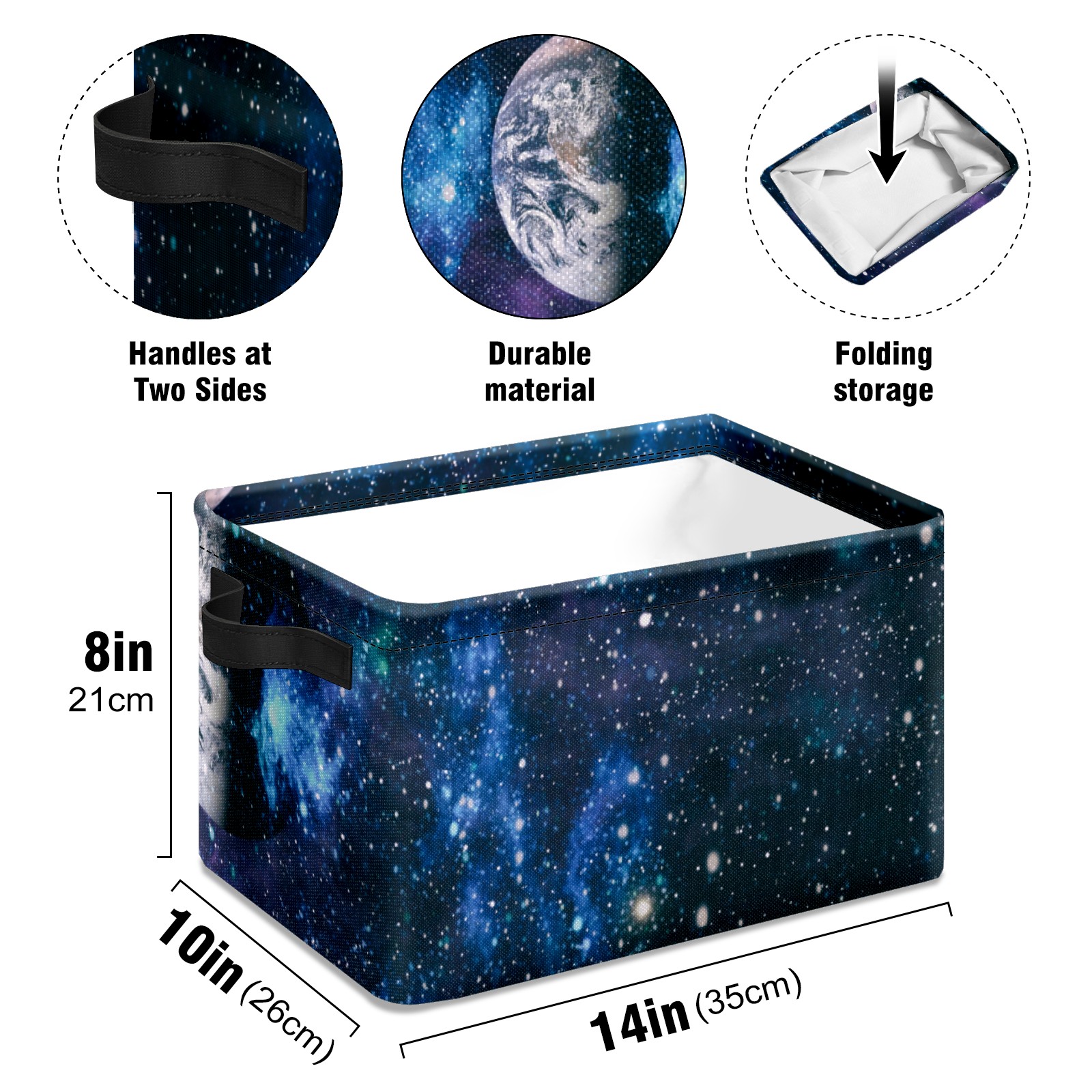 Collapsible 600D Oxford Storage Basket with Galaxy Space Planets - Metal Frame 10"x14"x8" Reinforced Handles, Multi-Purpose Organizer