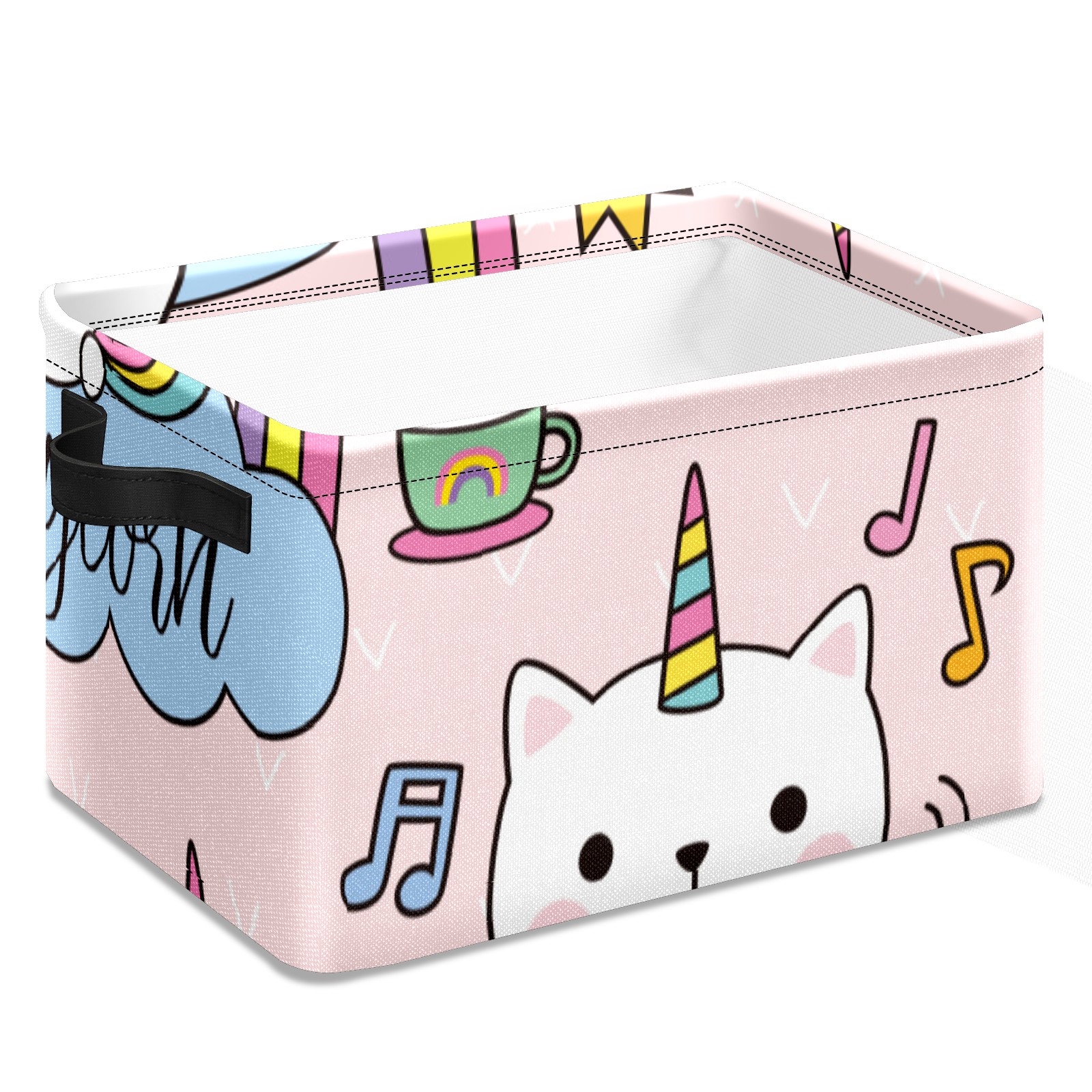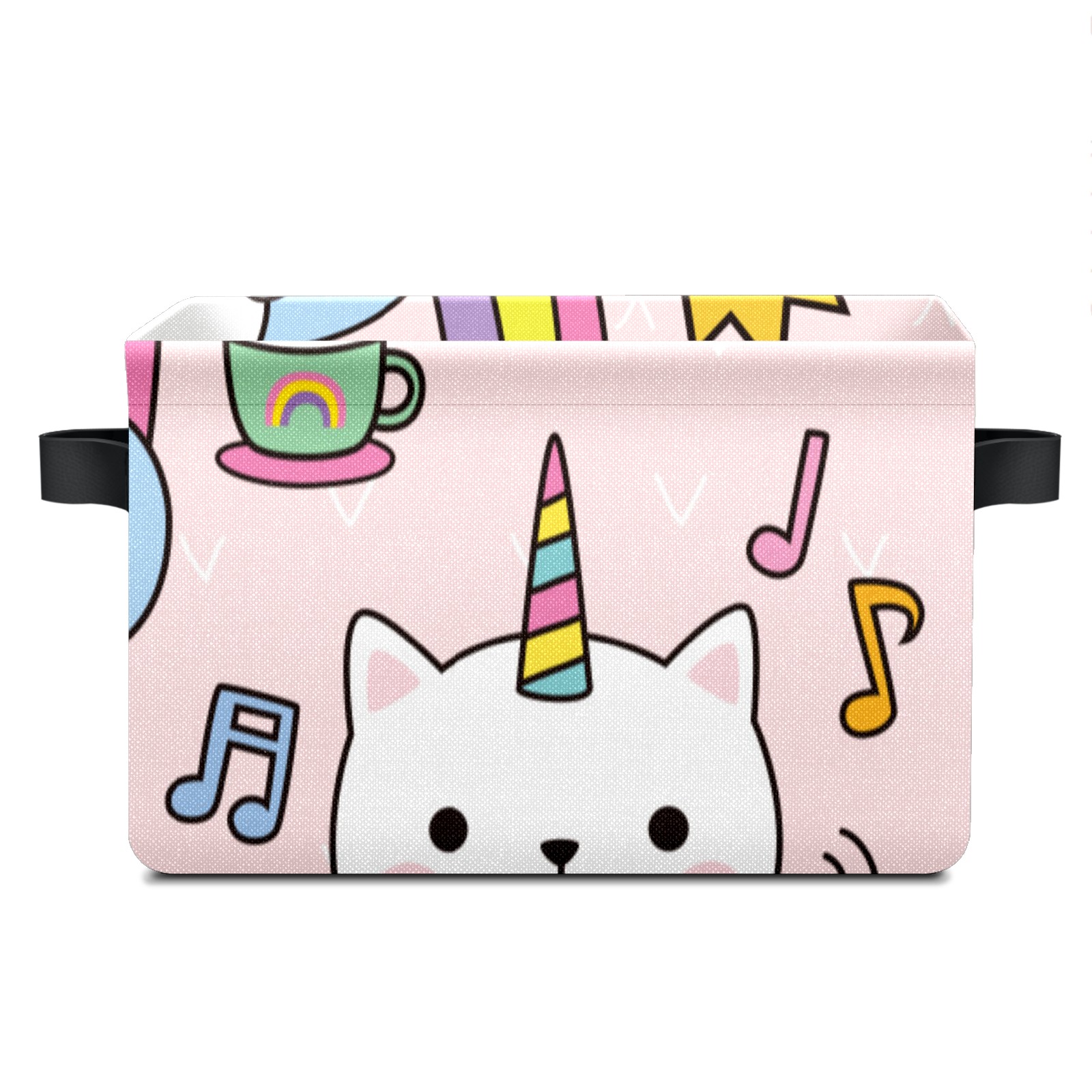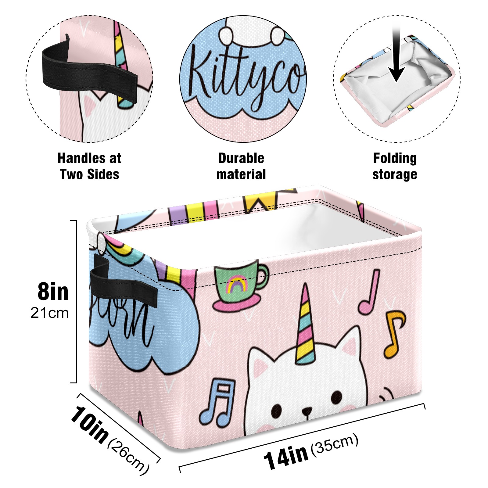 Collapsible 600D Oxford Storage Basket with Unicorn Cat Kittycorn - Metal Frame 10"x14"x8" Reinforced Handles, Multi-Purpose Organizer