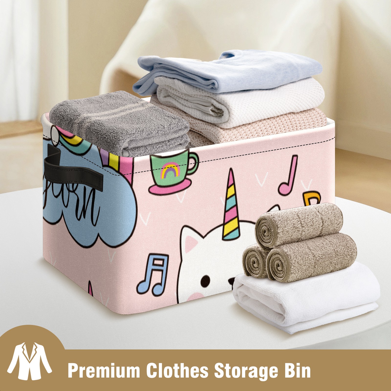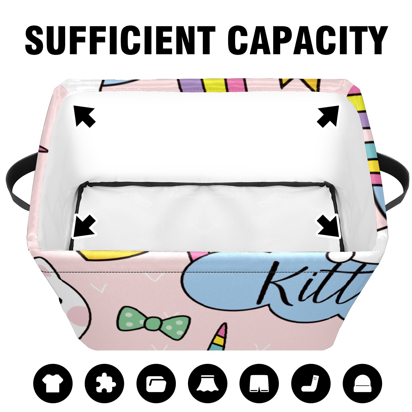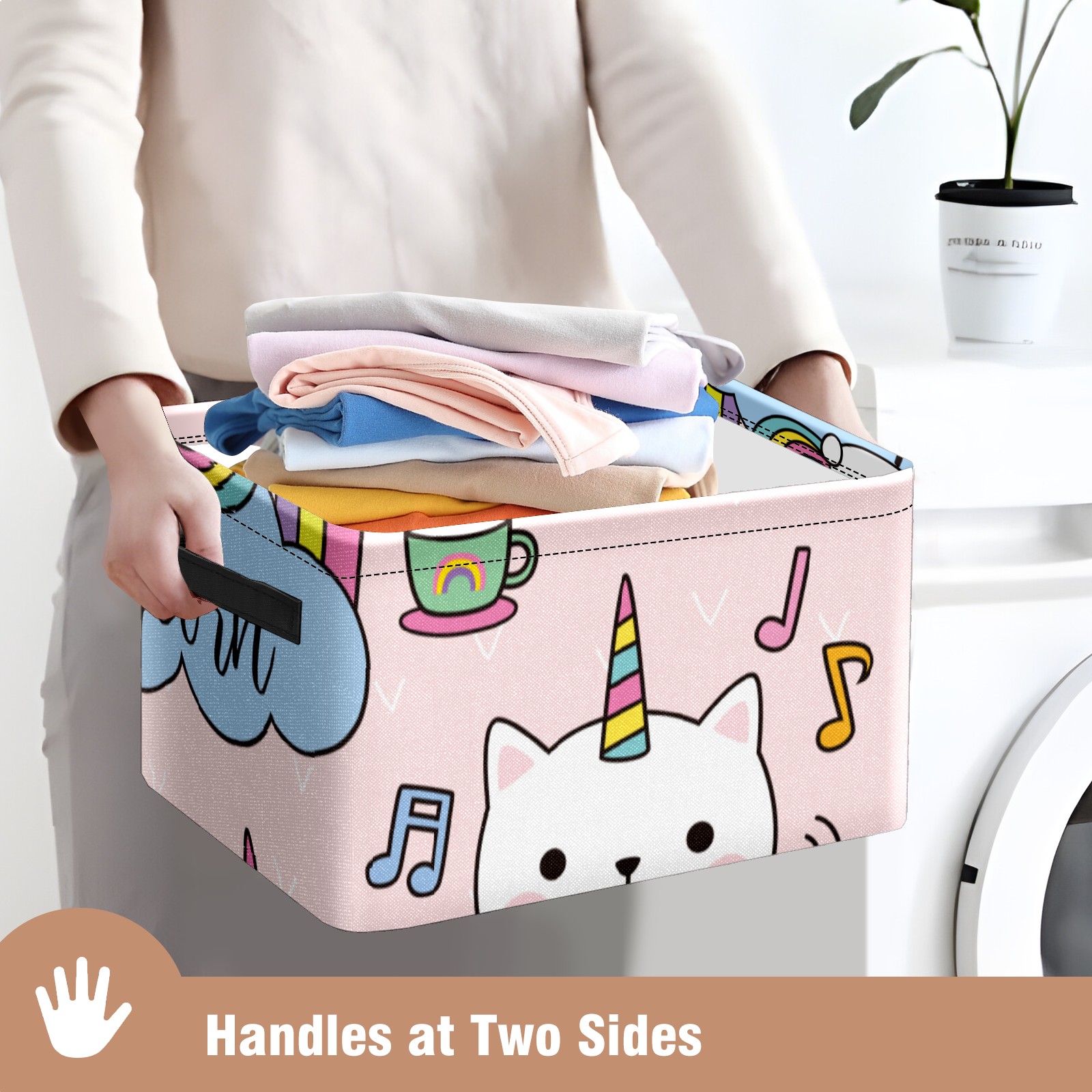 Collapsible 600D Oxford Storage Basket with Unicorn Cat Kittycorn - Metal Frame 10"x14"x8" Reinforced Handles, Multi-Purpose Organizer