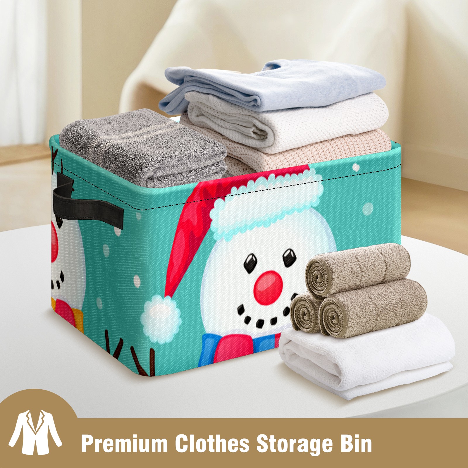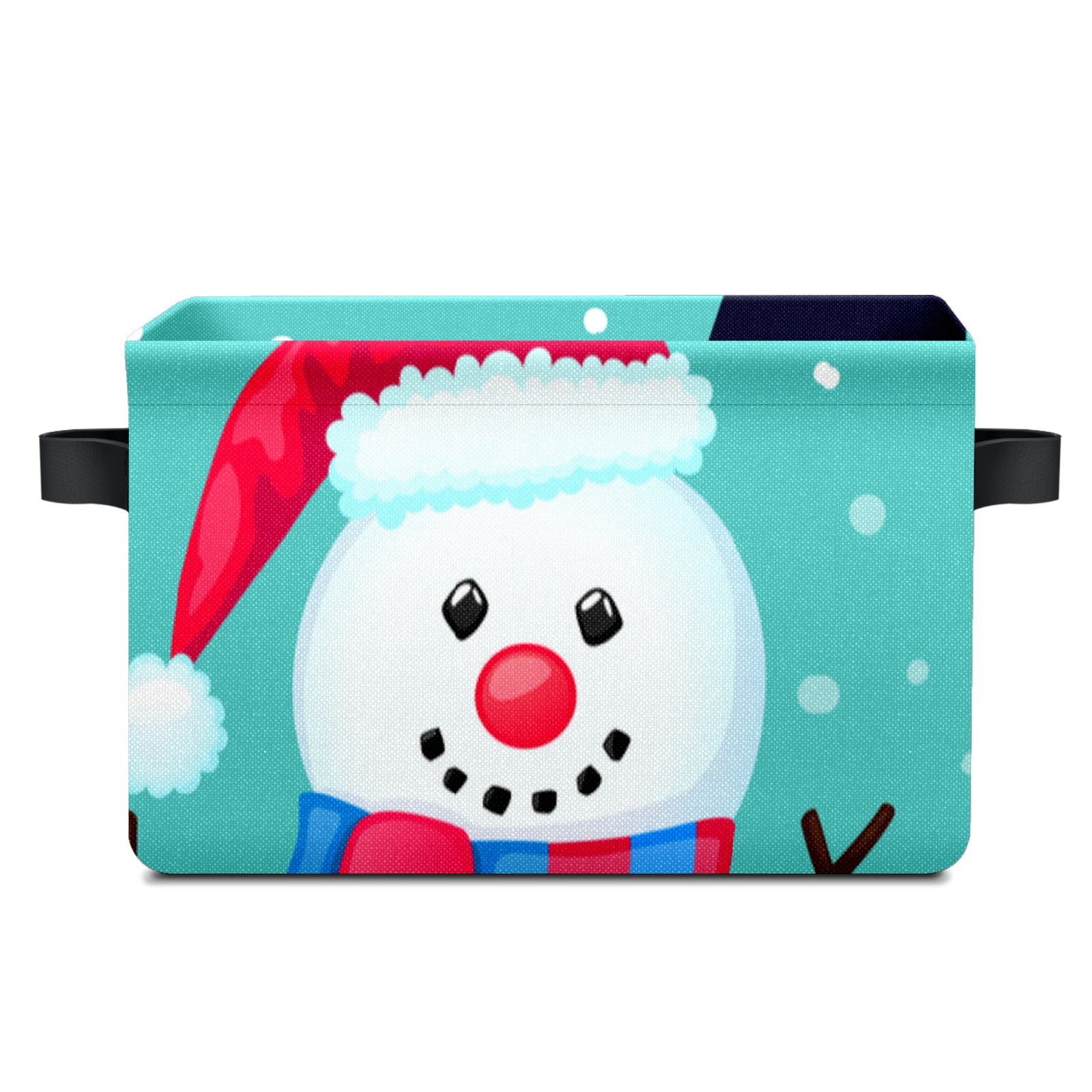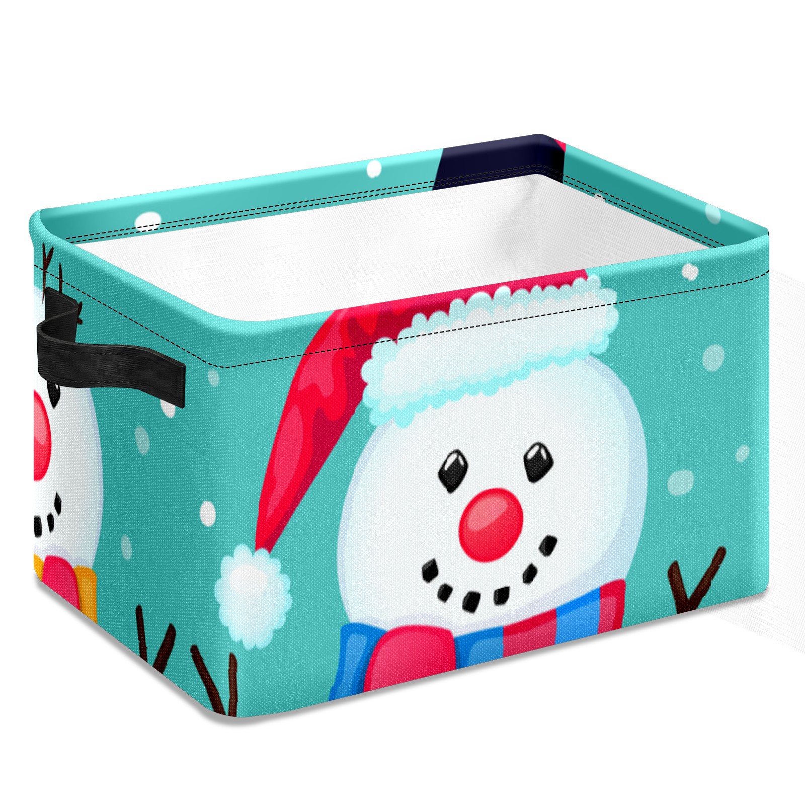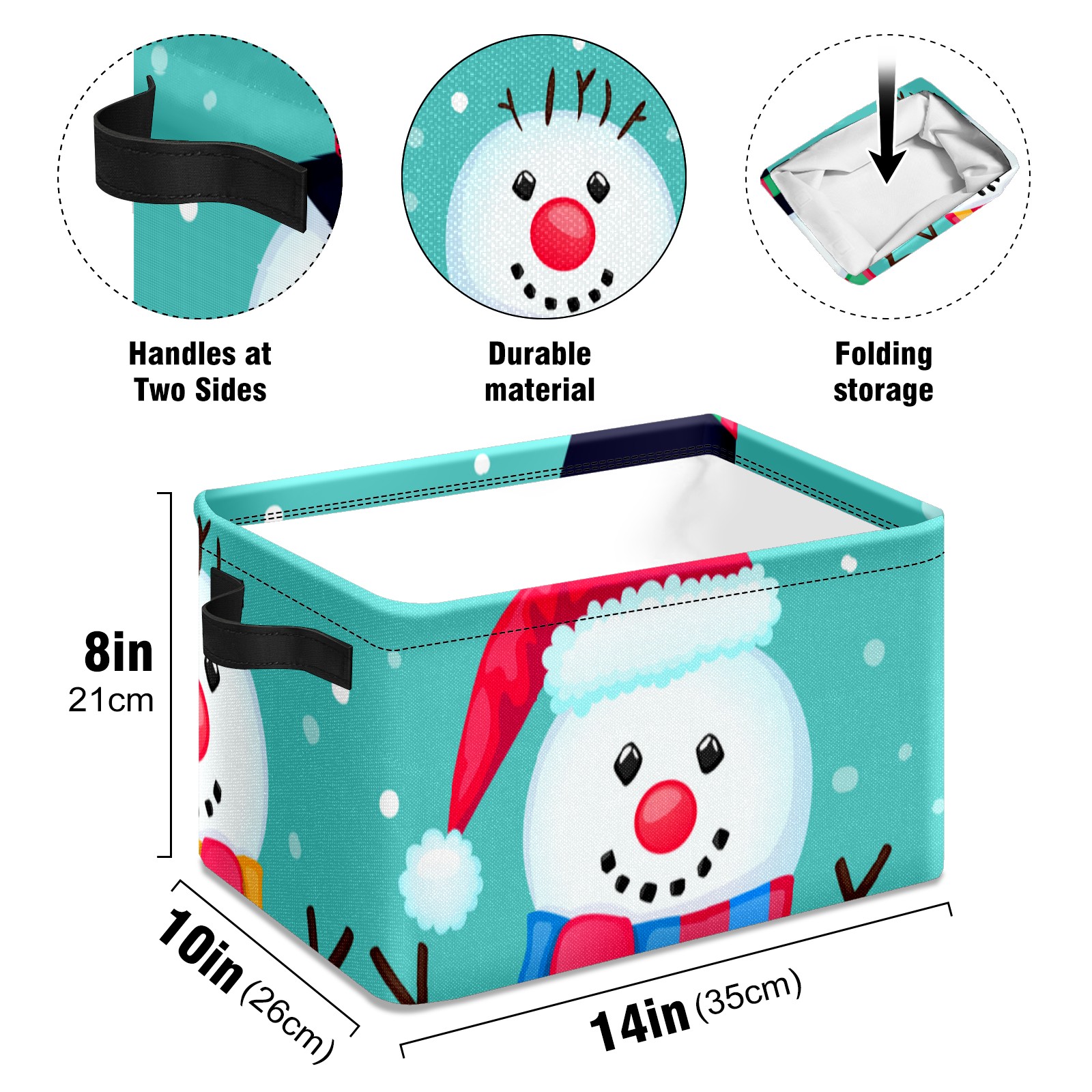 Collapsible 600D Oxford Storage Basket with Christmas Snowman Cute - Metal Frame 10"x14"x8" Reinforced Handles, Multi-Purpose Organizer