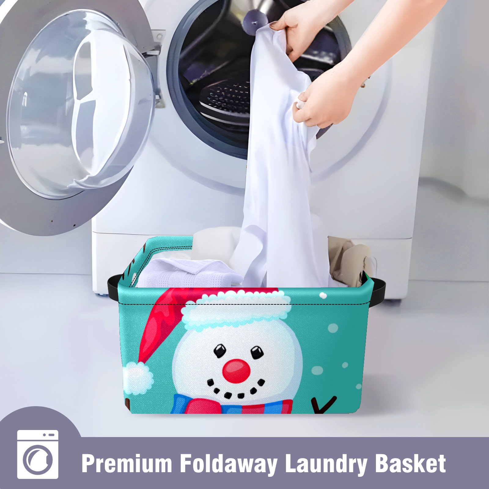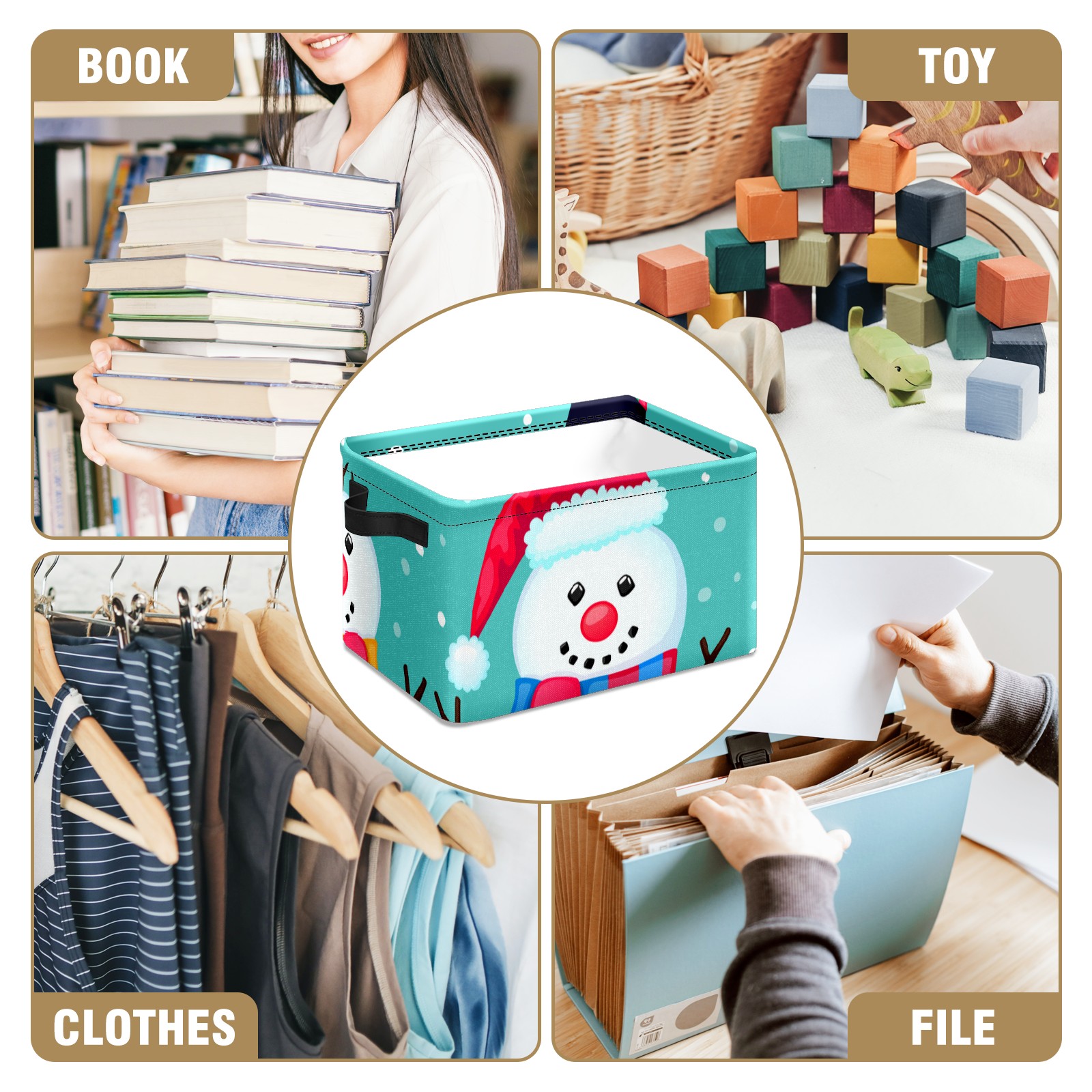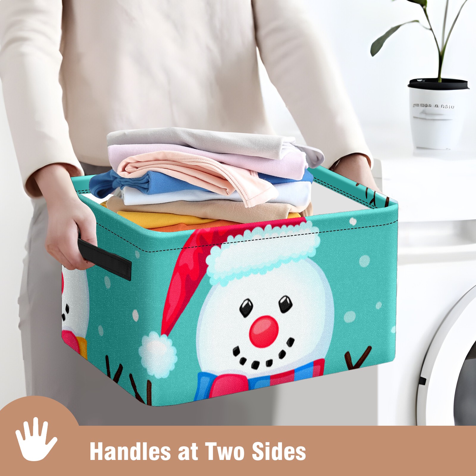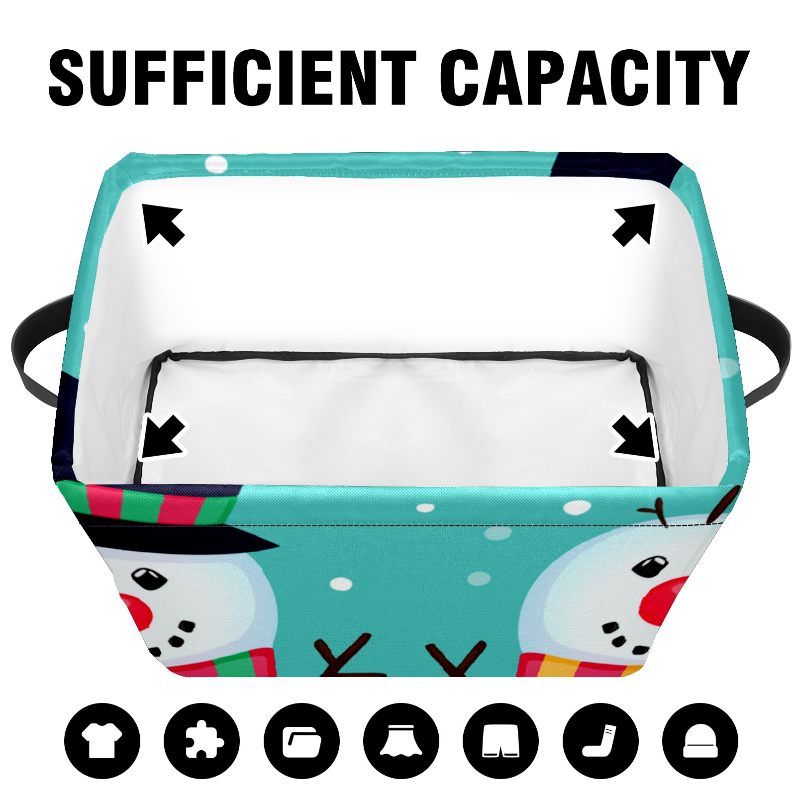 Collapsible 600D Oxford Storage Basket with Christmas Snowman Cute - Metal Frame 10"x14"x8" Reinforced Handles, Multi-Purpose Organizer
