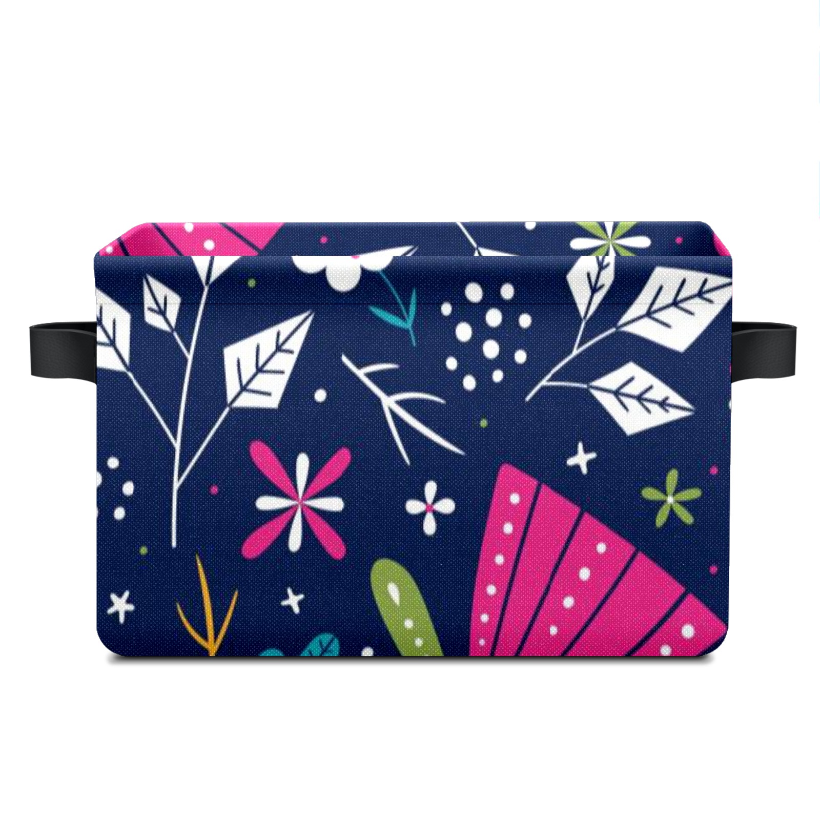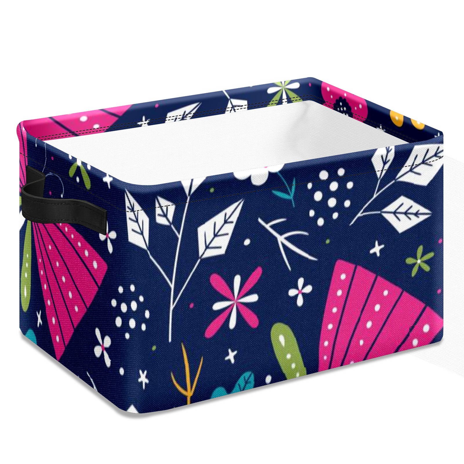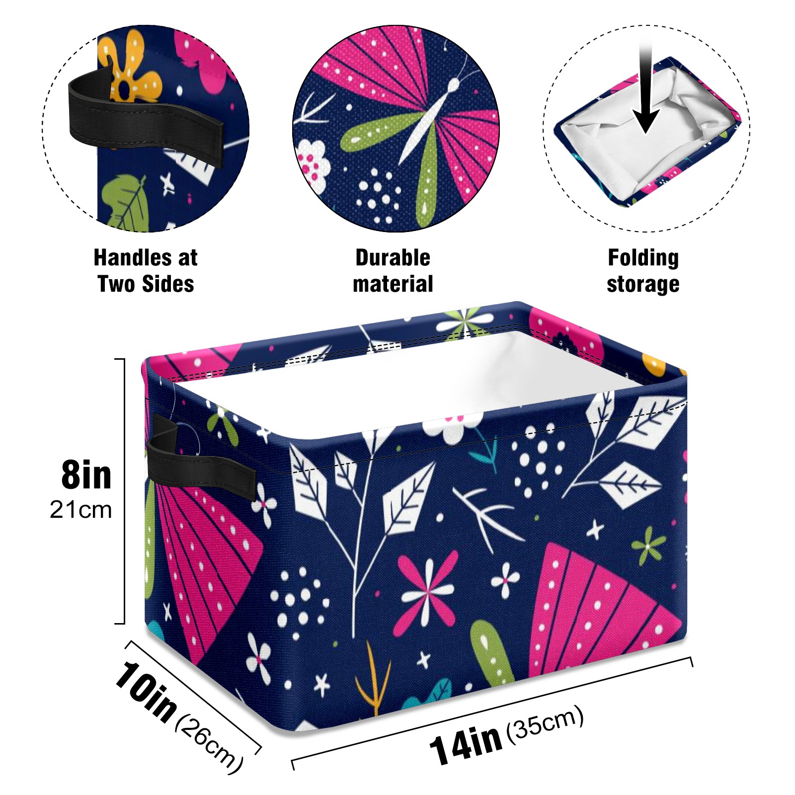 Collapsible 600D Oxford Storage Basket with Pink Butterfly Florals Pattern - Metal Frame 10"x14"x8" Reinforced Handles, Multi-Purpose Organizer